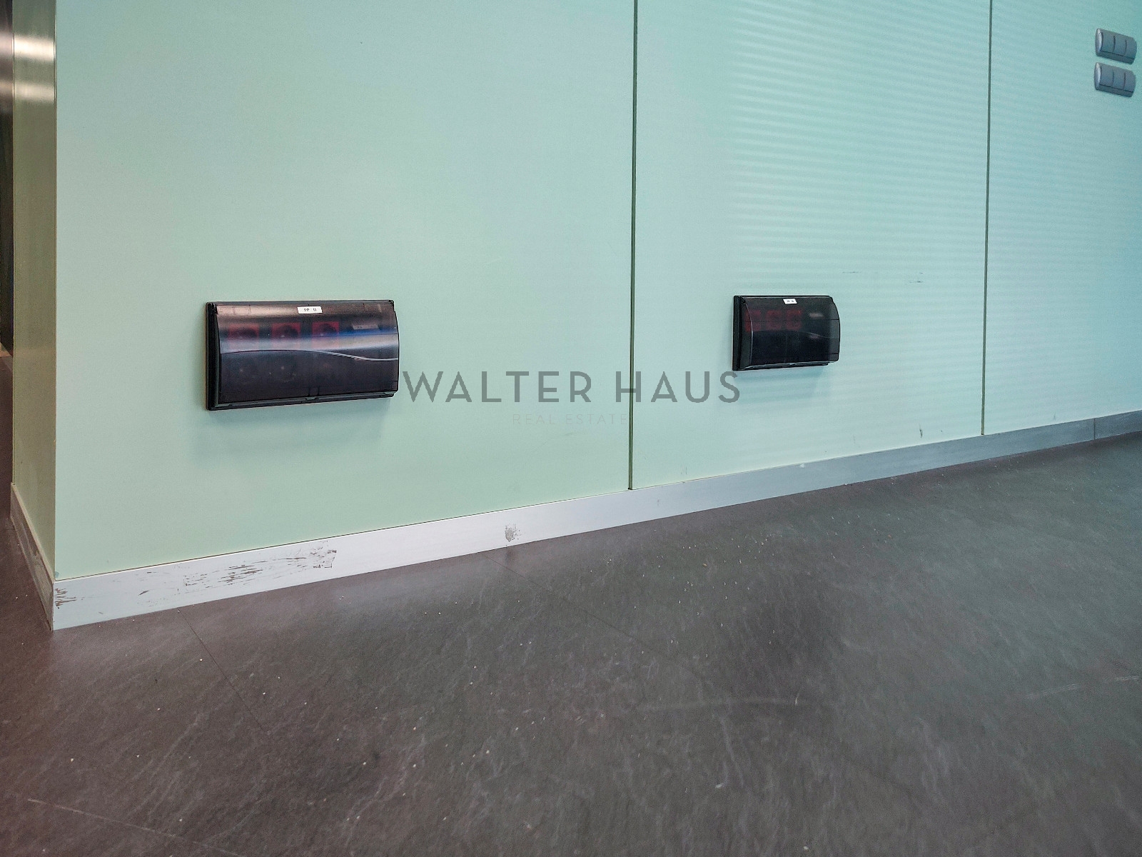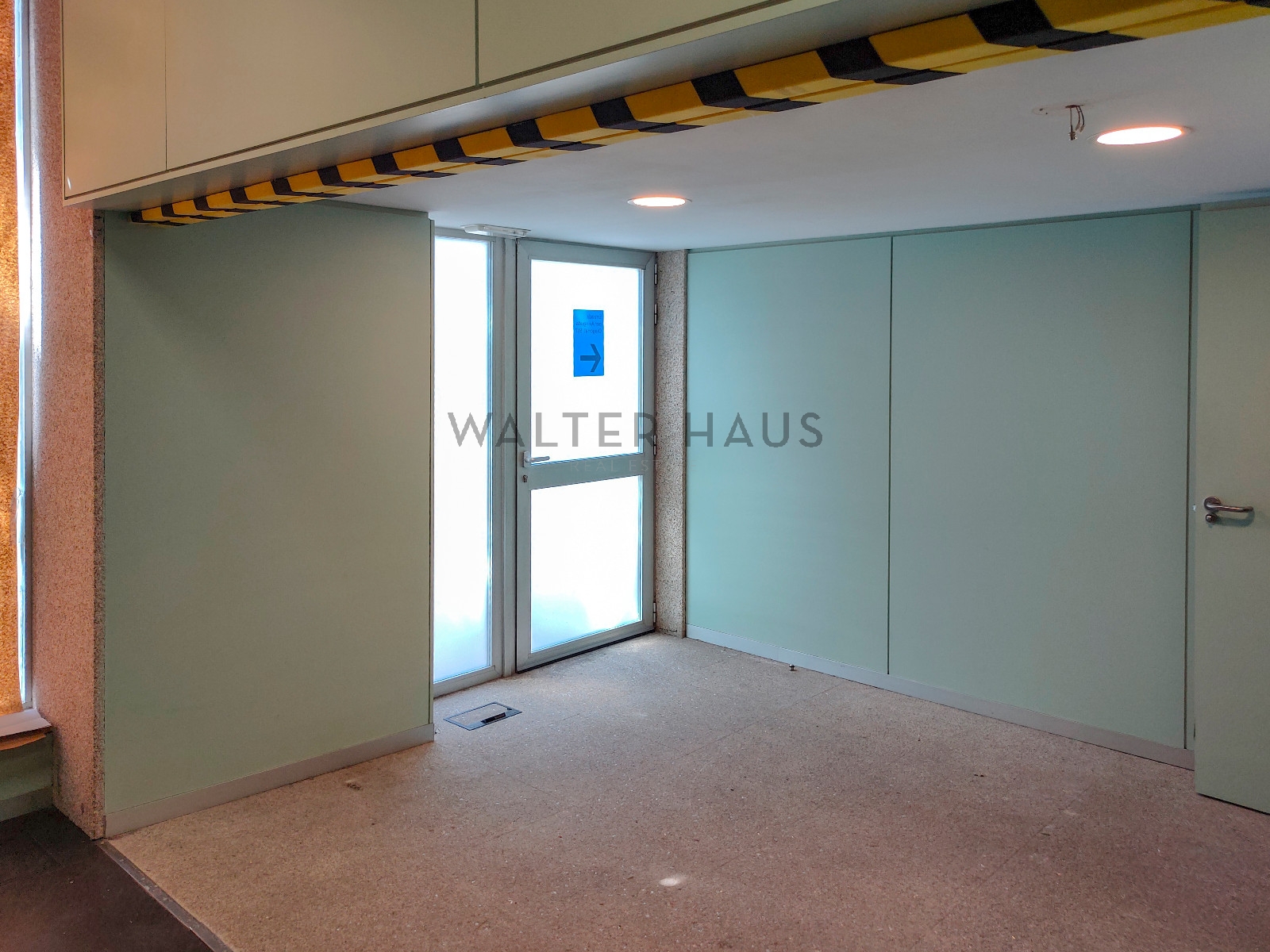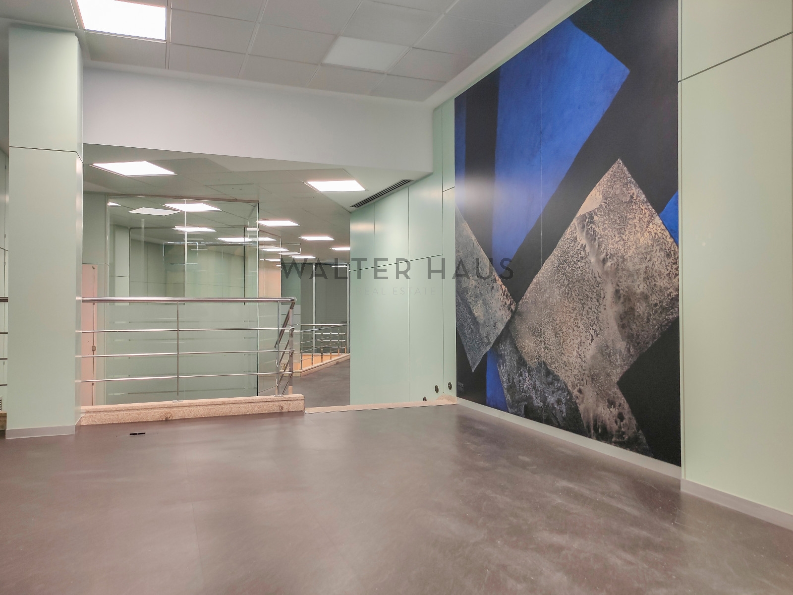 This open-plan space currently has glass enclosures.