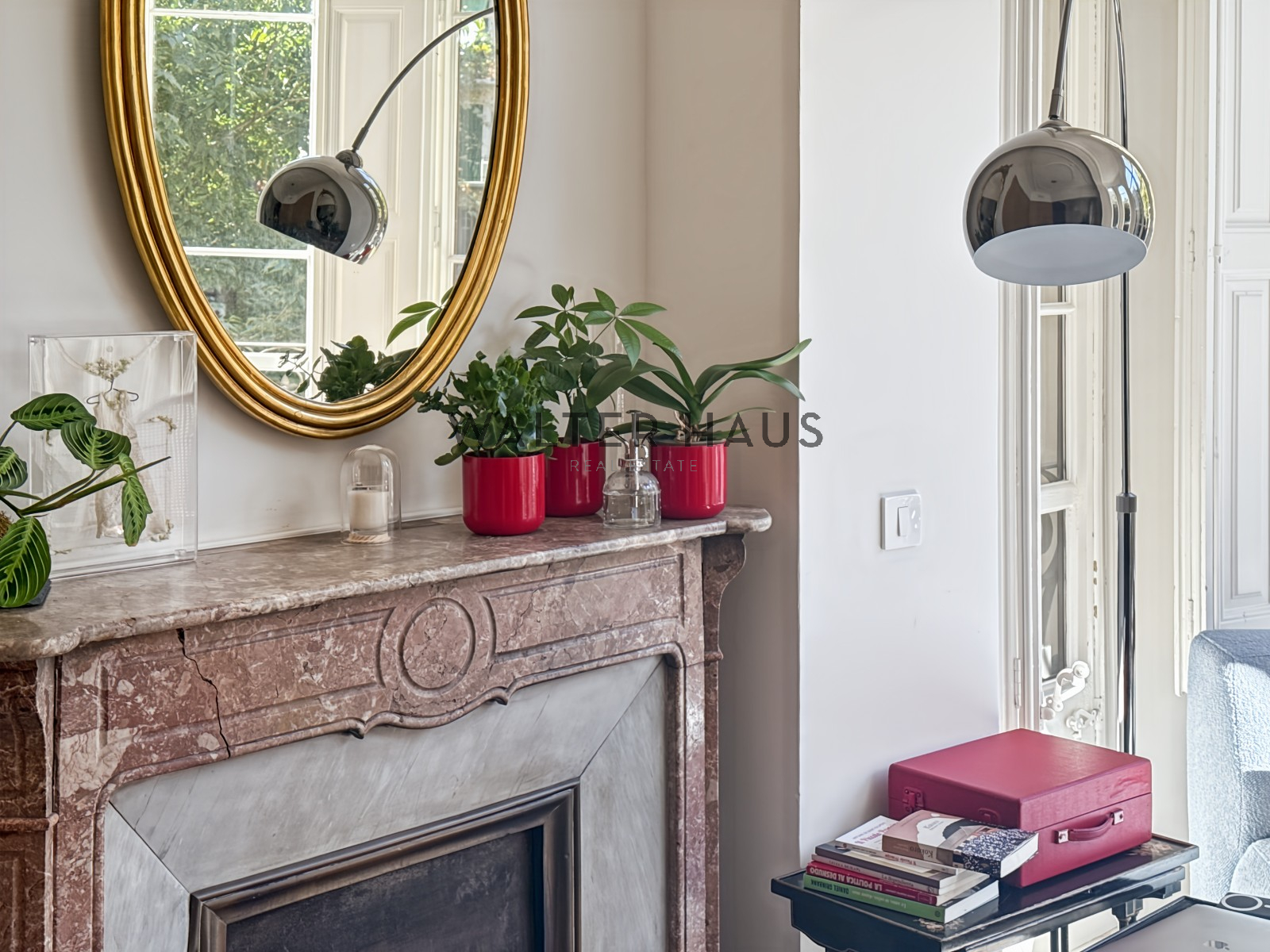 The property has two bedrooms, a multipurpose study, and two full bathrooms. The spacious open-plan living and dining room, opening onto a pleasant balcony, stands out for its high ceilings, original moldings, and hydraulic tile floors that maintain the building’s original charm. The fully renovated kitchen is equipped with high-quality materials and offers a practical and contemporary space. The master bedroom suite opens onto a charming private terrace, ideal for relaxing or enjoying al fresco gatherings.