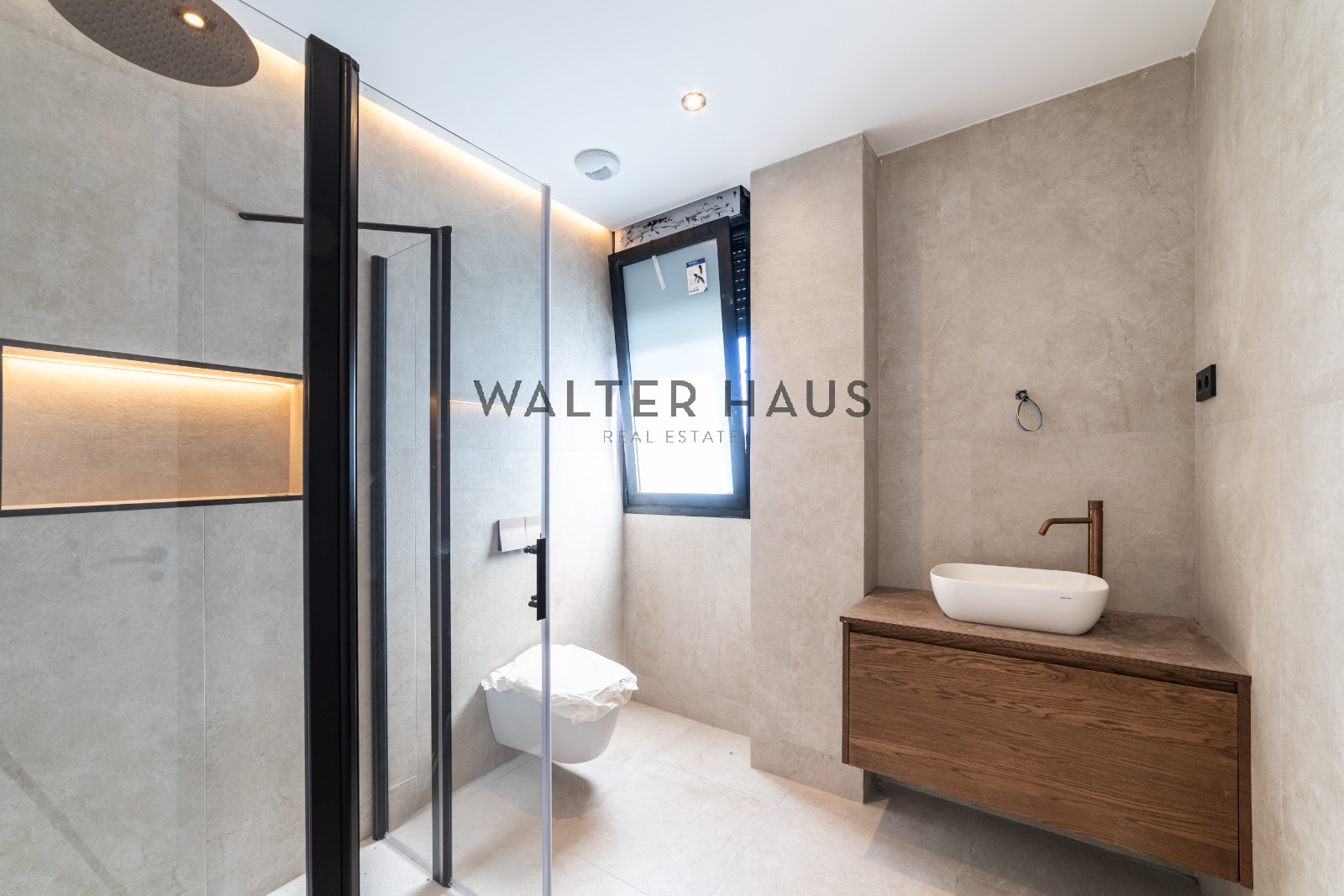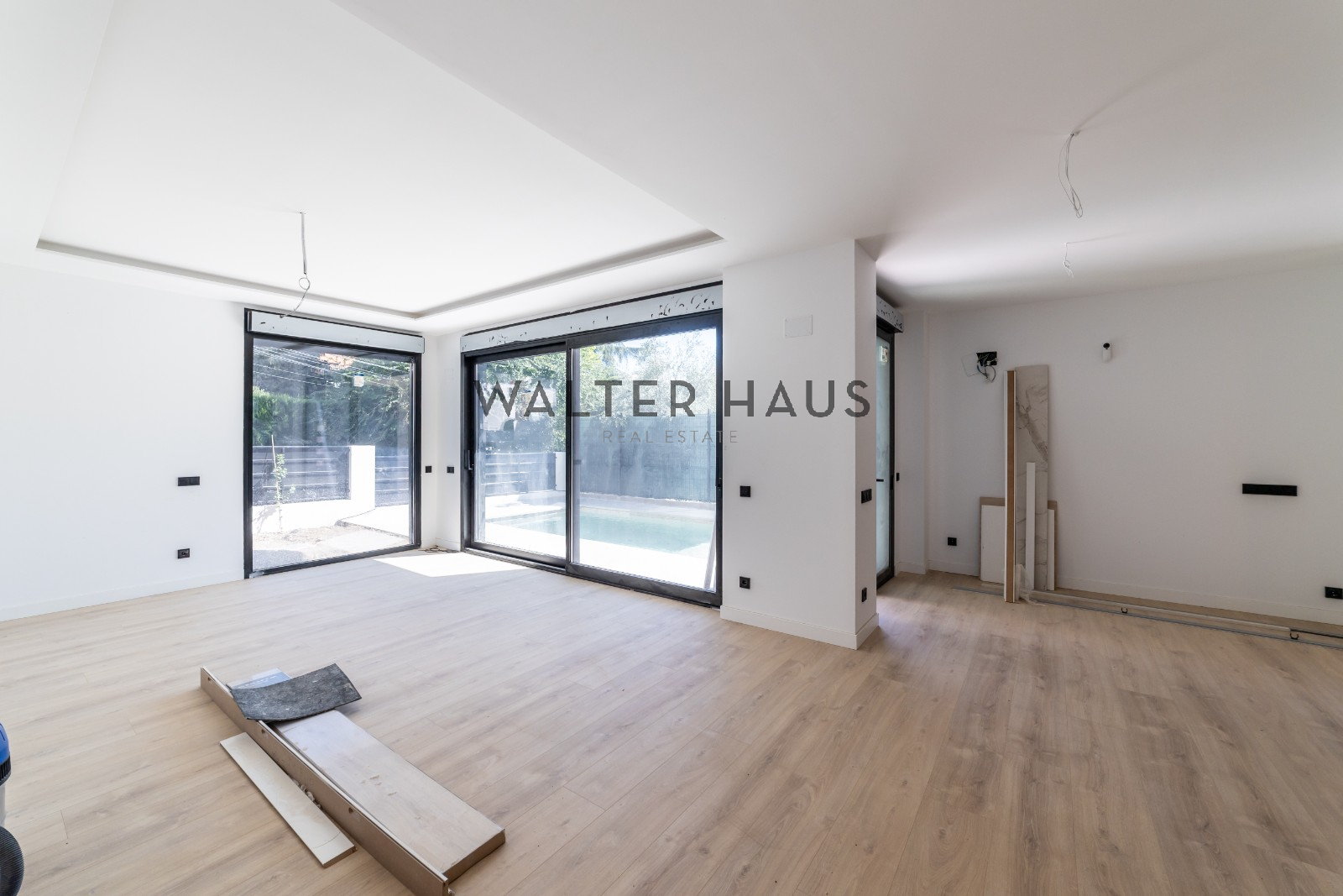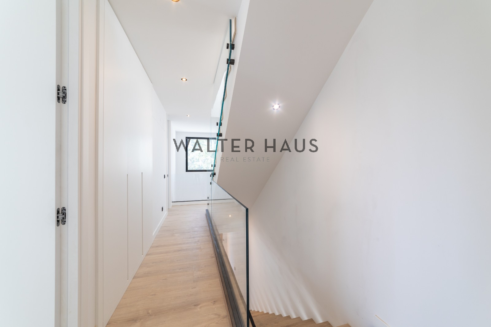 The property is spread over two floors, perfectly separating the living and sleeping areas. Upon entering, we are welcomed by a spacious and bright living-dining room, surrounded by floor-to-ceiling windows that allow light to enter throughout the day, with views of the garden and private pool. This first floor also features a guest toilet. The separate kitchen/diner is fully equipped with BOSCH appliances, designed to offer maximum performance and a modern design, ideal for those who enjoy fine dining. The sleeping area features three double bedrooms en suite with private bathrooms. All rooms are spacious and bright. The interior layout has been designed to maximize natural light and provide comfortable flow between rooms. The finishes are of high quality, lending warmth and modernity to the entire home.