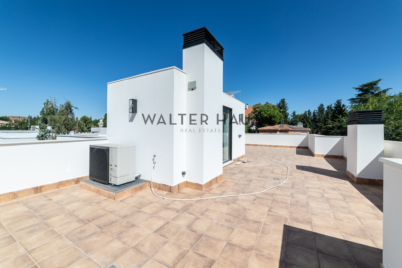 This exclusive new-build villa with 356 m² of built area—400 m² including the walkable roof—stands out for its functional design and spaciousness. Located in one of Madrid’s most desirable areas, this home stands out for its quiet residential setting, ideal for those seeking a private setting just minutes from the city.