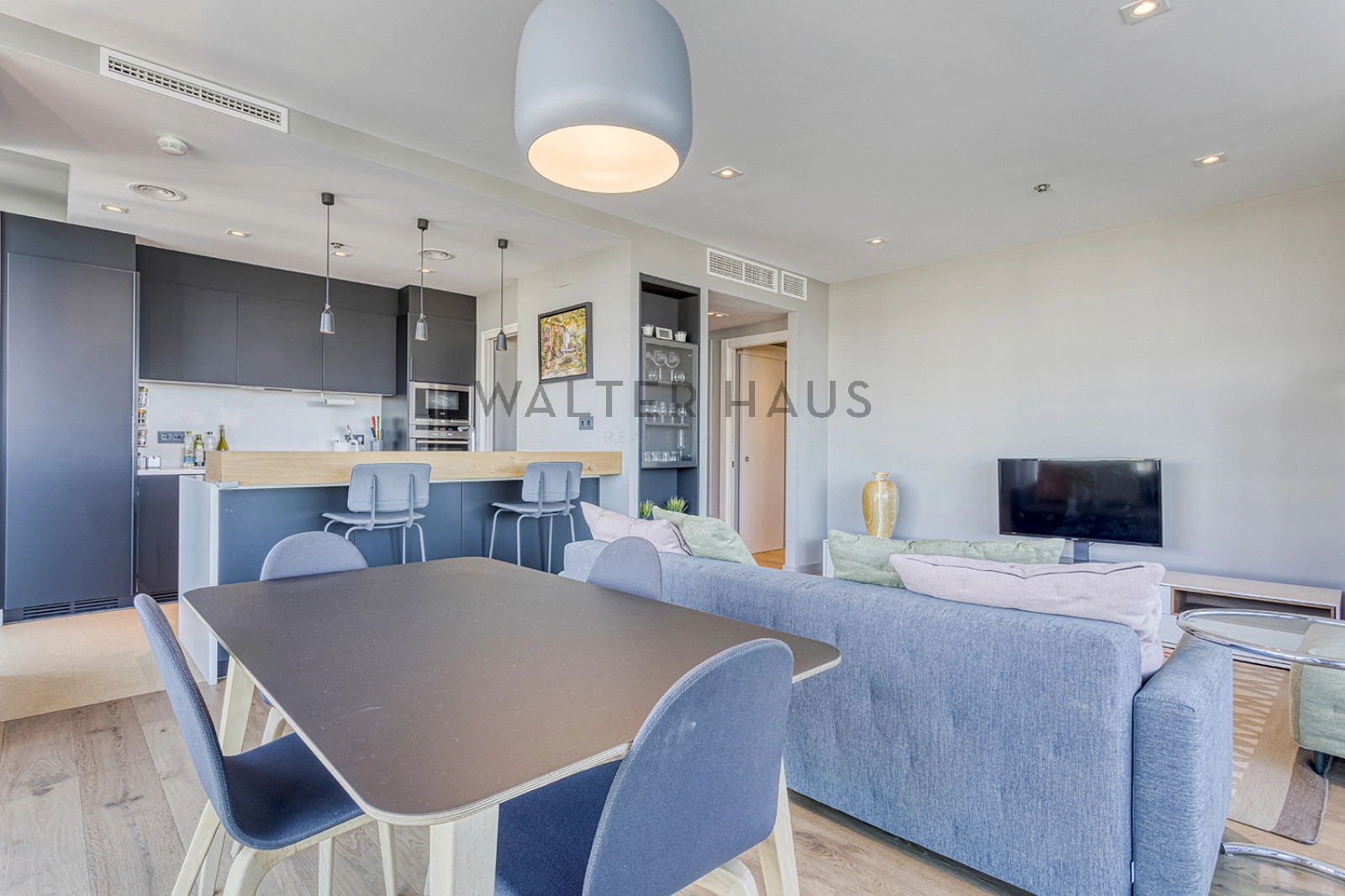 Exclusive 143 m² apartment with an ideal combination of spaciousness, comfort, and unparalleled views of the sea and the city of Barcelona. Its layout has been designed to maximize natural light and the connection with the outdoors, thanks to its large 32 m² wraparound terrace facing southwest.