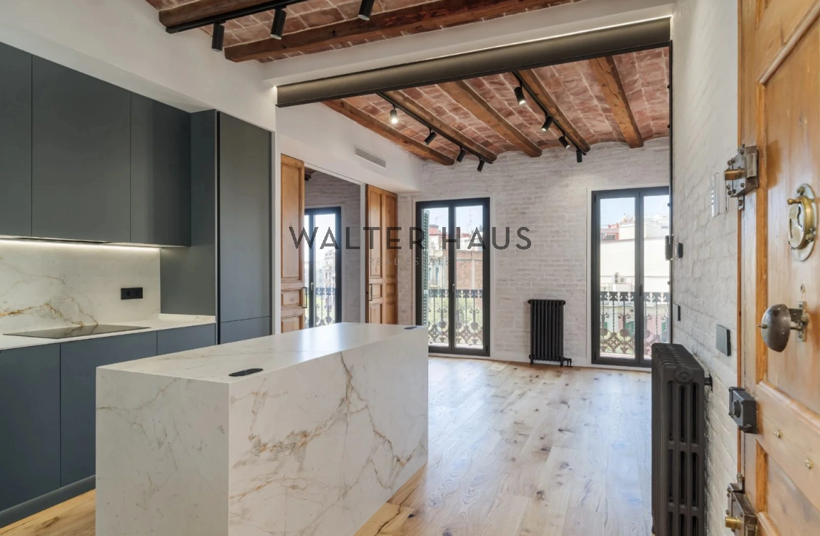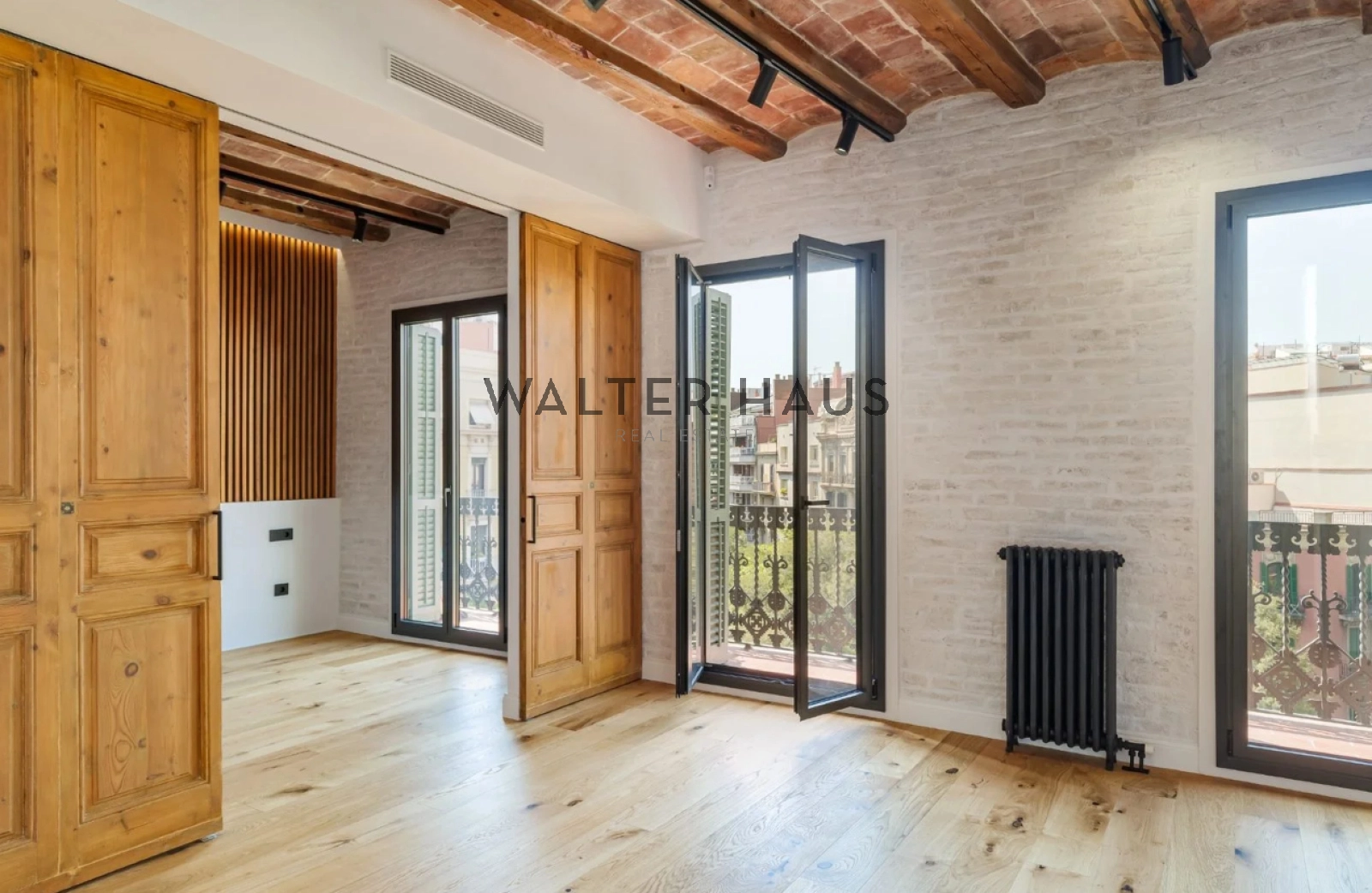 The home retains original features such as Catalan vaulted ceilings, moldings, and natural wood floors, which lend authenticity and character. As an added bonus, the main living area offers views of the Sagrada Familia, a detail that further enhances the appeal of this home.