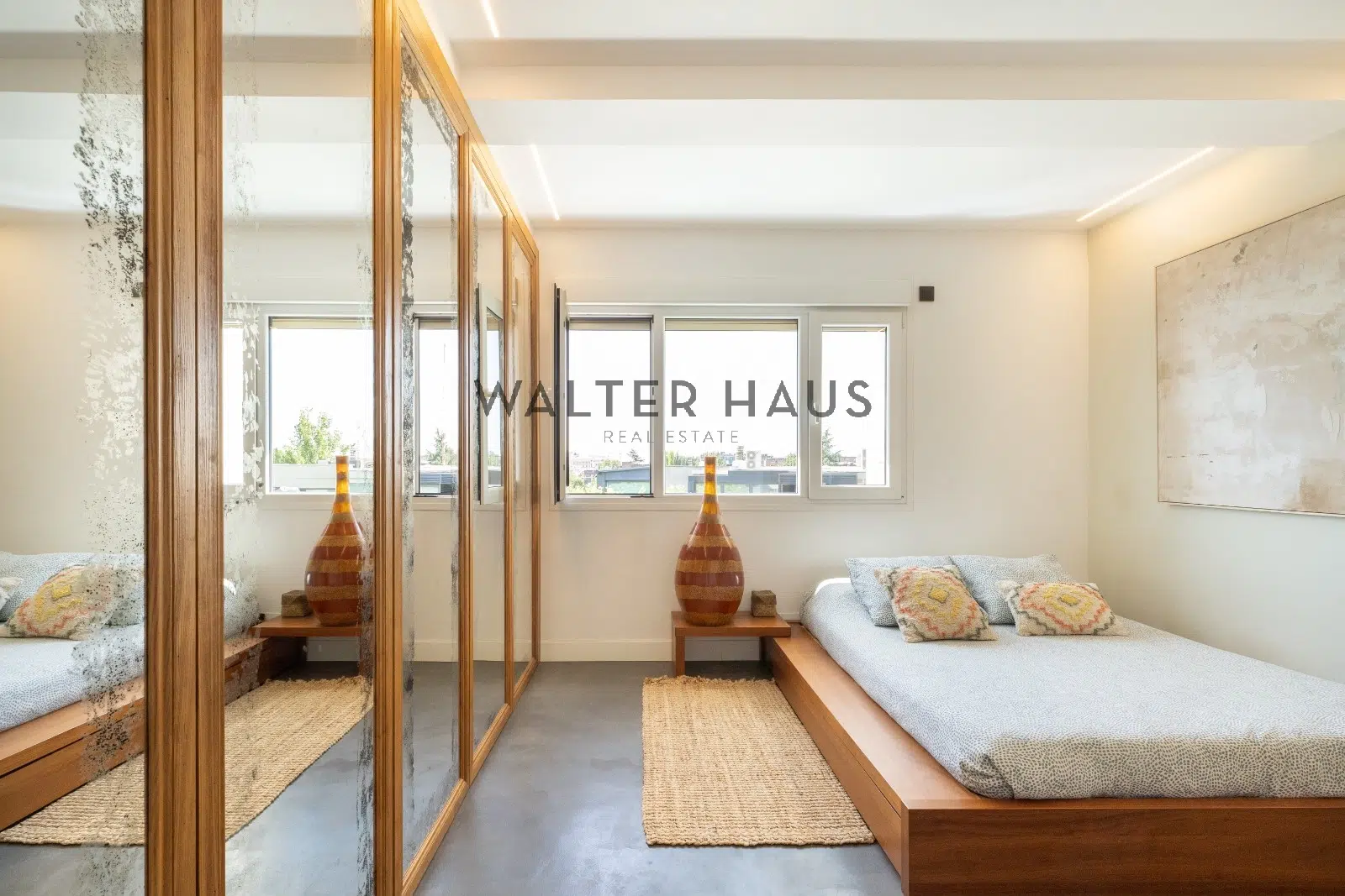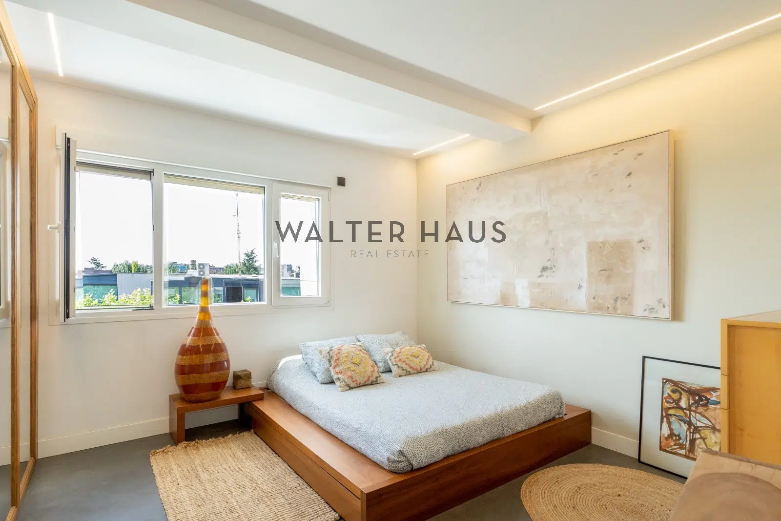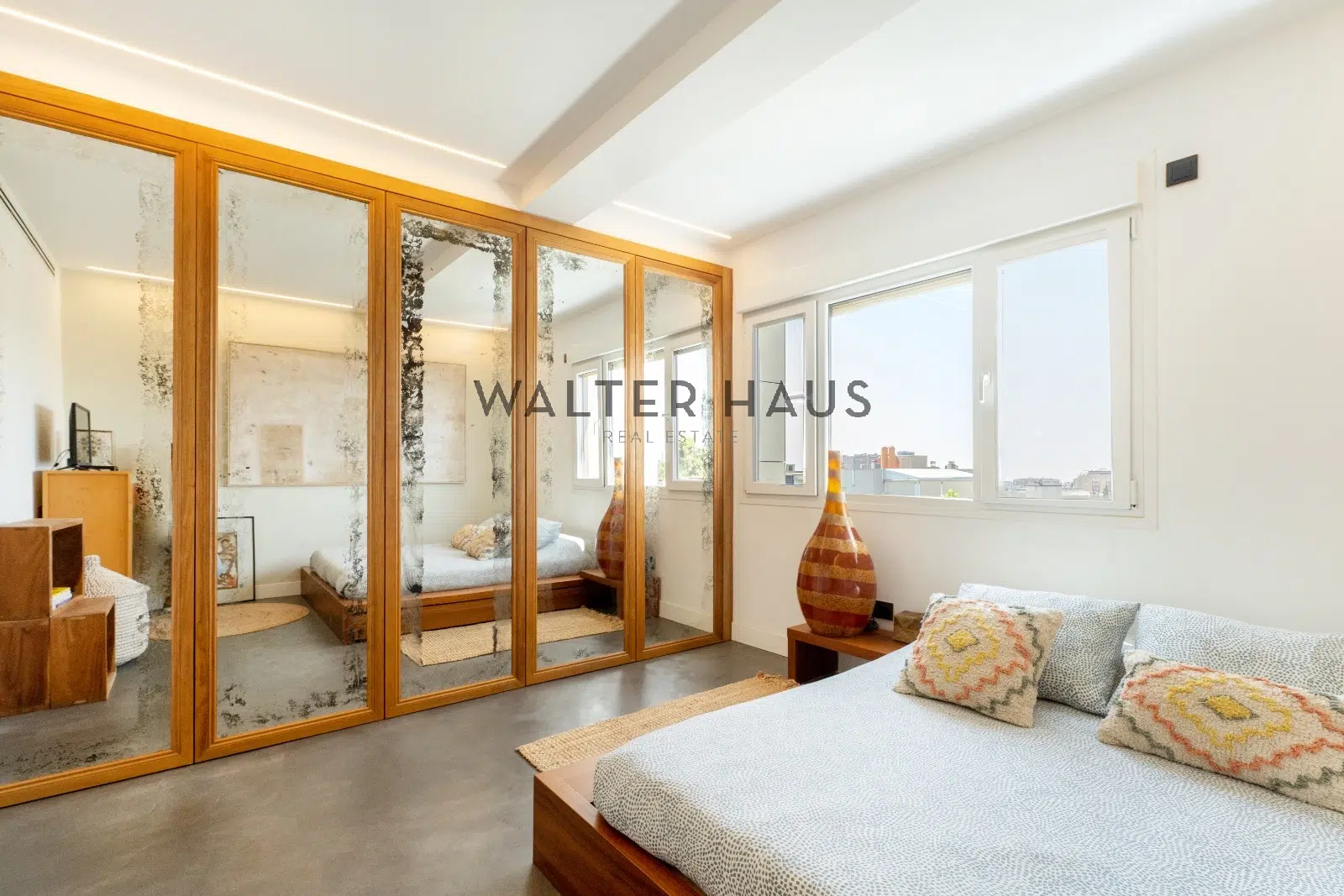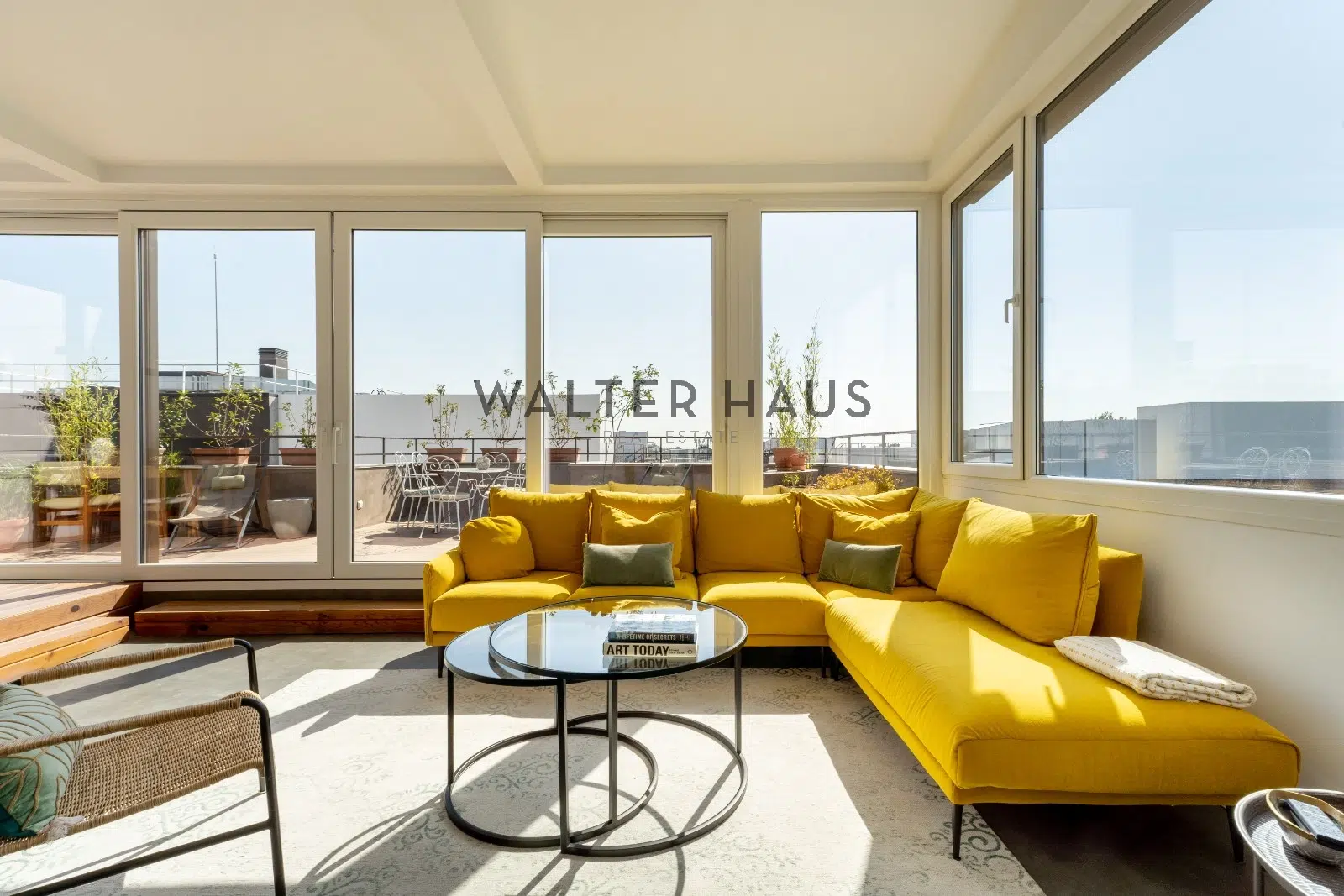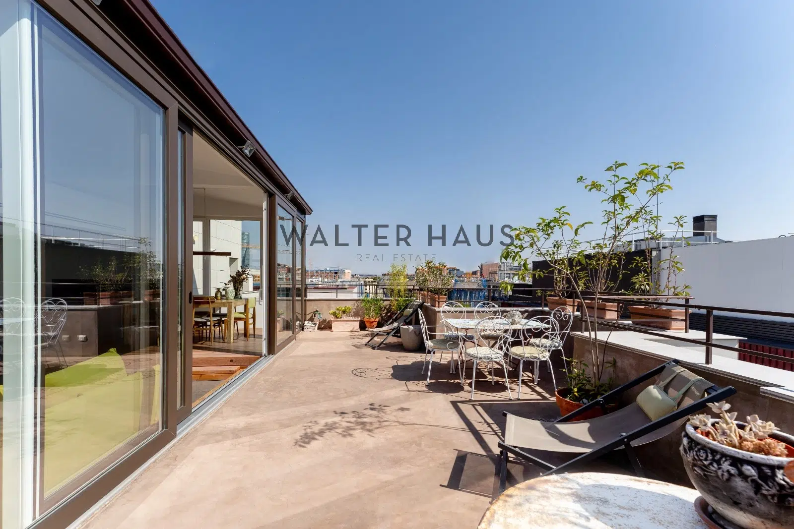 We present this exclusive, fully renovated penthouse, located in one of the city’s most sought-after areas. With 118 square meters of living space, the apartment boasts a modern and functional design, featuring an entrance hall that leads to a spacious living room with an open-plan kitchen. The jewel of the property is its magnificent terrace, offering unparalleled panoramic views.