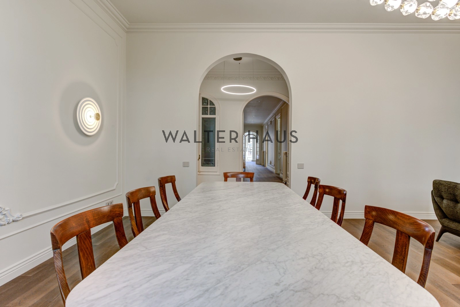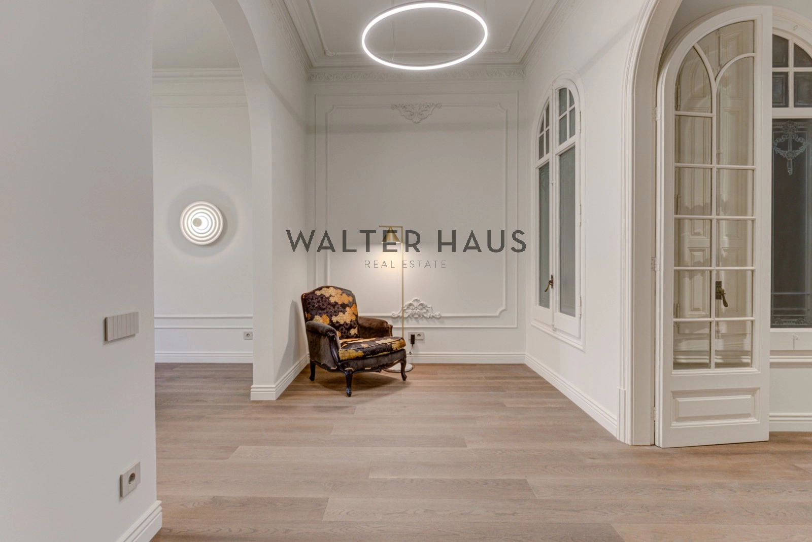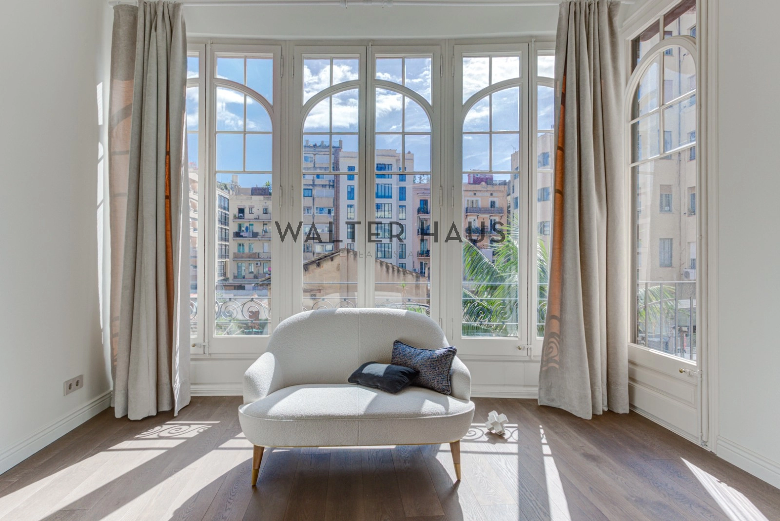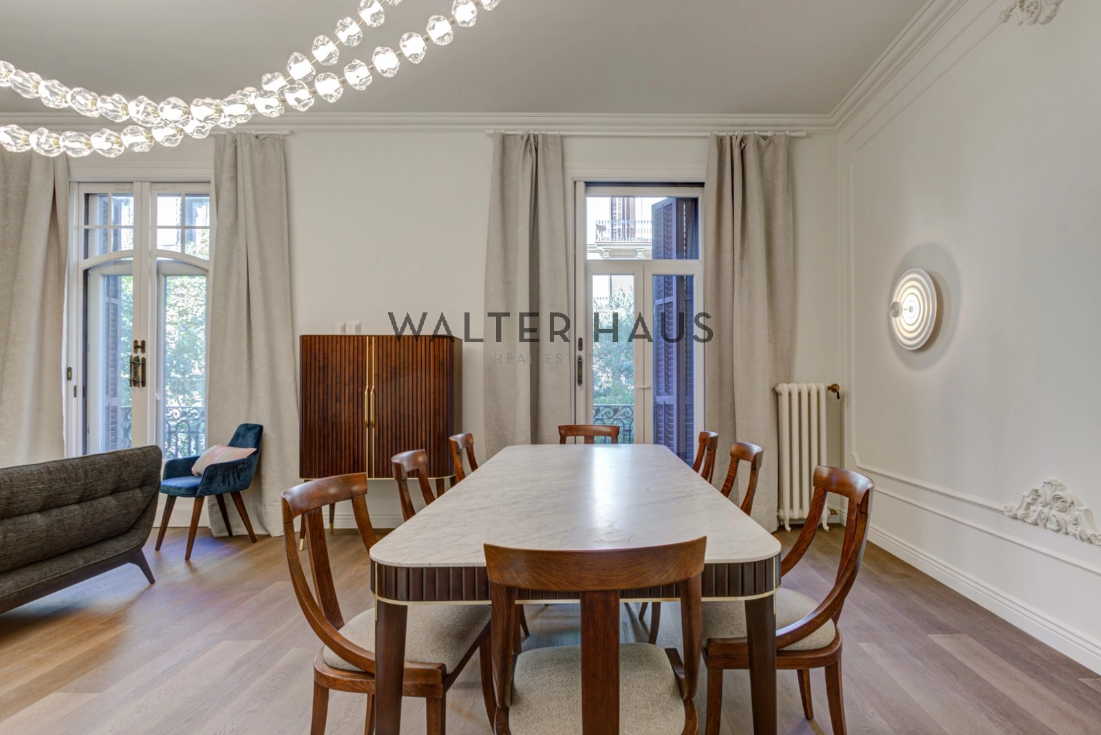Located in a stately 1910 building, this renovated 212 m² apartment is on the second floor (third floor in US/UK terms), near the prestigious Passeig de Sant Joan. The apartment stands out for its spacious layout and optimal distribution, which promotes cross-ventilation and abundant natural light, making every room bright and welcoming.