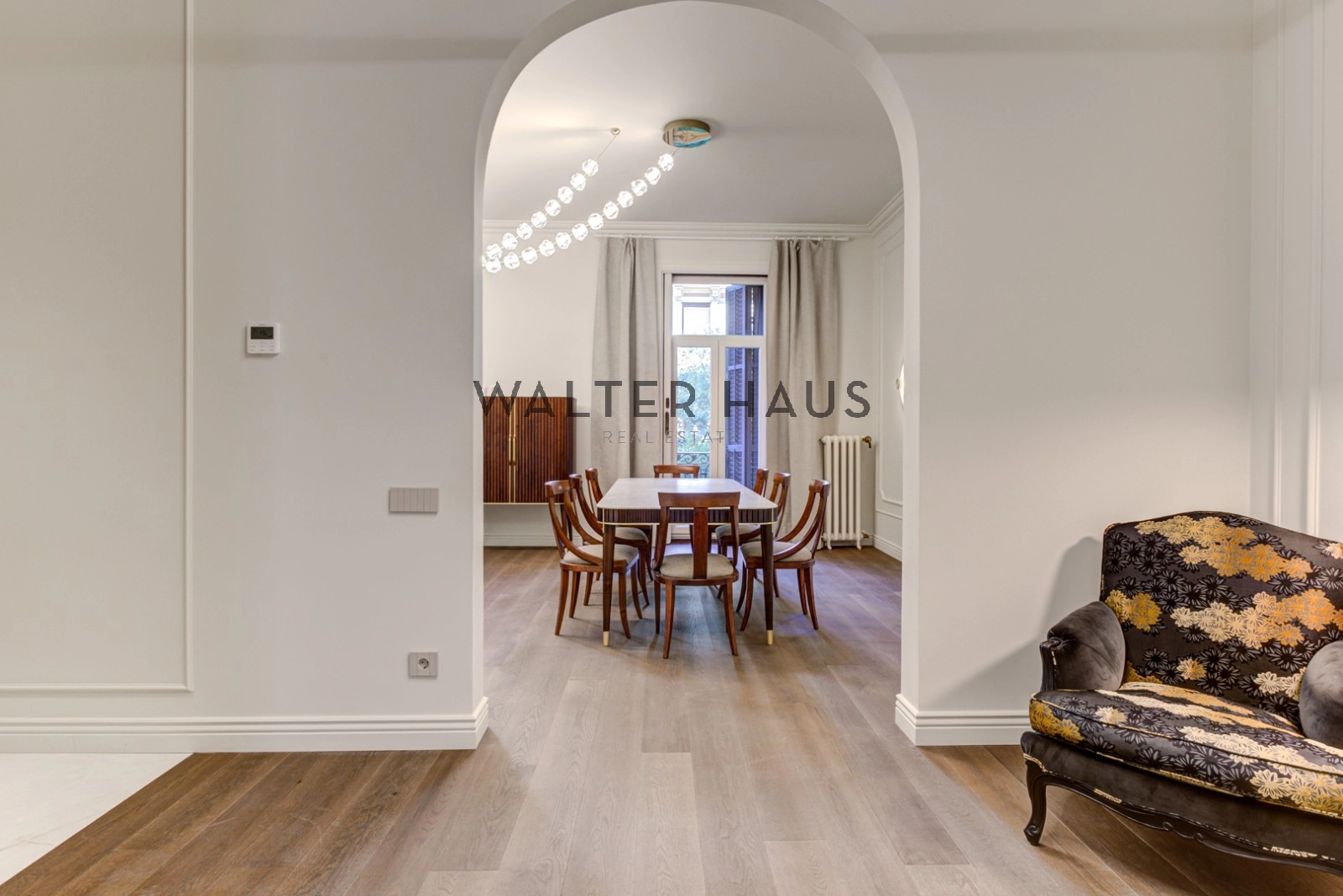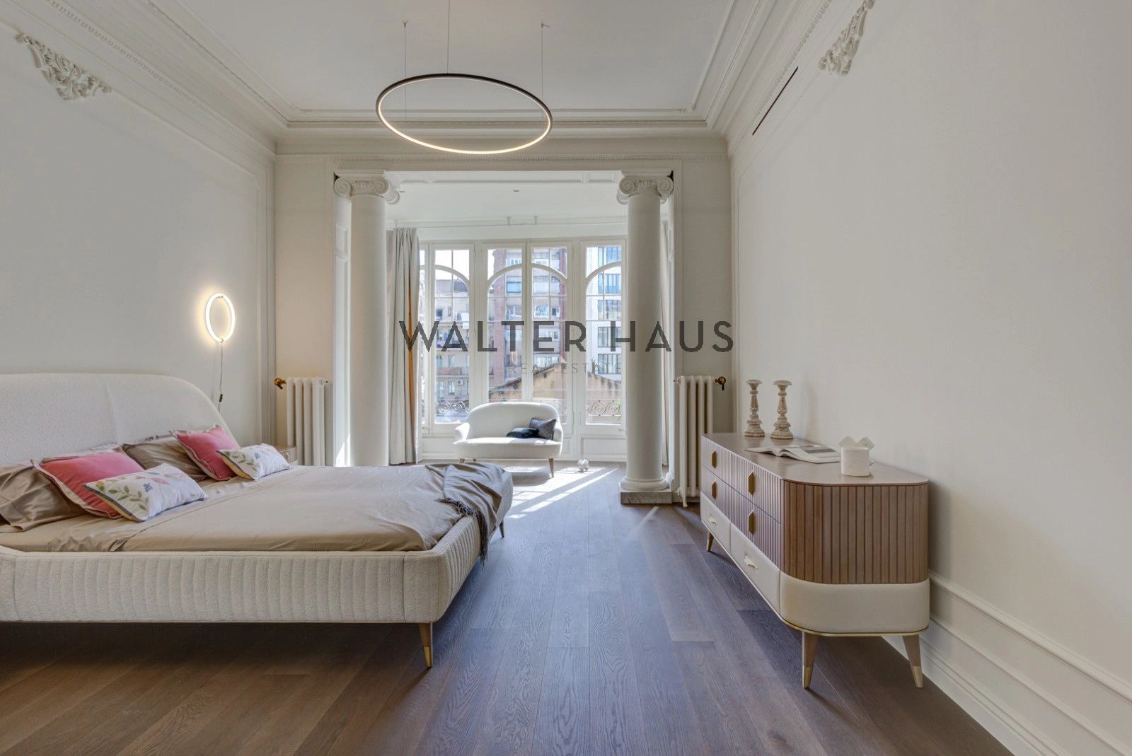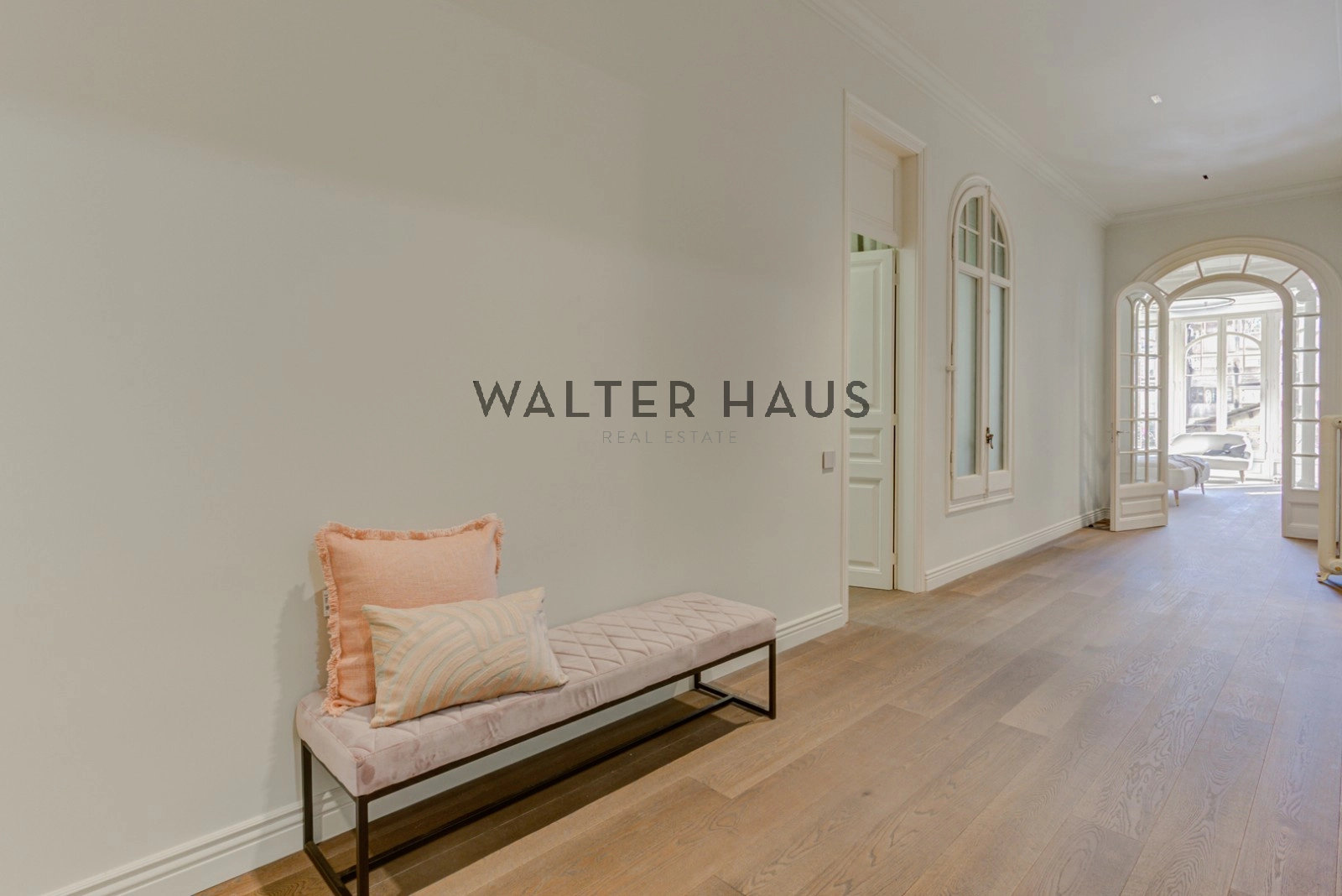 Located in a stately 1910 building, this renovated 212 m² apartment is on the second floor (third floor in US/UK terms), near the prestigious Passeig de Sant Joan. The apartment stands out for its spacious layout and optimal distribution, which promotes cross-ventilation and abundant natural light, making every room bright and welcoming.