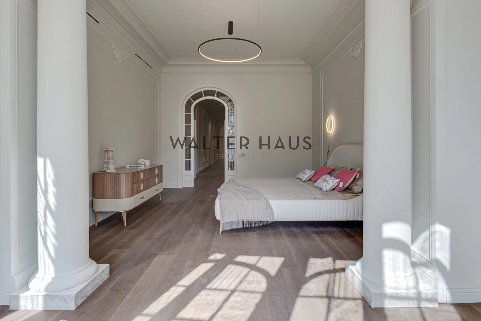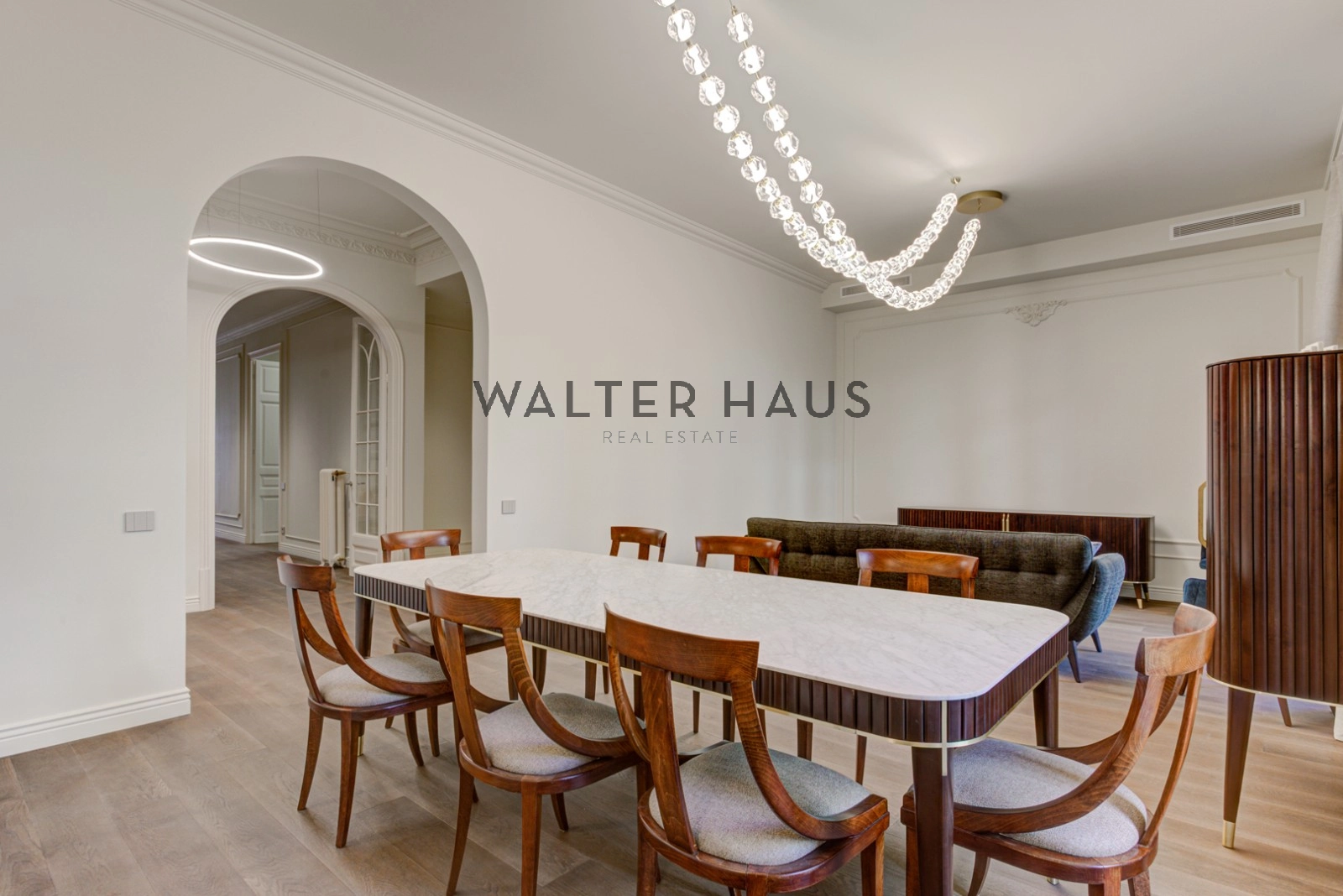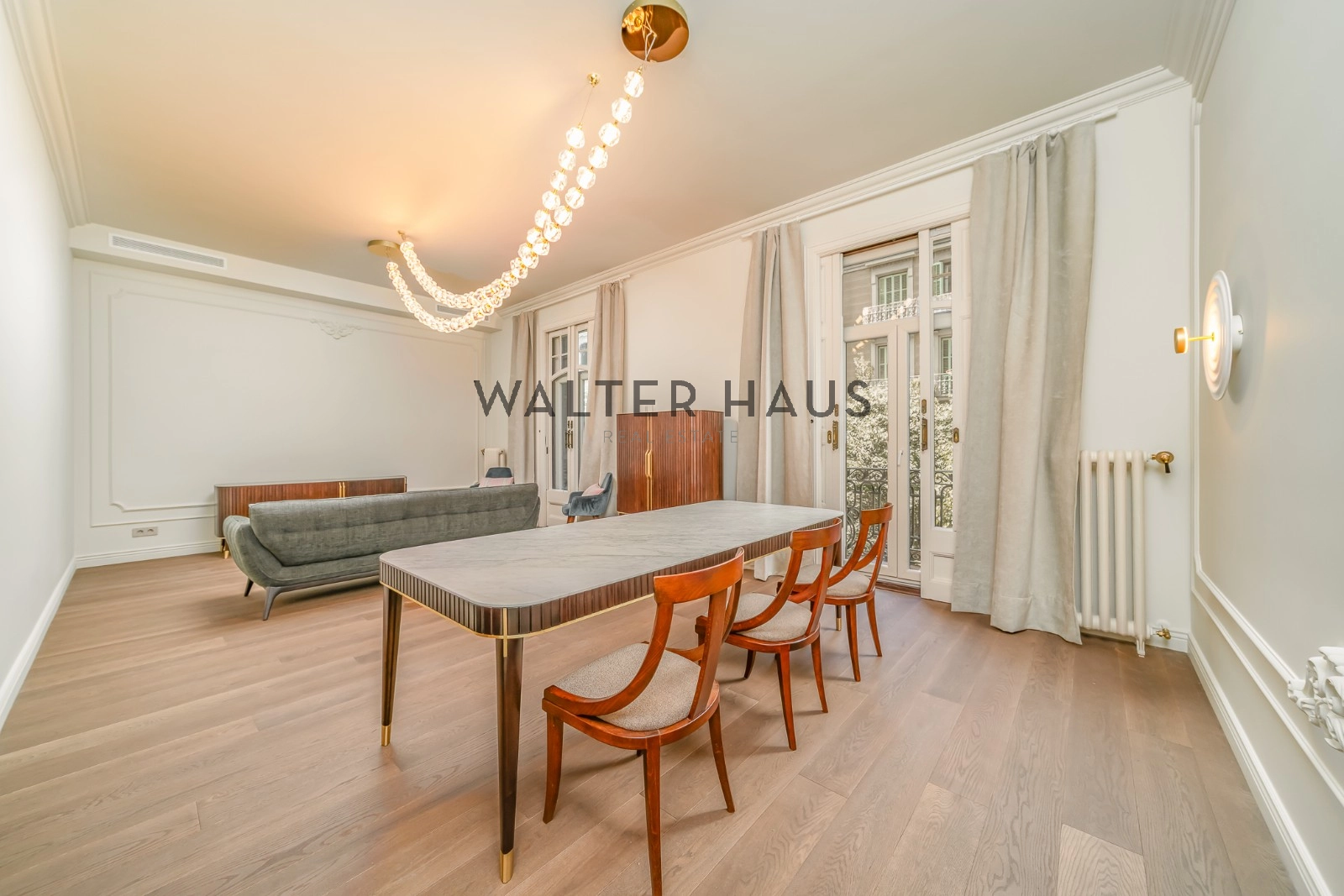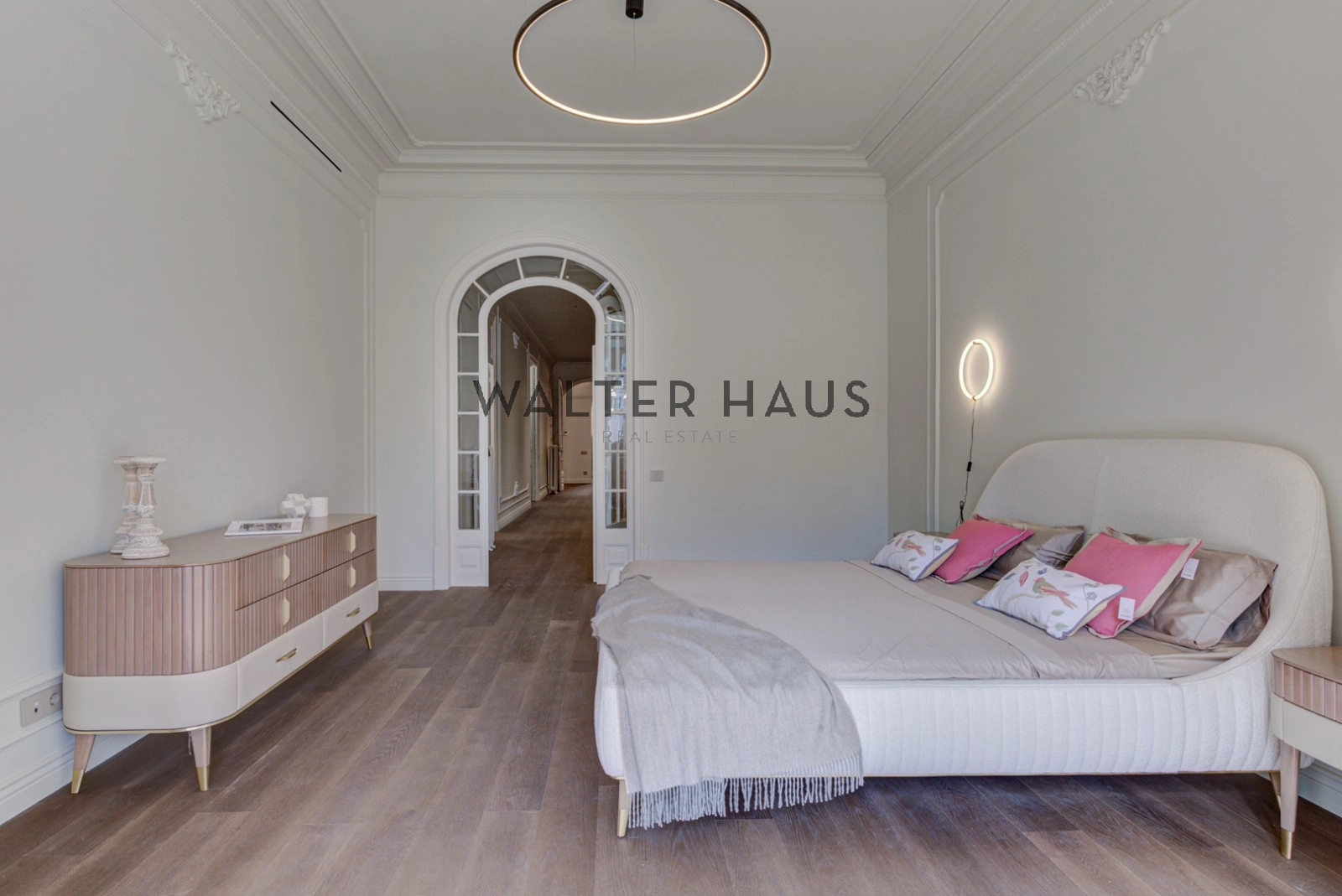 Located in a stately 1910 building, this renovated 212 m² apartment is on the second floor (third floor in US/UK terms), near the prestigious Passeig de Sant Joan. The apartment stands out for its spacious layout and optimal distribution, which promotes cross-ventilation and abundant natural light, making every room bright and welcoming.