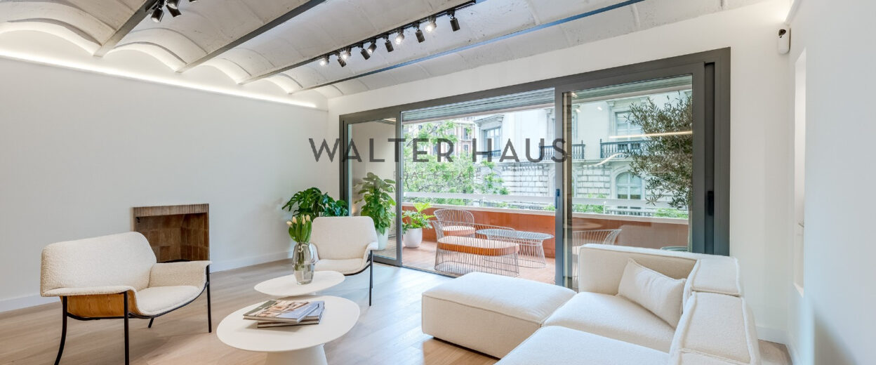 Exclusive renovated, equipped, and furnished apartment with 188 m² of built area, of which 16 m² corresponds to a terrace off the living room. Located on the third floor of a corner building. The renovated design combines spaciousness, functionality, and contemporary style. The home boasts an excellent layout and offers a parking space on the same building, included in the price.