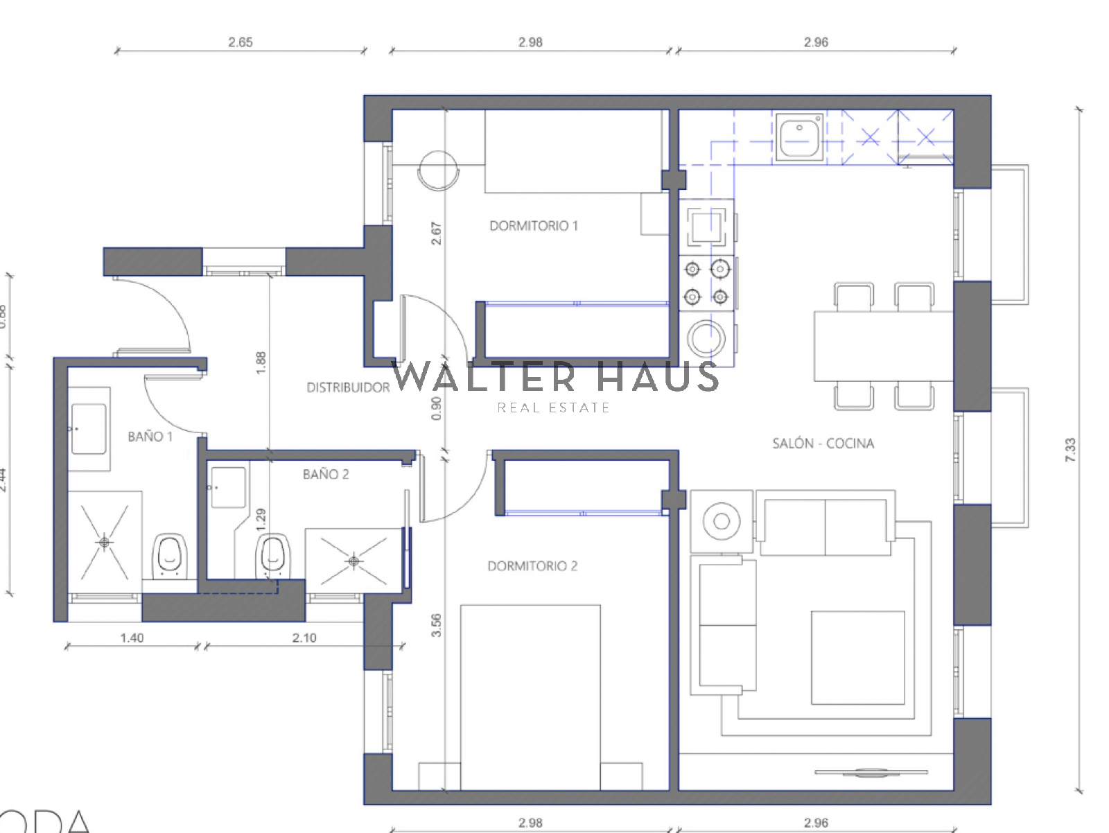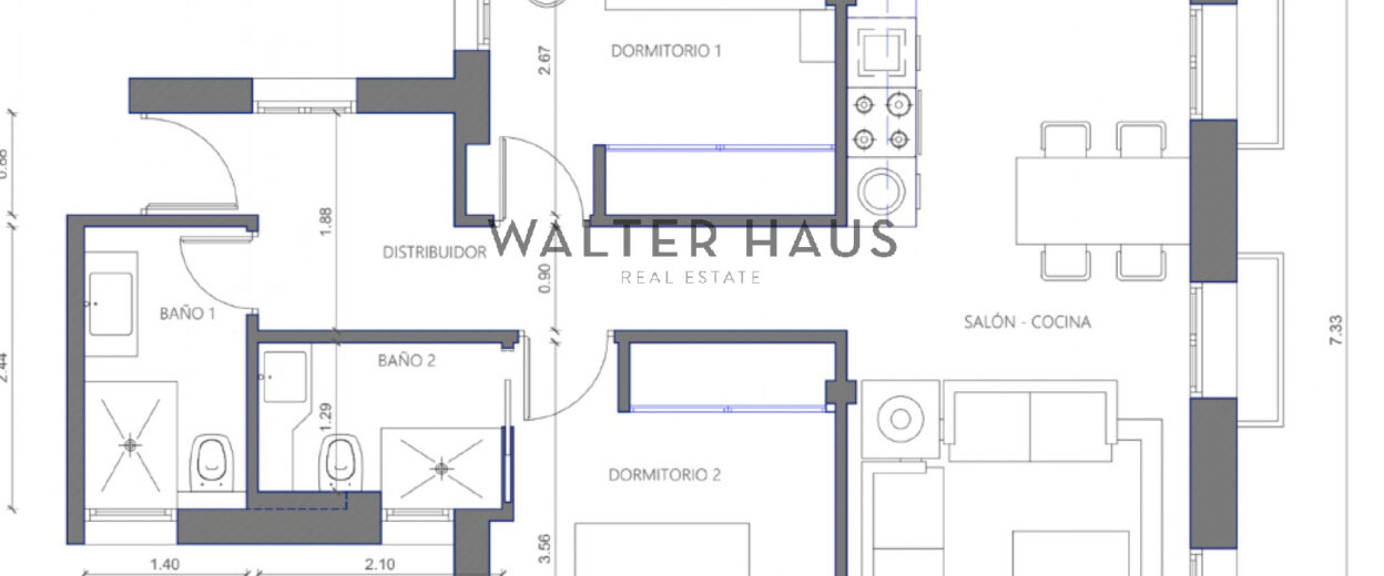 The layout of this property stands out for its functionality and intelligent use of space. It has two bedrooms, one double with a balcony overlooking the street and the other single, both with built-in wardrobes. It is perfect as a permanent residence for those seeking a comfortable and central lifestyle, or as a pied-à-terre to enjoy the city on short breaks. The full bathroom features a modern and minimalist design, with high-quality materials. The kitchen, fully equipped with state-of-the-art appliances, blends seamlessly with a spacious living-dining room that opens onto a balcony, offering an ideal space for leisure and relaxation. The brand-new comprehensive renovation ensures that every detail is designed for maximum comfort and well-being.