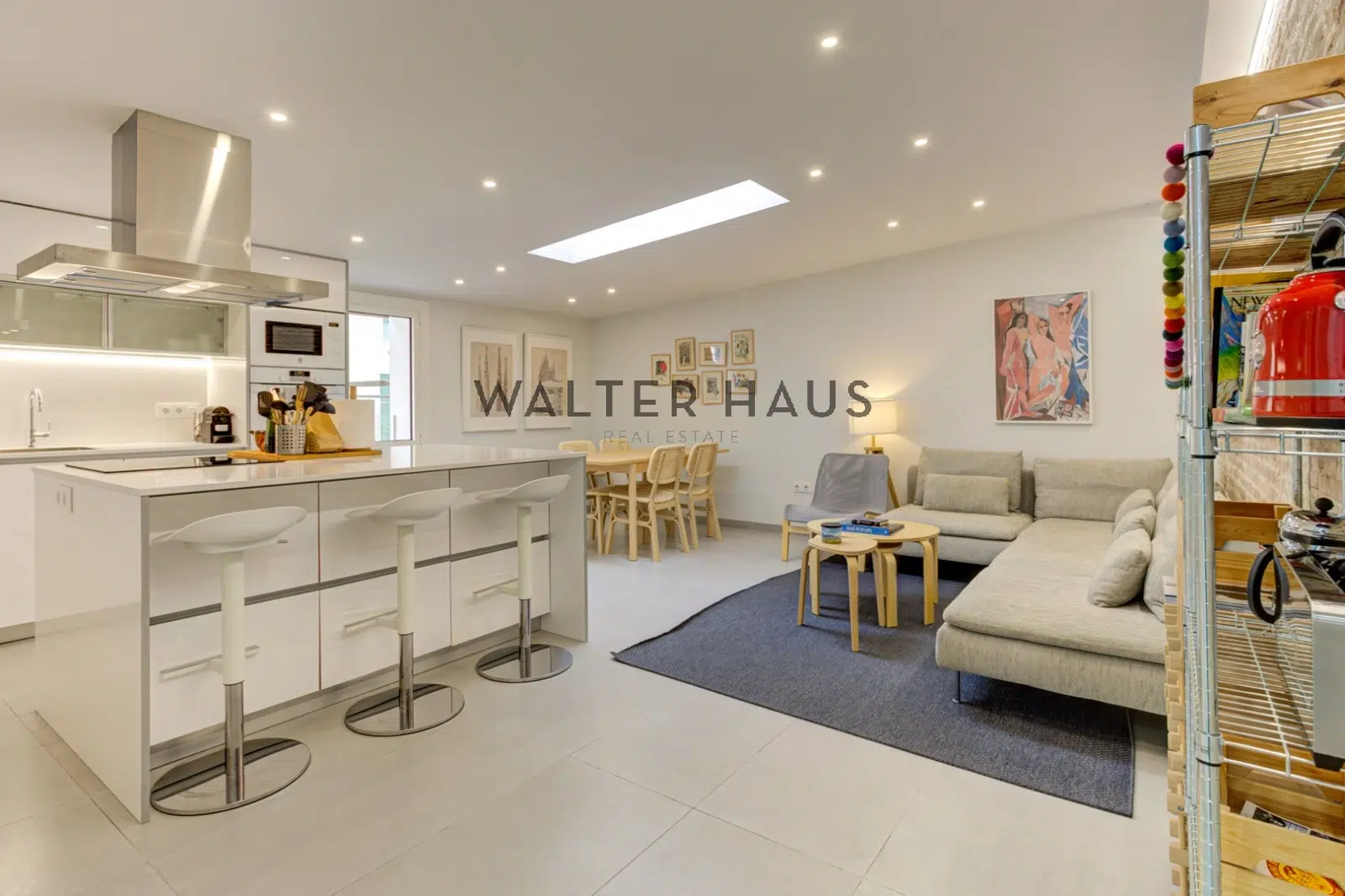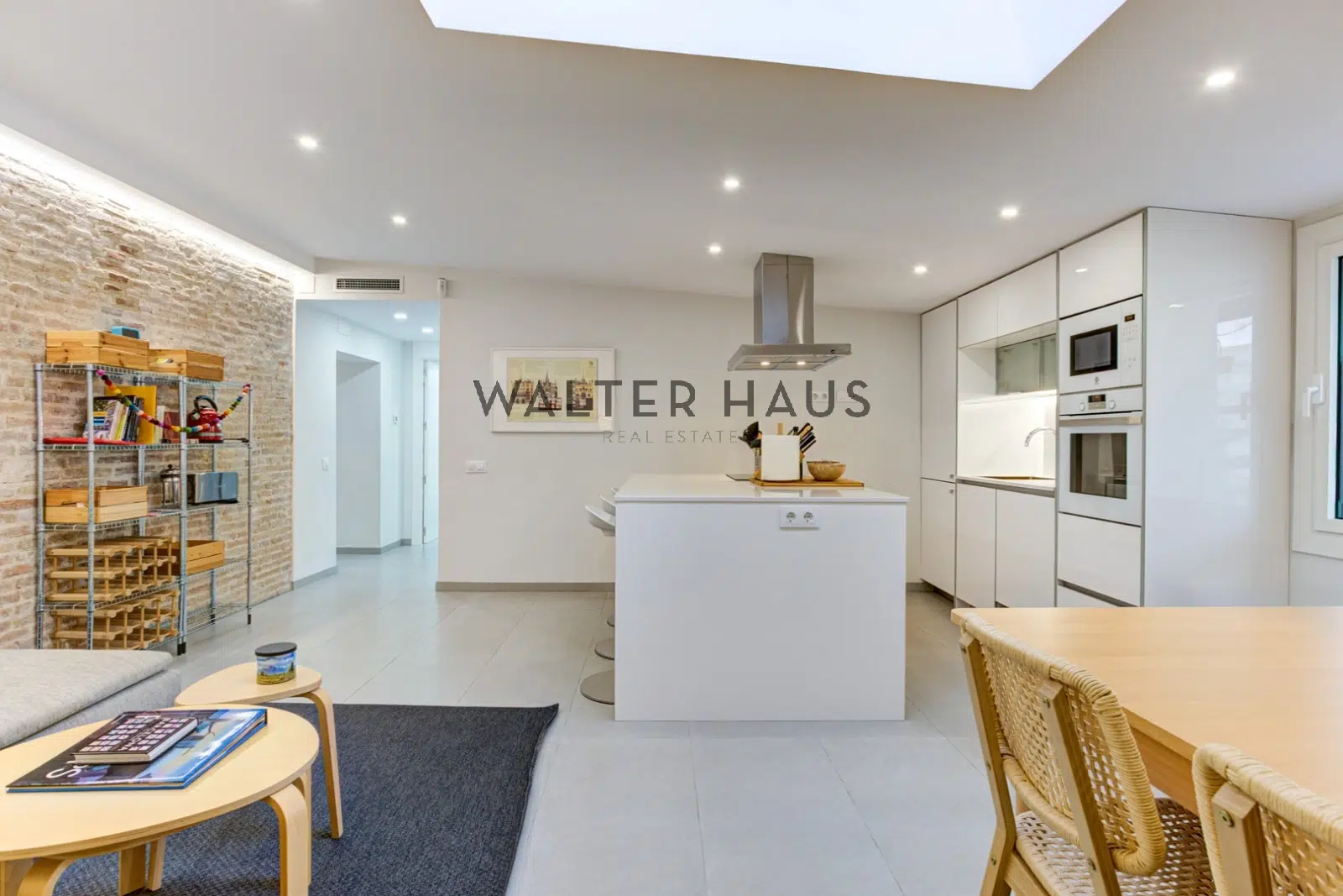 In the heart of Barcelona, this 80 m² penthouse perfectly blends history and modernity. Located on the top floor of an elegant period building, it offers an atmosphere brimming with character and style. Its recent comprehensive renovation has transformed the apartment into a contemporary space that maintains the original architectural essence, using high-quality materials and meticulous attention to detail.
