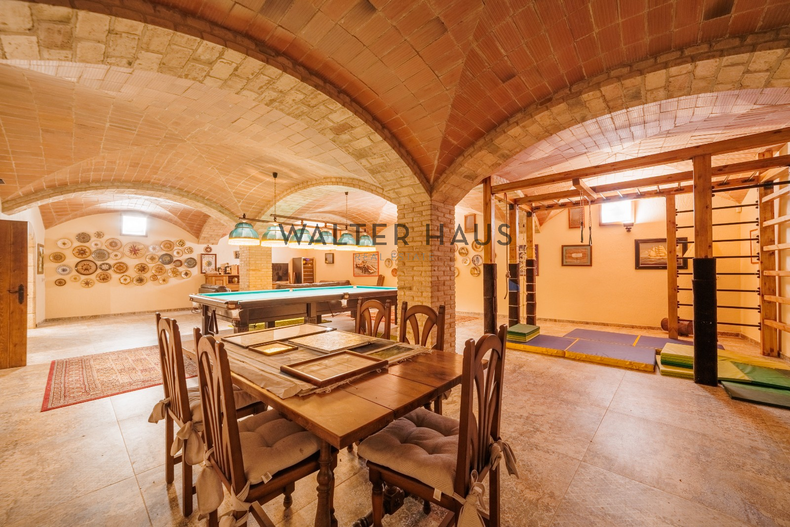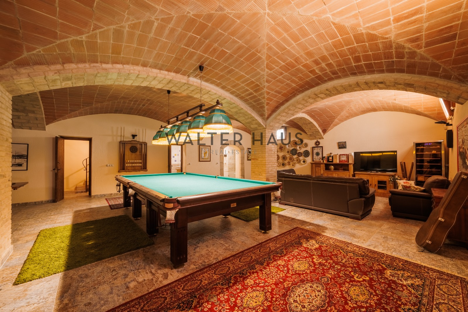 On the lower floor, there is a recreation room with a billiards table, a gym, a home theater area, and a hammam, which add value to the comfort and relaxation offered by the home.