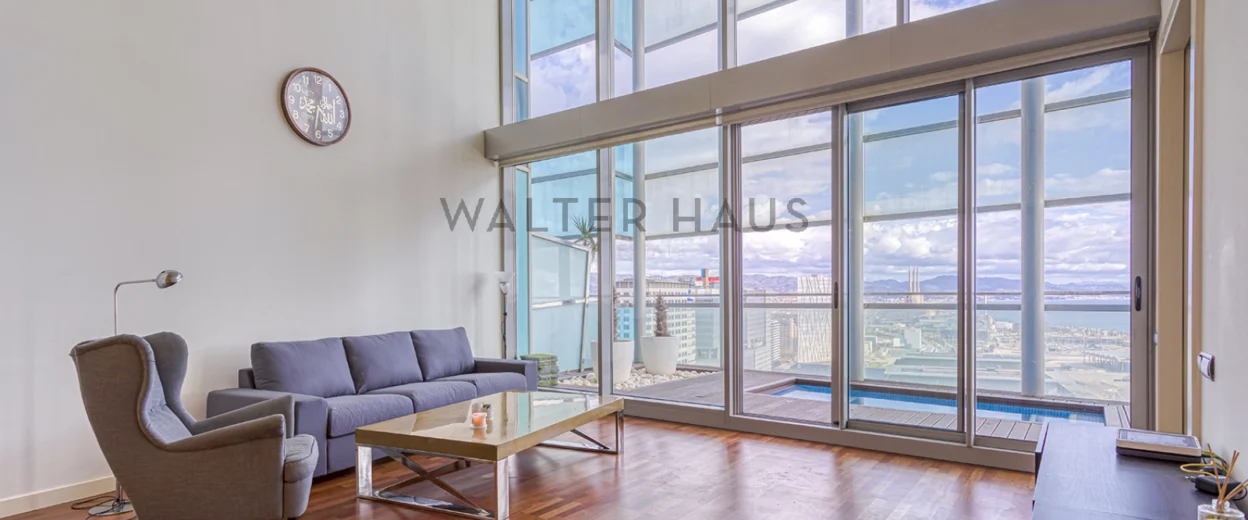 SEASONAL RENTAL. Spectacular duplex penthouse on the seafront in the exclusive Illa del Mar area of Diagonal Mar, Barcelona.
