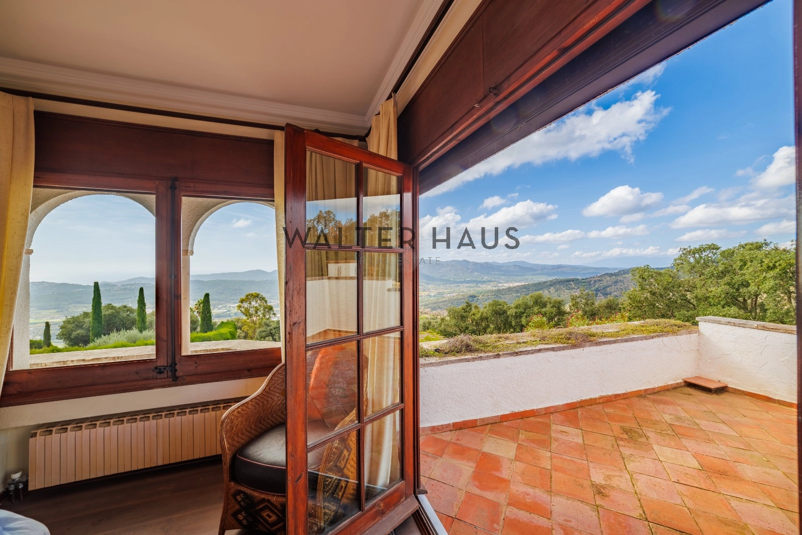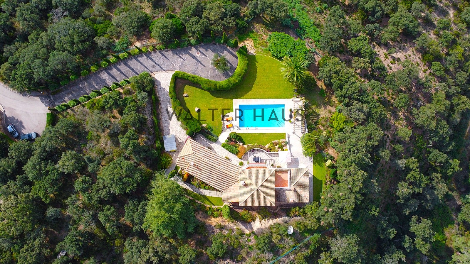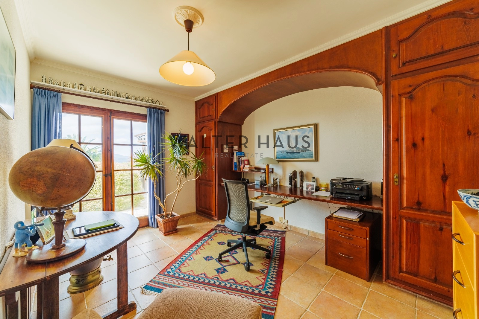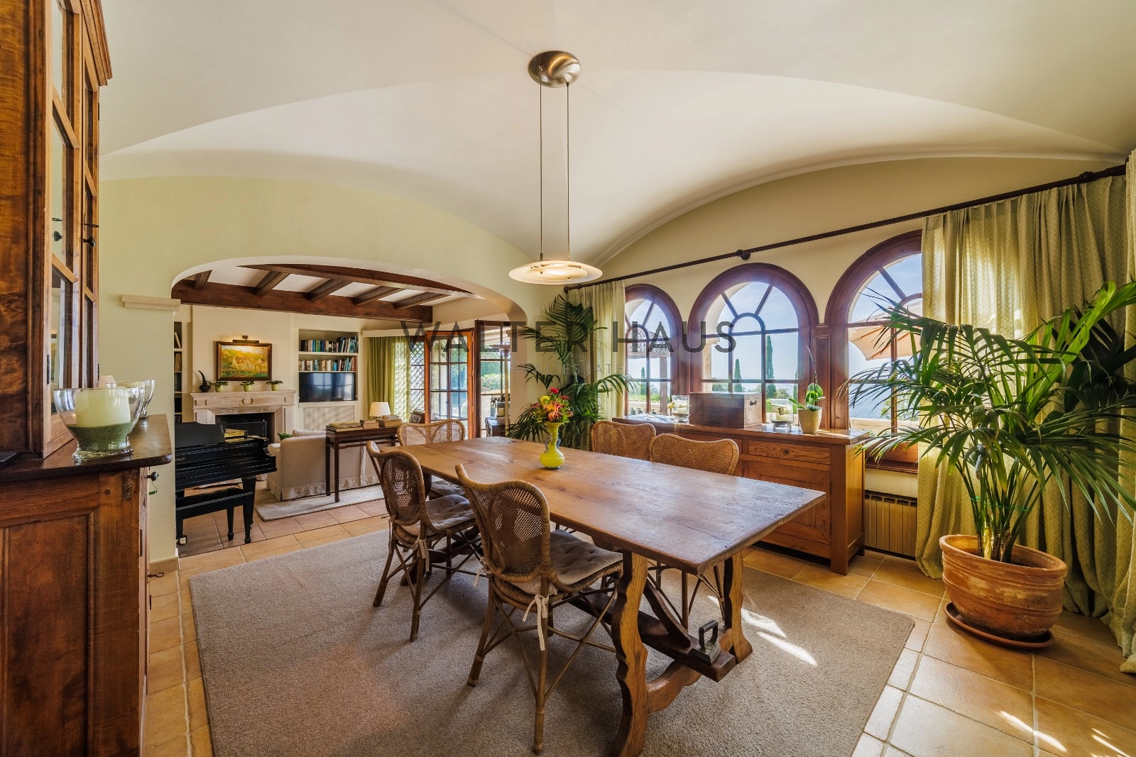 Stunning luxury villa with breathtaking views for sale in the Mas Semi urbanisation. It offers 421 m² of living space, distributed over two floors and a basement. Located in a quiet and exclusive residential area, the property is designed for maximum comfort and privacy. The 10,133 m² plot features a beautifully landscaped Mediterranean garden and a private swimming pool, creating the perfect space for outdoor enjoyment.