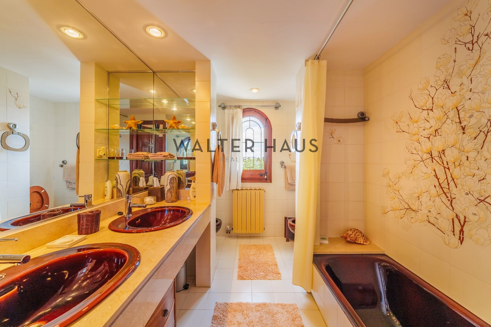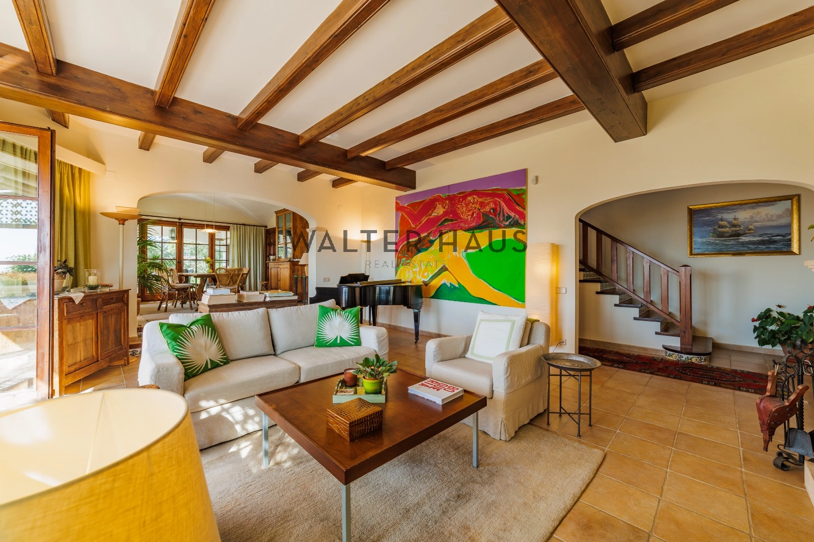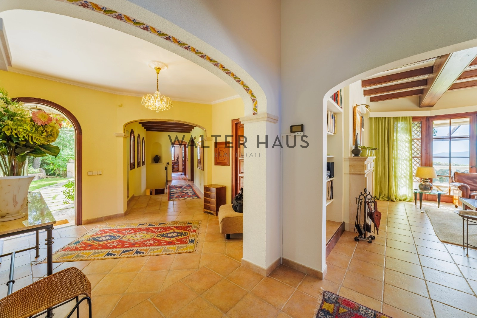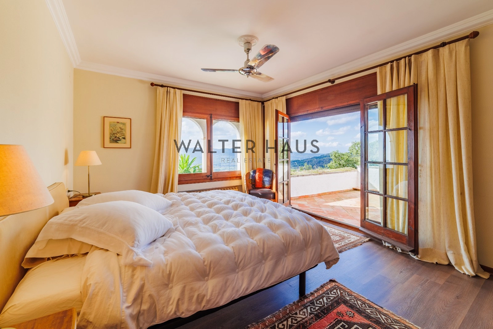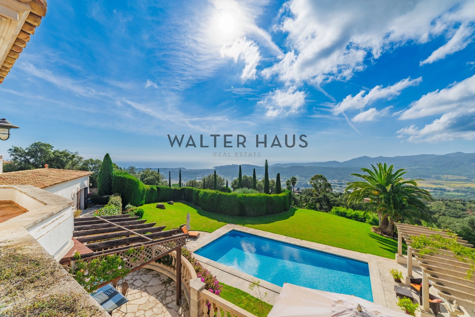 Stunning luxury villa with breathtaking views for sale in the Mas Semi urbanisation. It offers 421 m² of living space, distributed over two floors and a basement. Located in a quiet and exclusive residential area, the property is designed for maximum comfort and privacy. The 10,133 m² plot features a beautifully landscaped Mediterranean garden and a private swimming pool, creating the perfect space for outdoor enjoyment.