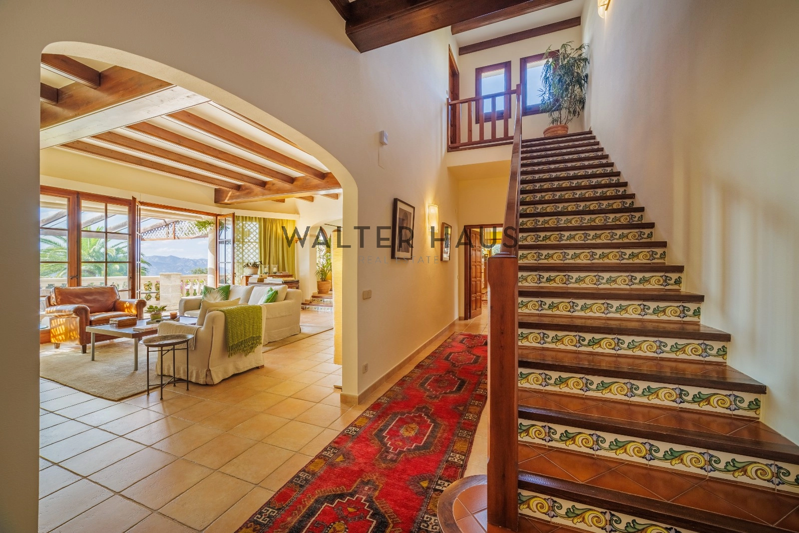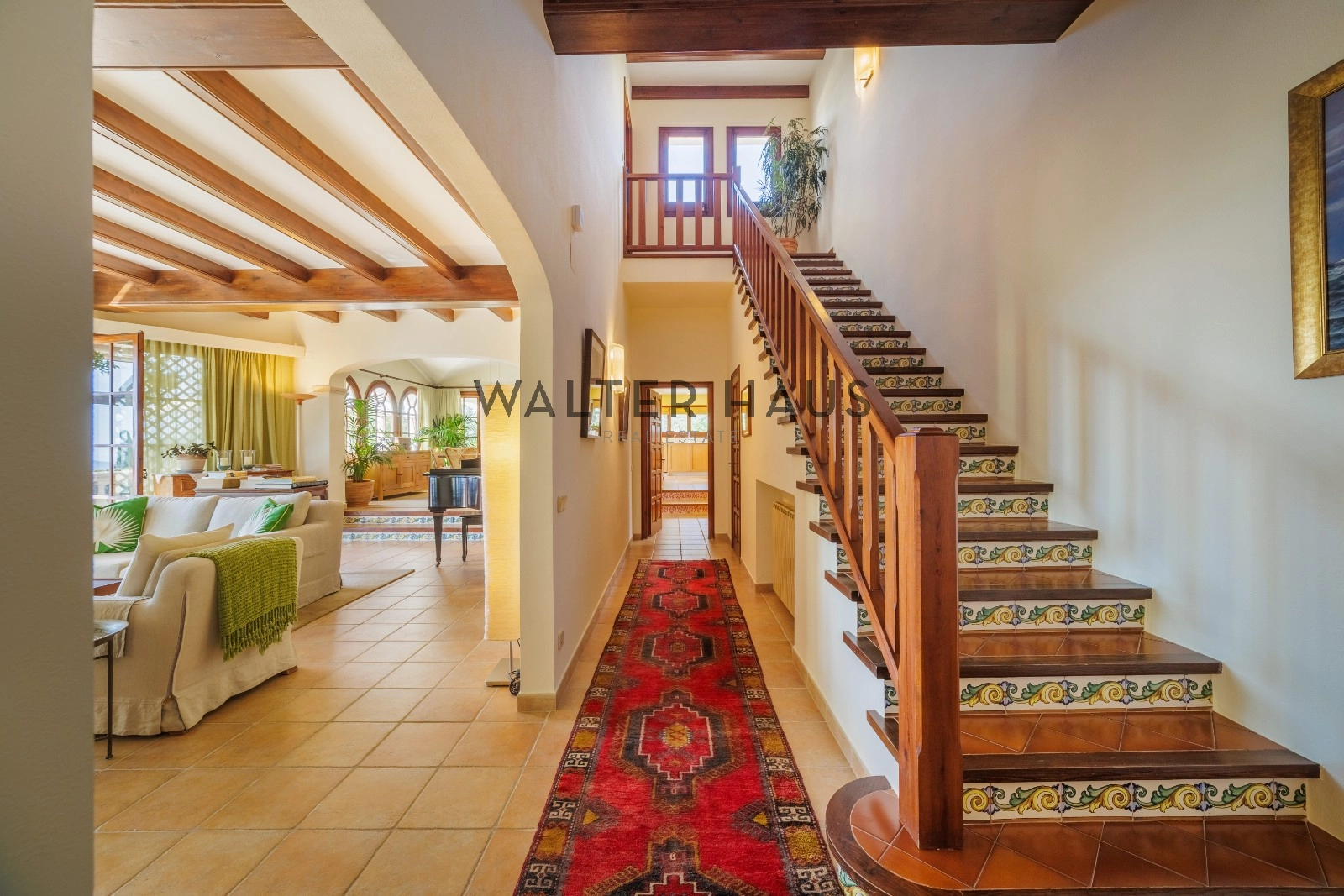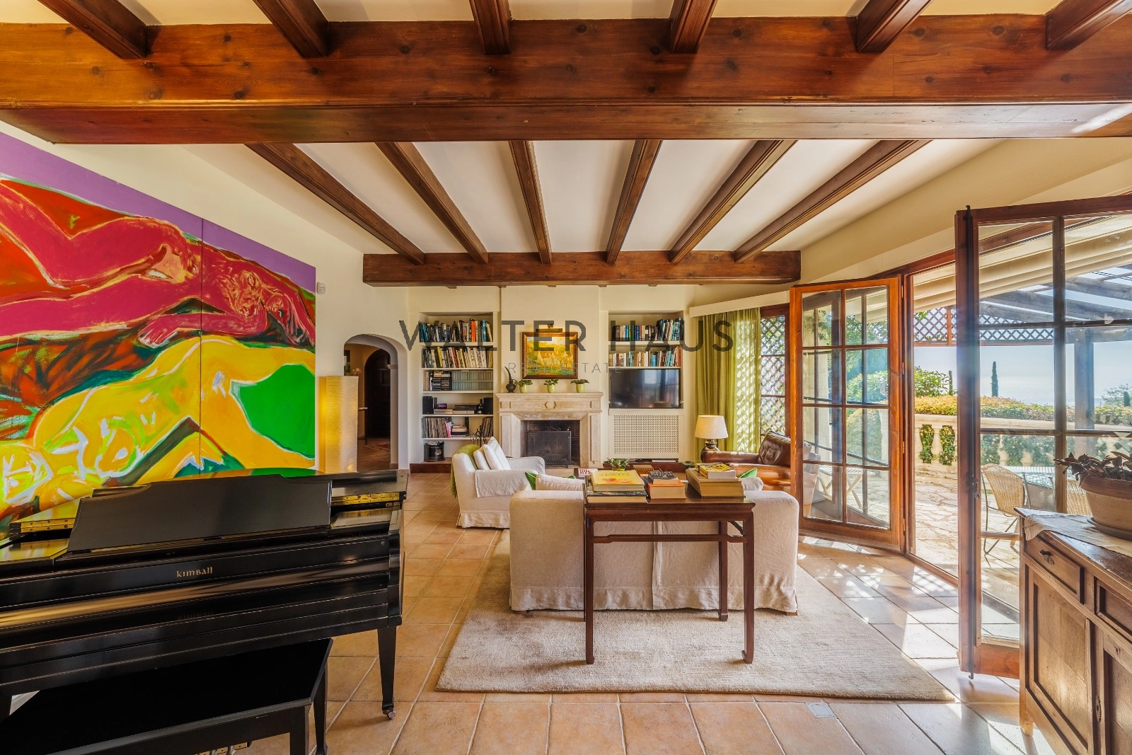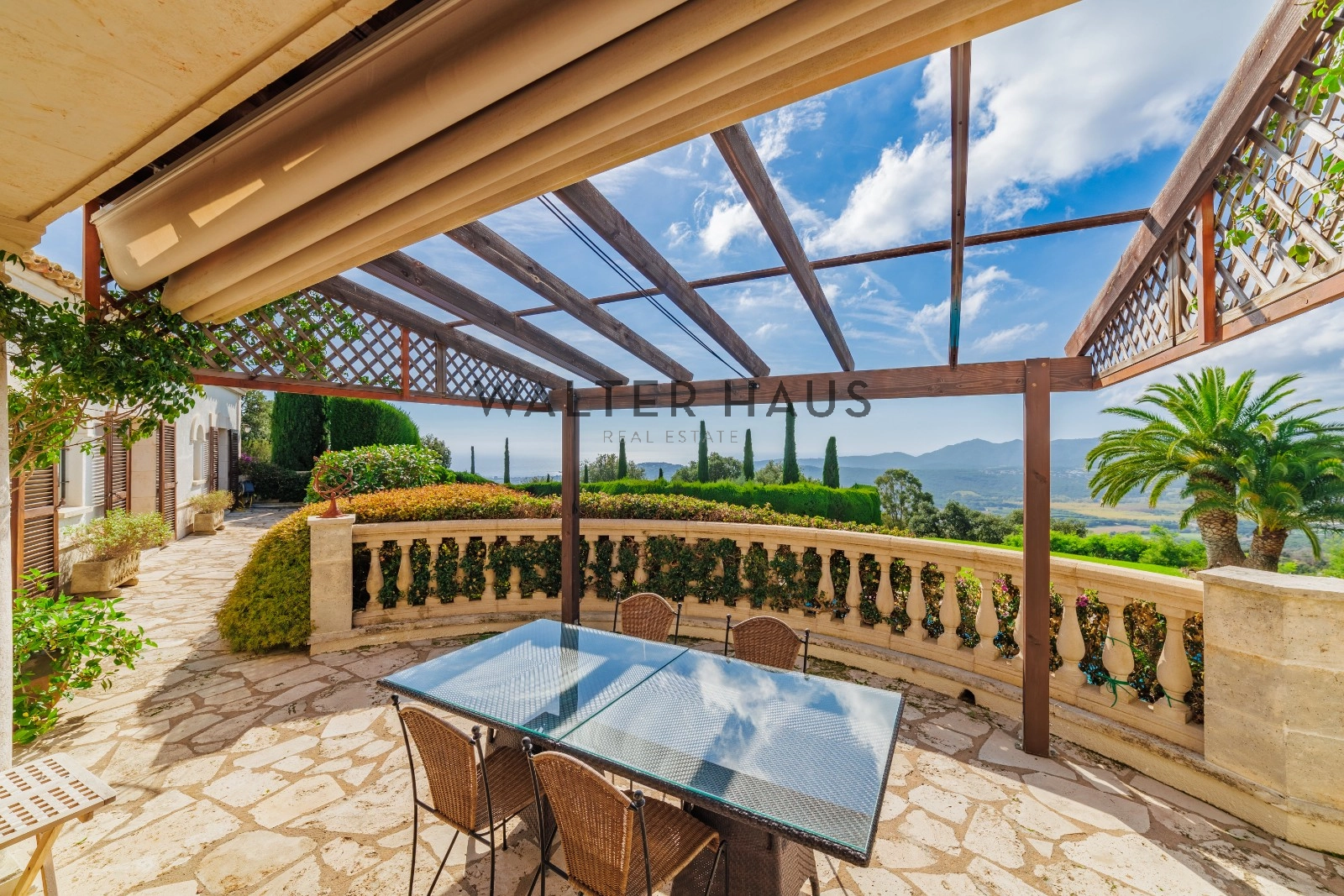 Stunning luxury villa with breathtaking views for sale in the Mas Semi urbanisation. It offers 421 m² of living space, distributed over two floors and a basement. Located in a quiet and exclusive residential area, the property is designed for maximum comfort and privacy. The 10,133 m² plot features a beautifully landscaped Mediterranean garden and a private swimming pool, creating the perfect space for outdoor enjoyment.