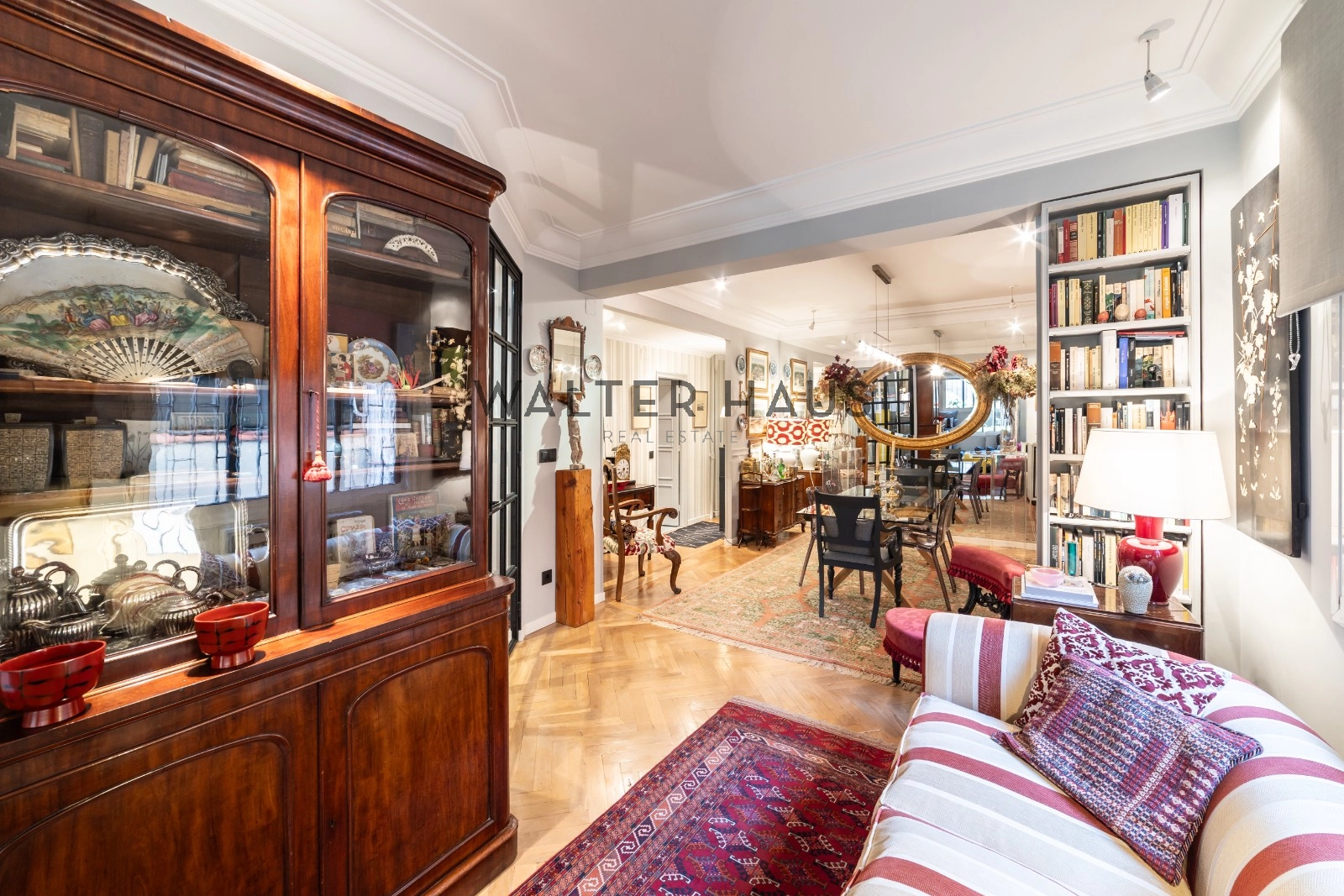 L’agencement actuel de la propriété a été pensé pour un confort maximal. Elle comprend un hall d’entrée majestueux qui dessert deux grands salons propices aux rencontres et à la détente, complétés par une spacieuse salle à manger, idéale pour tout type de célébration. La cuisine, spacieuse et fonctionnelle, comprend un espace bureau pratique. L’espace nuit se compose d’une spectaculaire chambre principale avec dressing, salle de bains privative et un confortable espace de travail/bureau, idéal pour le télétravail. Une deuxième chambre dispose également de sa propre salle de bains, garantissant ainsi une intimité optimale. Elle comprend également des toilettes invités, un salon/coin TV et un placard offrant un espace de rangement supplémentaire. Le prix comprend une place de parking pratique dans l’immeuble et un débarras, gages de plus-value et de praticité.