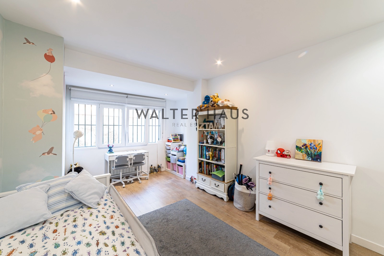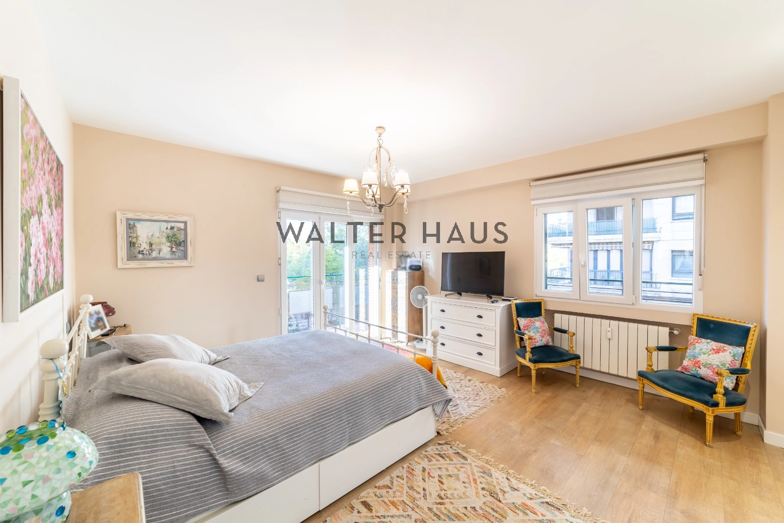 Côté intérieur, l’appartement s’ouvre sur un hall d’entrée qui dessert un vaste séjour/salle à manger avec accès direct à la terrasse. La cuisine, séparée et fonctionnelle, est équipée d’un coin repas, d’une entrée de service et d’une buanderie. L’espace nuit comprend cinq chambres : quatre très spacieuses (dont une actuellement aménagée en dressing) et une cinquième chambre avec salle de bains privative. La suite parentale dispose également d’un accès à la terrasse. Rénové il y a 10 ans, l’appartement est équipé d’une climatisation gainable au plafond et d’un chauffage central à consommation individuelle, garantissant un confort thermique optimal.