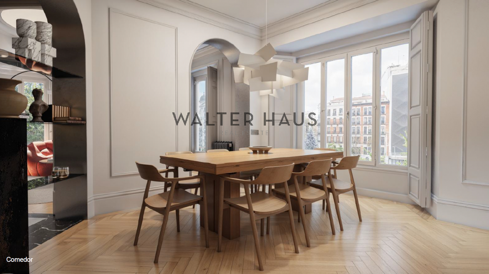 Plongez dans l’élégance intemporelle de cet appartement exceptionnel de 172 m², situé dans un immeuble majestueux de 1925 au cœur de Madrid. Cette résidence unique allie la sophistication de l’architecture classique à une rénovation contemporaine soignée, offrant un équilibre parfait entre tradition et modernité. Remarquable pour son impressionnant plafond à caissons en bois restauré, l’immeuble accueille ses résidents avec un cachet historique et un charme incomparable.