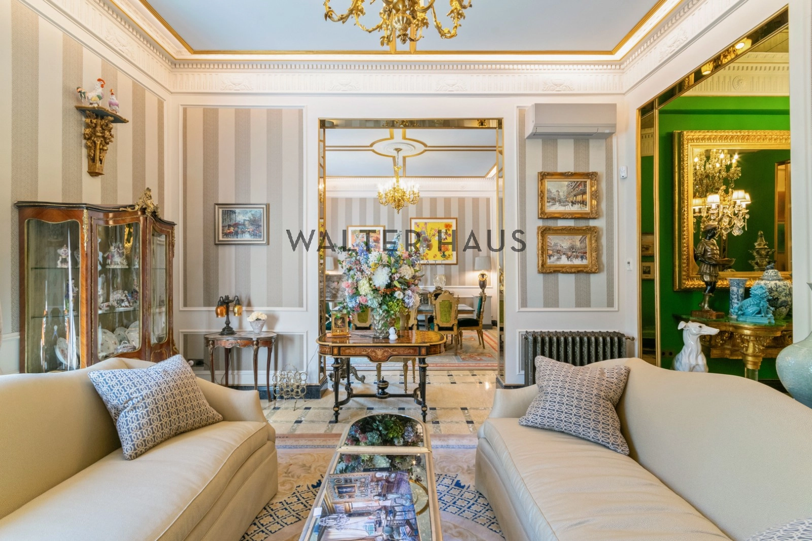 Chaque détail de cette demeure a été soigneusement pensé pour un confort optimal. Avec ses murs recouverts de soie, ses moulures raffinées et ses matériaux nobles tels que les incrustations de pierre, la propriété reflète un style unique. Les hauts plafonds, ornés de lustres italiens et de détails en bronze doré, soulignent son caractère sophistiqué. De plus, elle est équipée de la climatisation, du chauffage individuel et d’électroménagers design, le tout harmonieusement intégré dans une ambiance luxueuse.