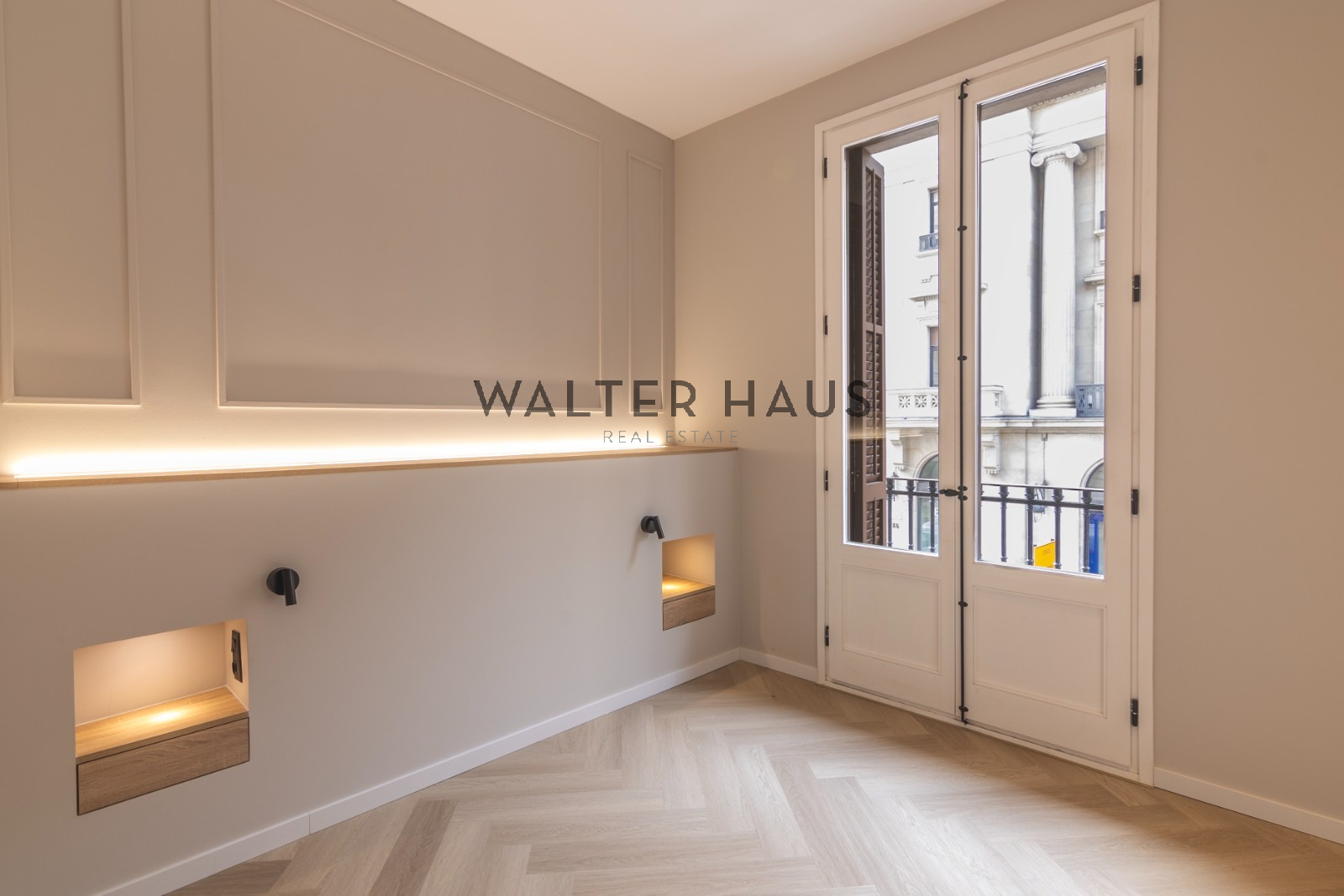 Appartement de 116 m² élégamment rénové situé sur la très prisée Via Laietana, à deux pas de la cathédrale et du Palau de la Música. Situé dans un immeuble classique, cet appartement allie charme historique et matériaux de haute qualité pour un intérieur confortable et raffiné. Son agencement fonctionnel et ses espaces lumineux créent une atmosphère chaleureuse et accueillante.