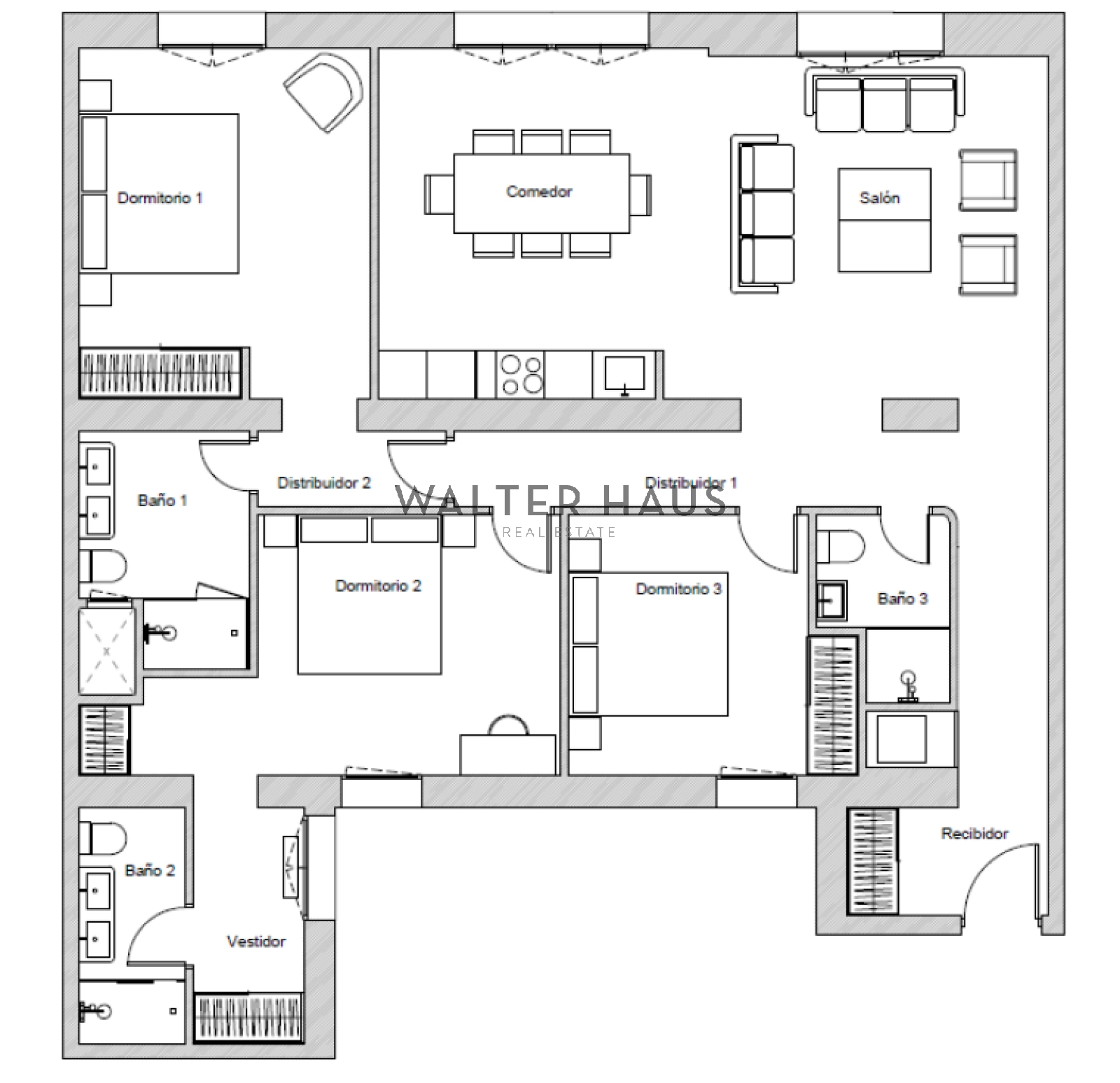 L’agencement intérieur a été soigneusement pensé pour optimiser la fonctionnalité et le confort. L’appartement comprend trois chambres spacieuses et trois salles de bains complètes aux finitions contemporaines. L’un de ses atouts majeurs est qu’il est livré entièrement meublé et rénové, prêt à emménager. Côté technique, il dispose d’un chauffe-eau individuel et d’un système de chauffage central avec compteurs individuels pour une consommation maîtrisée. De plus, l’immeuble propose un service de conciergerie pour une sécurité renforcée et met à disposition un local de stockage, un atout essentiel en milieu urbain.