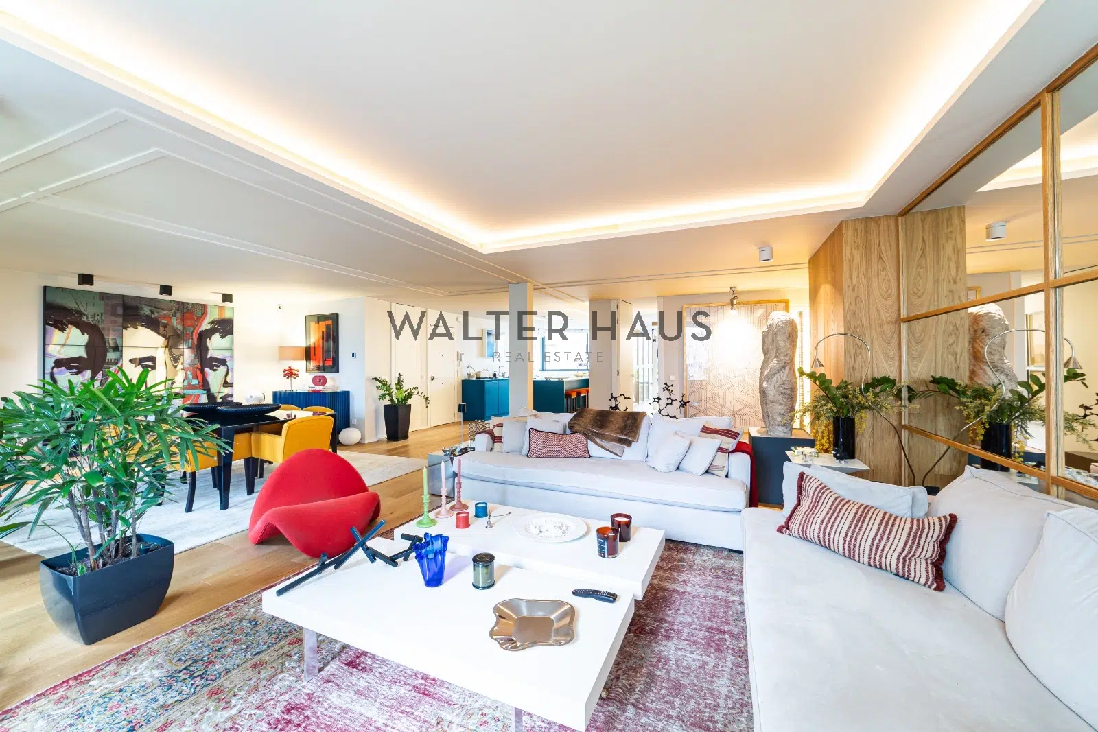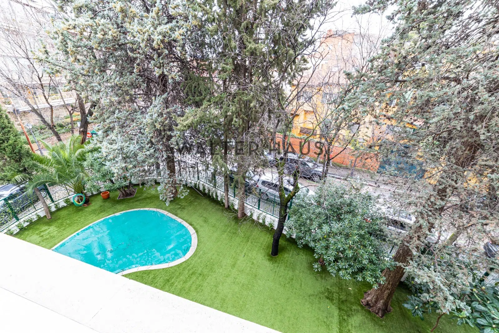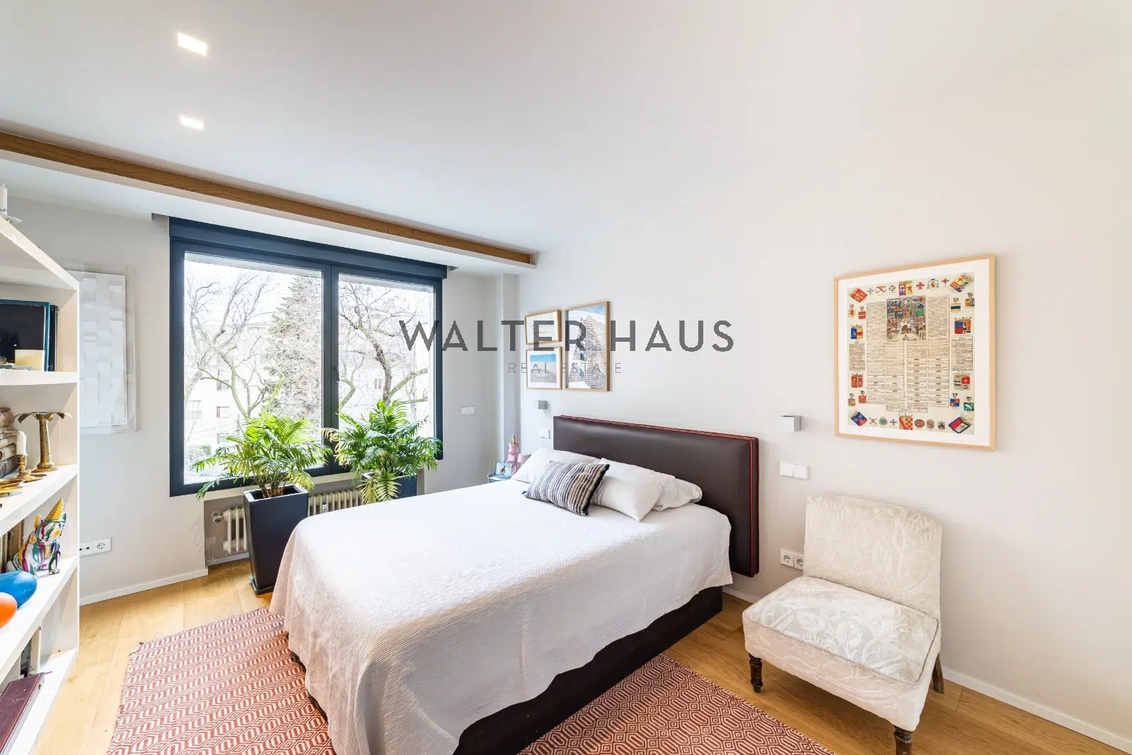 Cet appartement de 180 m² est situé dans l’un des quartiers les plus calmes et verdoyants de la capitale. Situé au deuxième étage, il a été entièrement rénové il y a seulement deux ans, avec des matériaux de haute qualité pour créer des espaces modernes et fonctionnels. L’aménagement intérieur privilégie les volumes, avec un vaste séjour-salle à manger qui s’ouvre harmonieusement sur une cuisine équipée d’un coin repas. L’appartement se prolonge vers l’extérieur par une agréable terrasse de 10 m², offrant une vue imprenable sur la verdure environnante et une sensation de tranquillité constante.