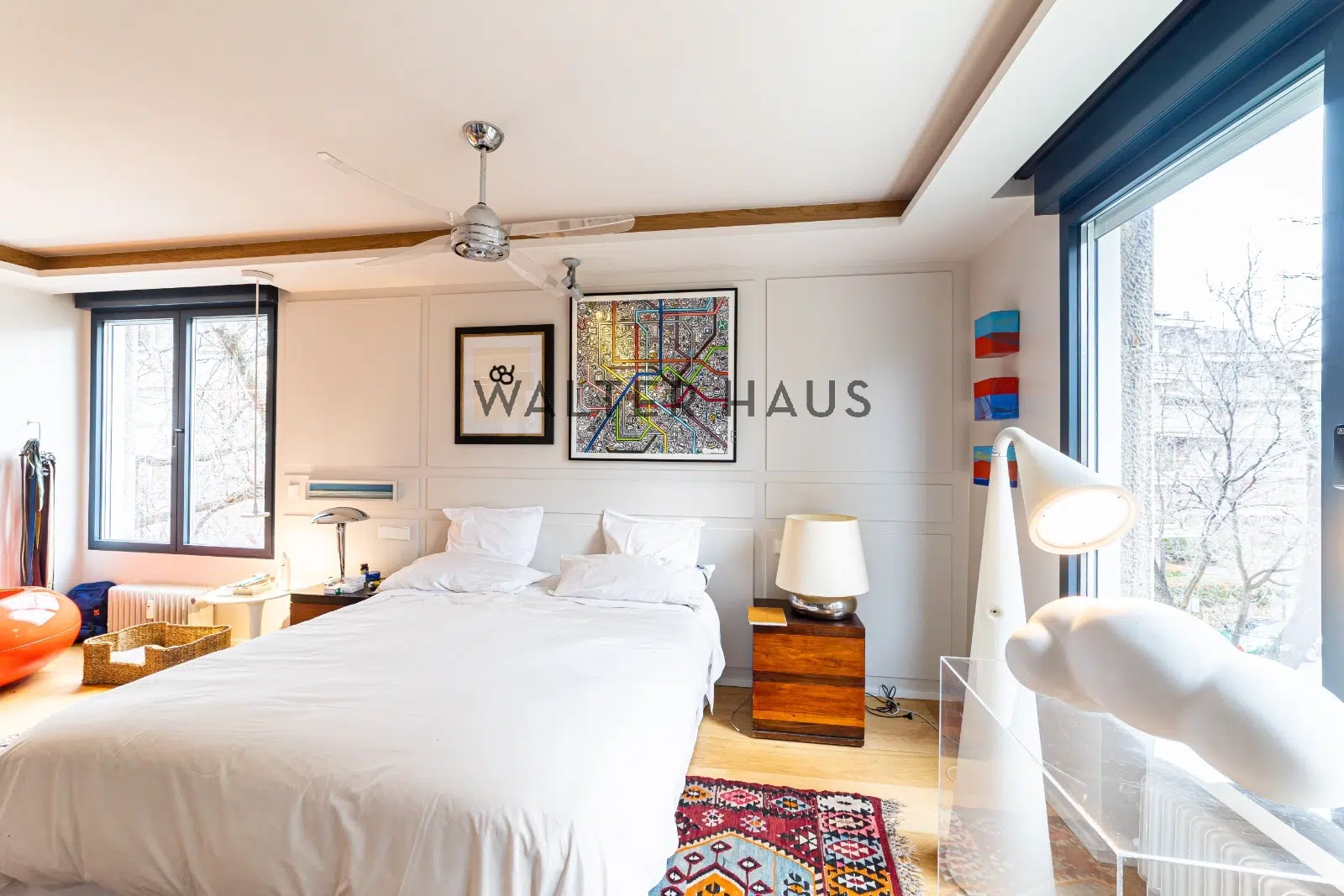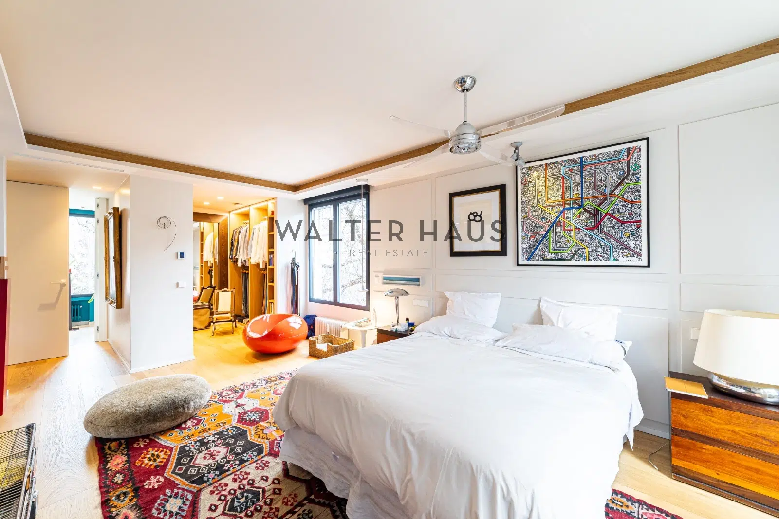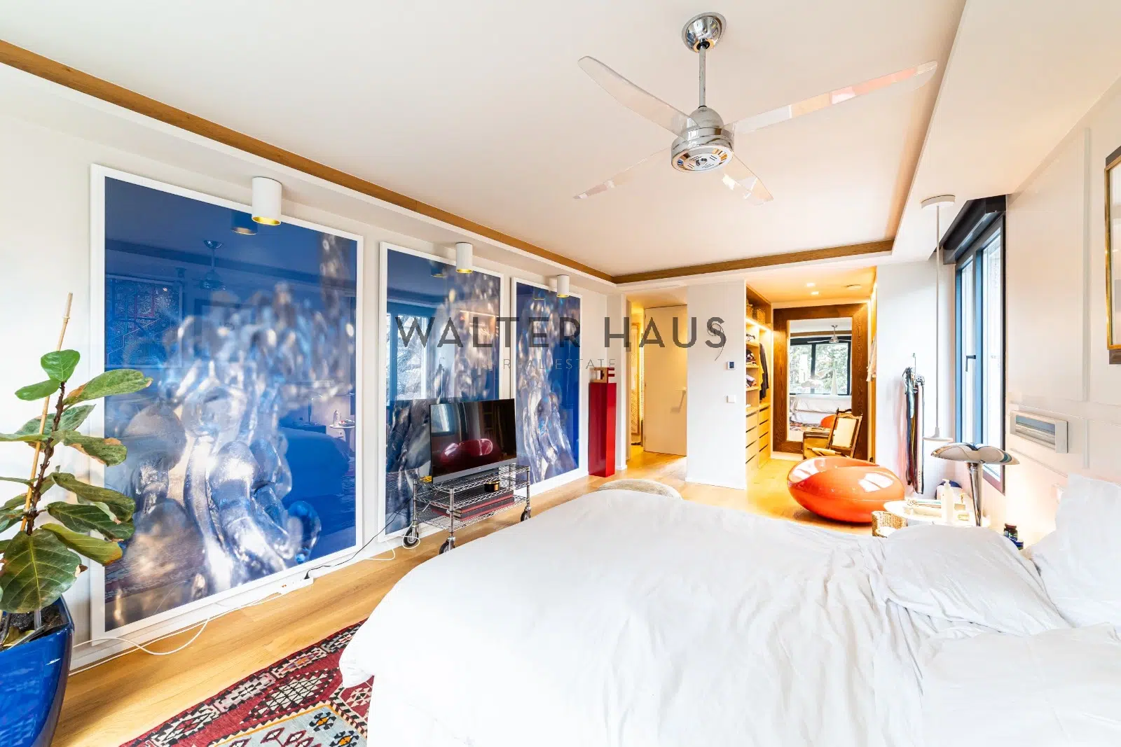 Côté technique, l’espace nuit a été conçu pour un confort optimal avec deux chambres doubles, chacune avec sa propre salle de bains. La chambre principale, spacieuse, dispose d’un dressing sur mesure et d’aménagements intégrés de qualité pour un rangement maximal. Les salles de bains sont dotées de finitions contemporaines et d’équipements haut de gamme. De plus, la maison est équipée de la climatisation, du chauffage central au gaz et d’une distribution favorisant la ventilation naturelle, garantissant un confort optimal toute l’année dans ses pièces spacieuses.