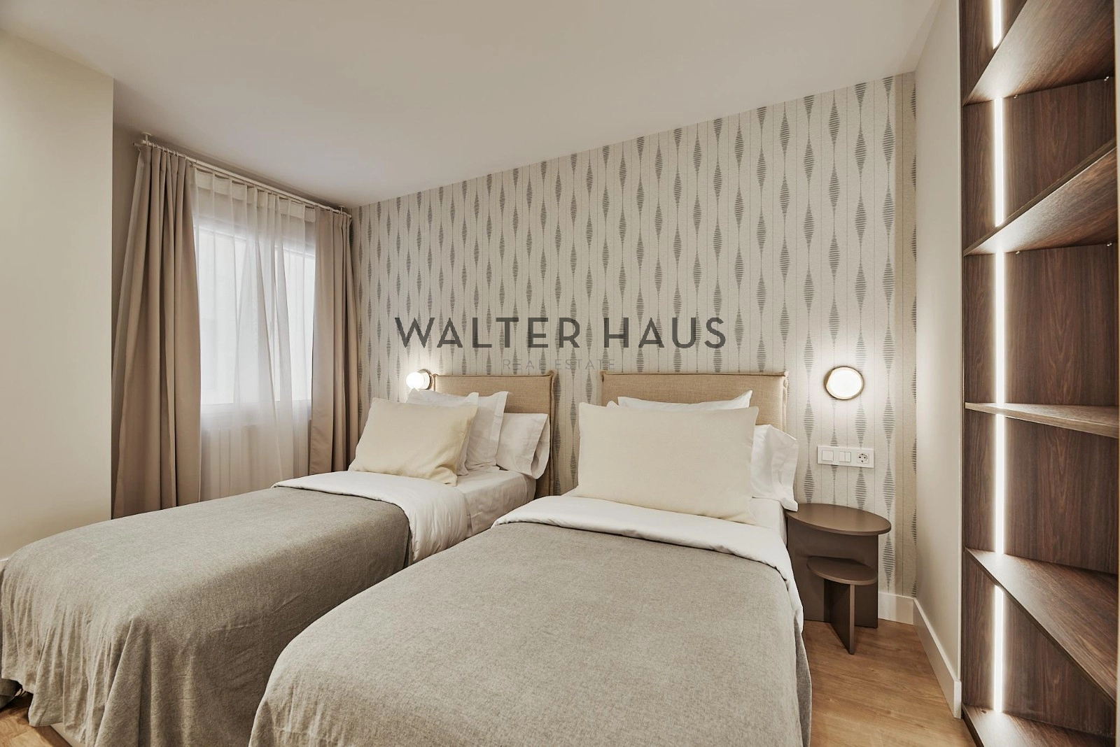 La rénovation complète réalisée par ArcTempus crée un espace ouvert et lumineux, où le séjour-salle à manger se prolonge harmonieusement vers l’extérieur, offrant un cadre idéal pour la détente et les moments de convivialité. La cuisine est entièrement équipée d’électroménagers haut de gamme et s’intègre parfaitement au design. L’agencement intérieur comprend également trois chambres spacieuses et trois salles de bains complètes, conçues avec des matériaux nobles et des finitions de haute qualité, reflétant un équilibre parfait entre élégance et confort optimal. L’un des atouts majeurs de cette propriété est sa terrasse privée, offrant une vue imprenable sur les jardins Gregorio Ordóñez et un havre de paix rare au cœur de l’effervescence urbaine.