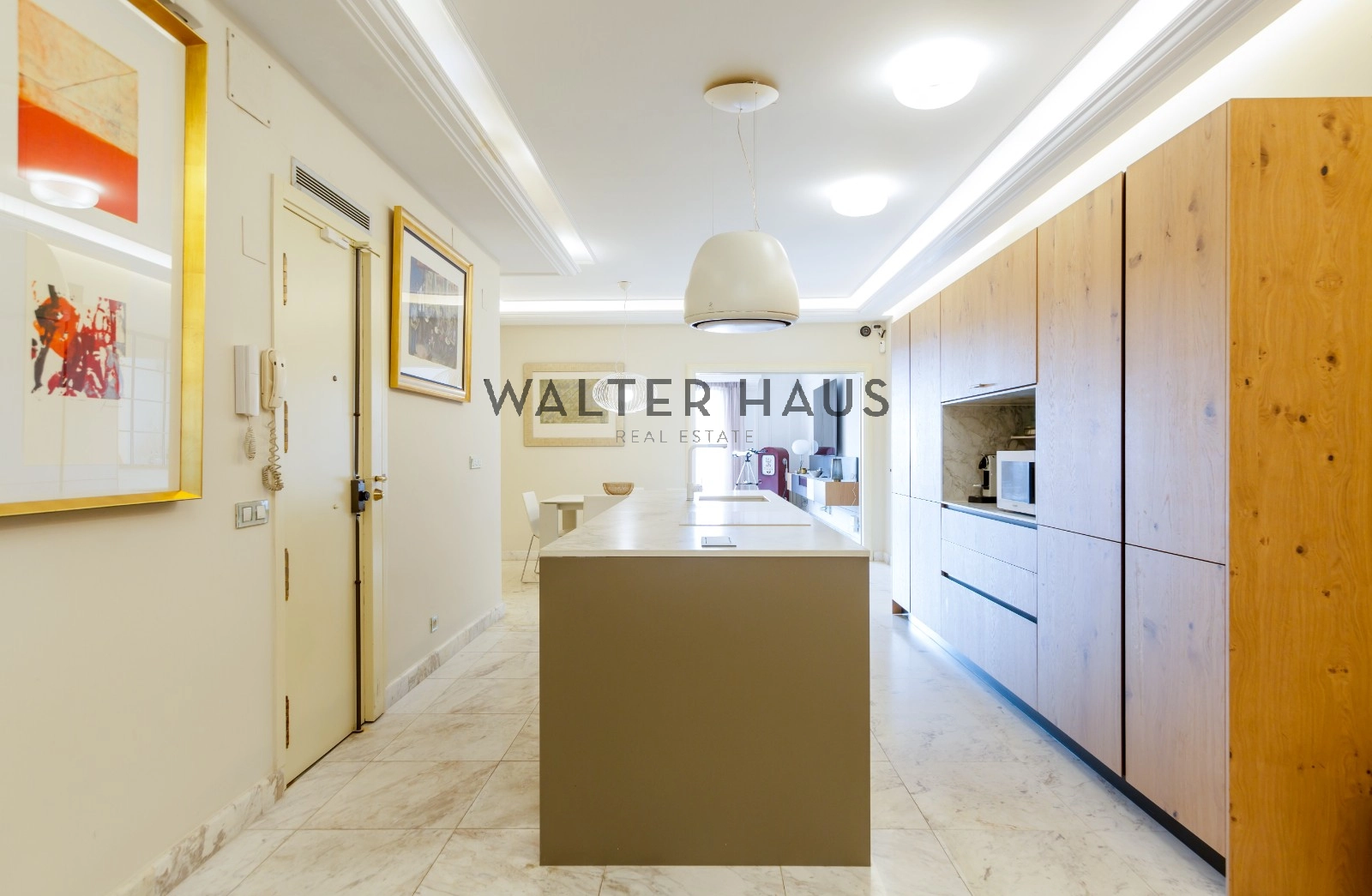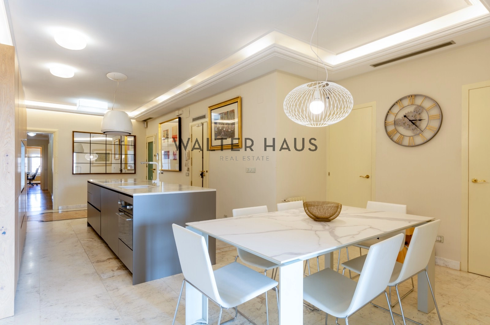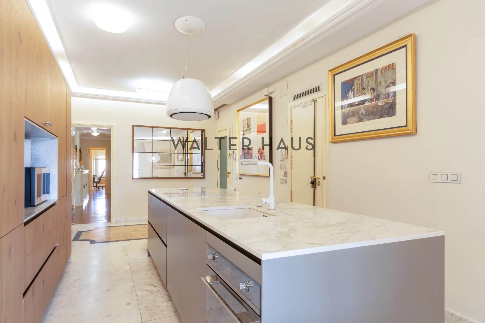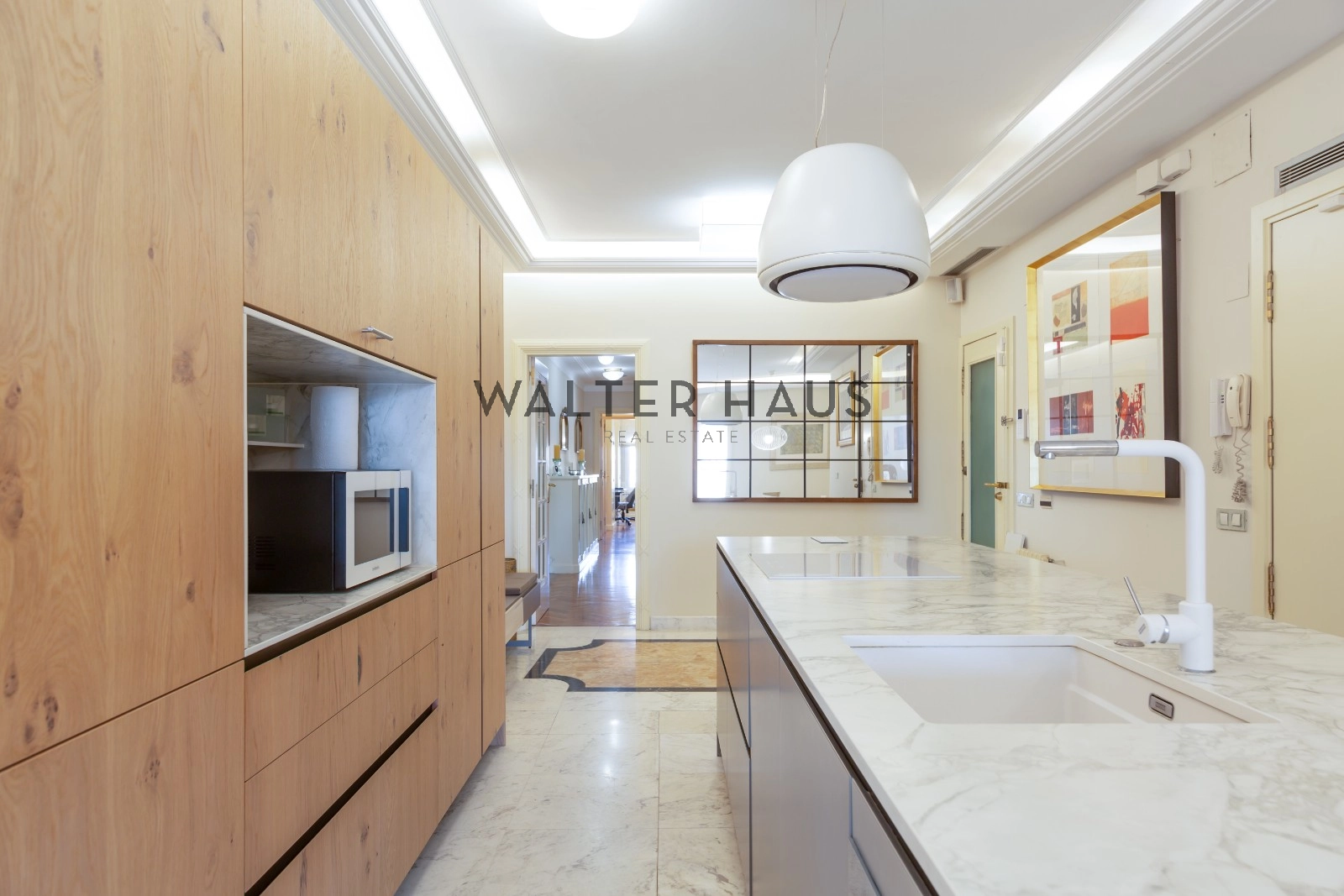 La propriété se différencie par sa distribution, séparant clairement les zones de jour et de nuit. Dans la zone nuit, les parquets en bois apportent de la chaleur, tandis que dans la zone jour, les sols en marbre reflètent un style élégant et intemporel. Il dispose de la climatisation canalisée dans toutes les pièces, ainsi que du chauffage central individuel au gaz. La cuisine, entièrement aménagée et équipée, possède un grand îlot central et un coin repas attenant. Le spacieux salon orienté sud-ouest reçoit une lumière naturelle abondante grâce à ses grandes fenêtres et a accès à un balcon avec vue sur l’emblématique Casa Batlló.