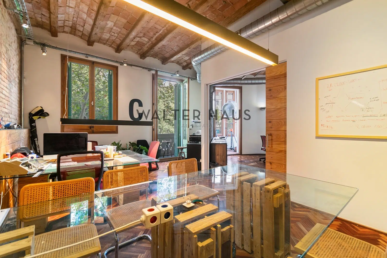 Appartement d’angle exclusif de 179 m² habitables, comprenant 158 m² de surface utile et 21 m² de parties communes, dans un immeuble de prestige. Cet appartement se distingue par son agencement extérieur, qui bénéficie d’une excellente luminosité naturelle grâce à ses multiples balcons et sa baie vitrée. Il conserve des éléments architecturaux d’origine tels que des sols en carreaux hydrauliques, des plafonds voûtés catalans d’une hauteur de 3,50 mètres et des portes en verre dépoli, qui confèrent caractère et authenticité à chaque pièce.