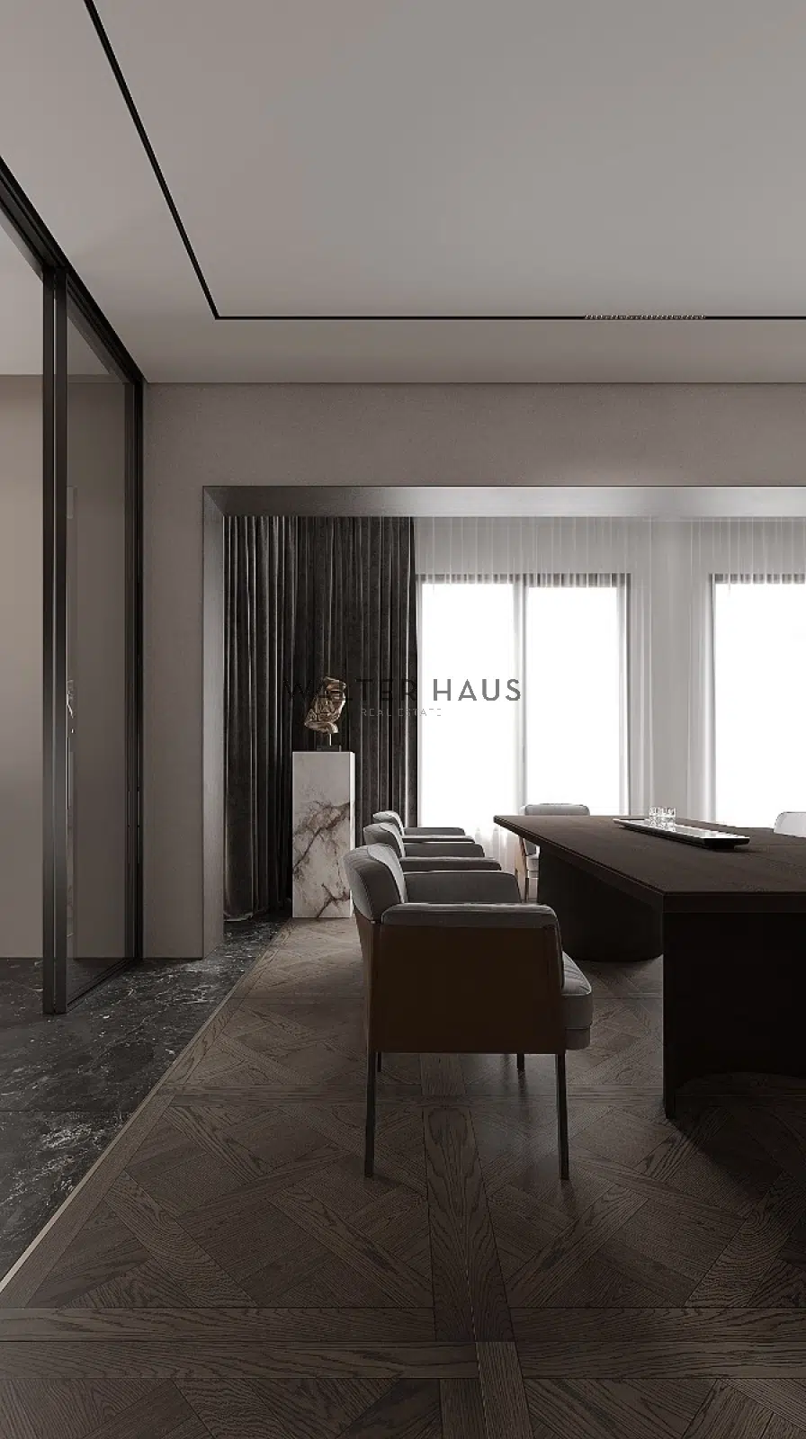 L’appartement comprend un vaste séjour avec mezzanine, une cuisine semi-ouverte, cinq chambres doubles, six salles de bains complètes, une buanderie et plusieurs dressings, offrant un espace à la fois fonctionnel et élégant. Dès l’entrée, vous découvrirez le spacieux séjour avec mezzanine, séparé de la cuisine semi-ouverte par des portes vitrées, garantissant une atmosphère lumineuse et aérée. Équipée d’un îlot en marbre et d’électroménagers haut de gamme, la cuisine est un espace idéal pour les gourmets. La suite parentale dispose d’une salle de bains privative et d’un dressing sur mesure. Les salles de bains sont équipées de baignoires ou de douches, tandis que les chambres doubles sont dotées de placards intégrés et de dressings spacieux. Ce bien propose trois options de climatisation : chauffage au sol, radiateurs à gaz et climatisation gainable.