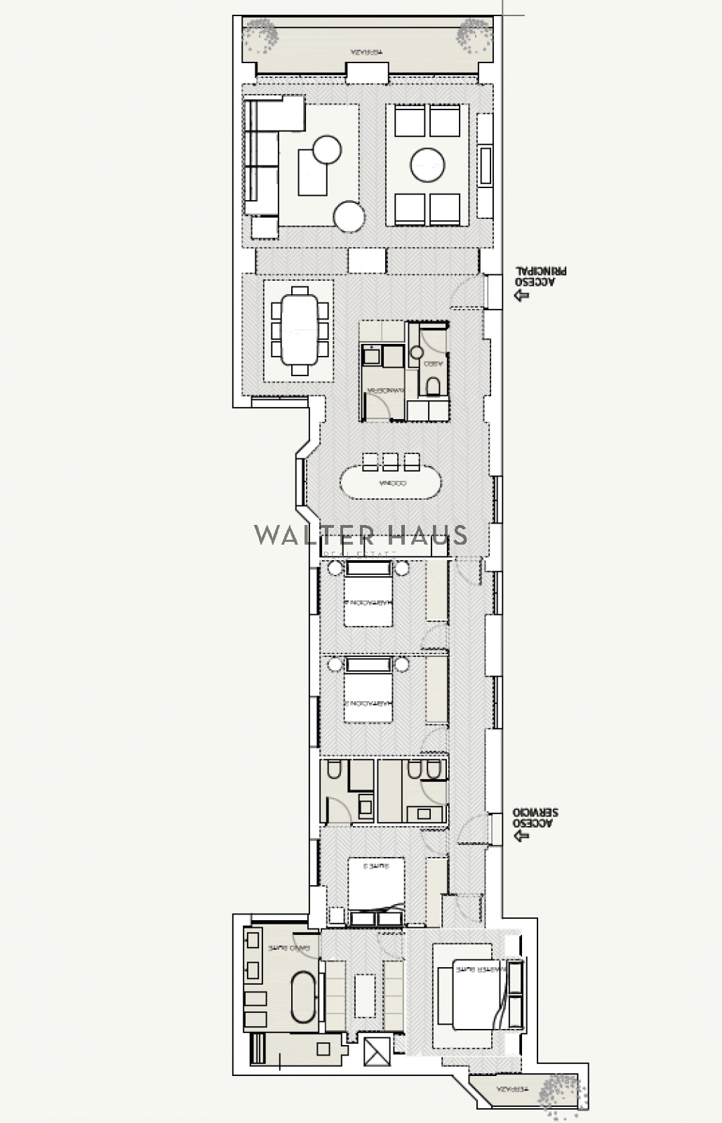 Ce superbe appartement de 247 m², situé dans un quartier central de Madrid, a été conçu pour offrir un confort de vie contemporain. Il comprend un vaste séjour/salle à manger, un espace ouvert et lumineux divisé en trois zones distinctes, idéal pour se détendre et recevoir. Il dispose de quatre chambres, offrant un espace généreux pour toute la famille, et de trois salles de bains complètes, dont deux attenantes. Des toilettes supplémentaires sont prévues pour les invités.