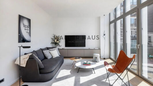 Cet appartement exclusif de 188 m², situé au deuxième étage en front de mer, offre un style de vie unique dans un bâtiment moderniste restauré qui est un bien culturel d’intérêt local. De plus, les résidents ont accès à une terrasse commune sur le toit avec une piscine, une terrasse ensoleillée et un espace barbecue avec salle à manger extérieure.