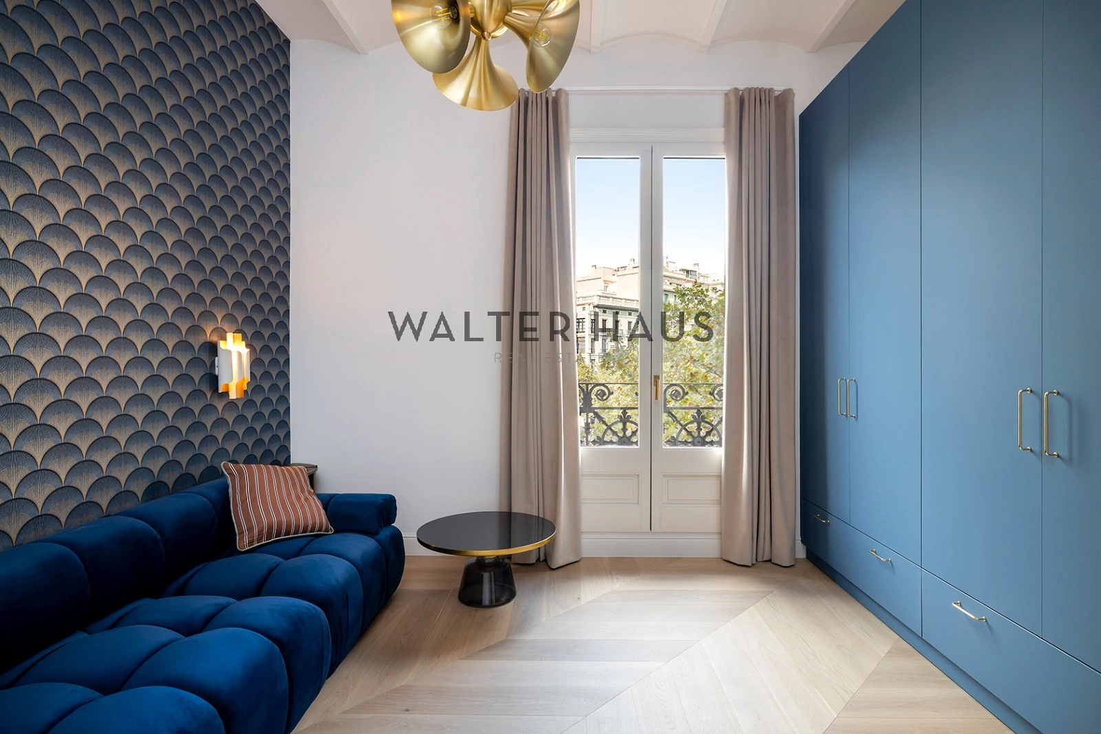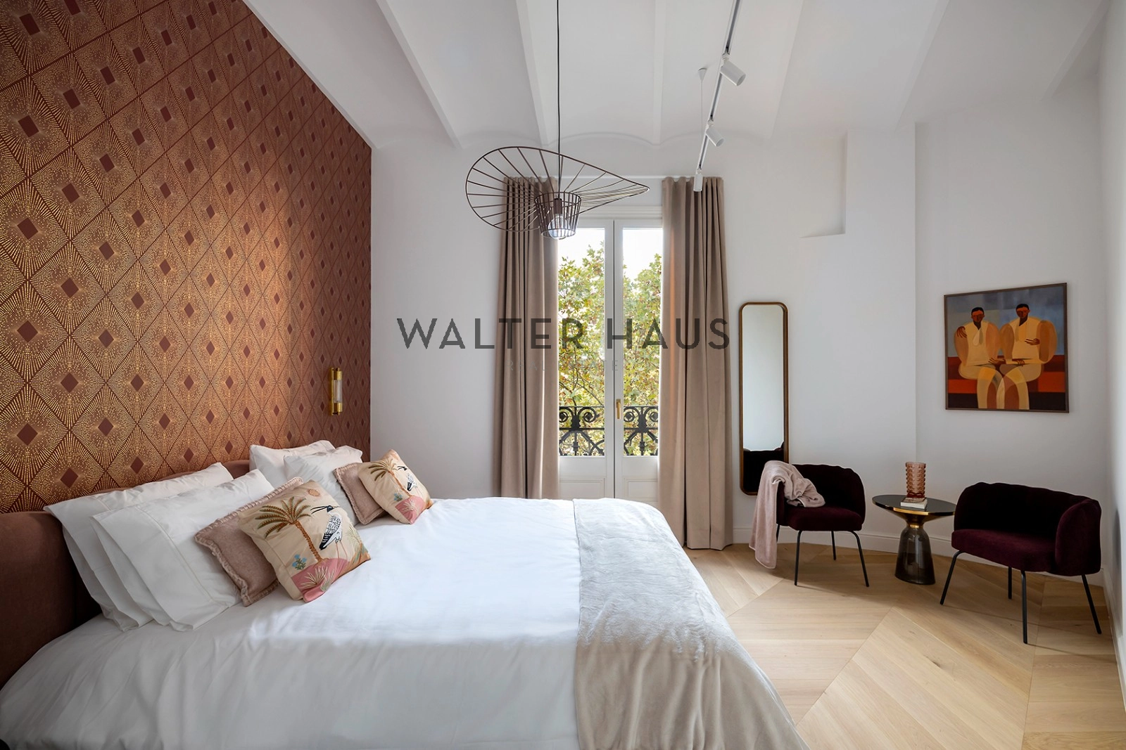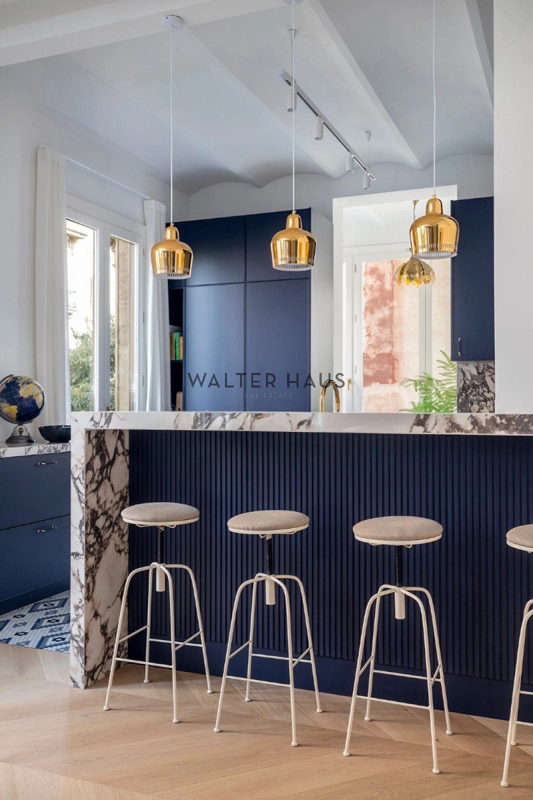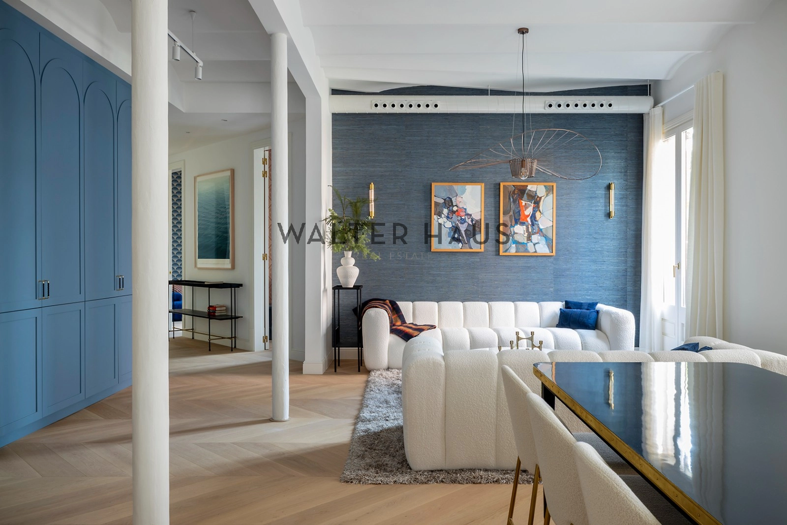 Appartement exclusif de 183 m² entièrement rénové, situé au troisième étage d’un immeuble classique de la rue Girona, dans le quartier très prisé de l’Eixample à Barcelone. Actuellement en rénovation et dont la livraison est prévue dans cinq mois, cet appartement offre des volumes exceptionnels, une luminosité naturelle abondante et un design contemporain. Cinq fenêtres de type balcon donnant sur la rue inondent l’espace de lumière naturelle et mettent en valeur chaque détail architectural.