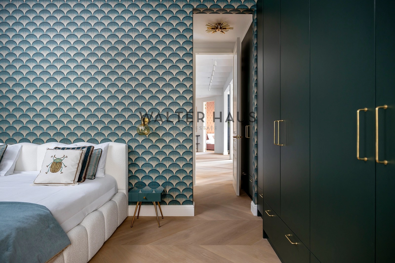 Le projet propose un agencement moderne avec un vaste séjour ouvert, intégrant harmonieusement une cuisine équipée d’un îlot central de 300 cm et d’un coin repas, créant ainsi une atmosphère à la fois fonctionnelle et élégante. De la mezzanine attenante à la cuisine jusqu’au fond du séjour, 15 mètres linéaires de façade extérieure garantissent une sensation d’espace et une vue dégagée. Le sol sera en parquet de chêne à chevrons, tandis que les salles de bains, les toilettes, la cuisine et la mezzanine seront revêtues de carrelage en céramique haut de gamme. L’appartement comprend trois grandes chambres doubles, deux salles de bains complètes et des toilettes séparées. La suite parentale bénéficie d’une grande terrasse privative.