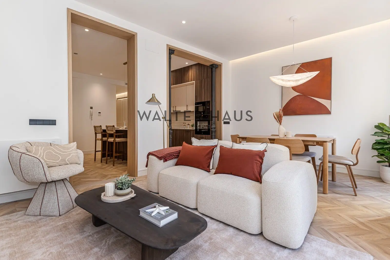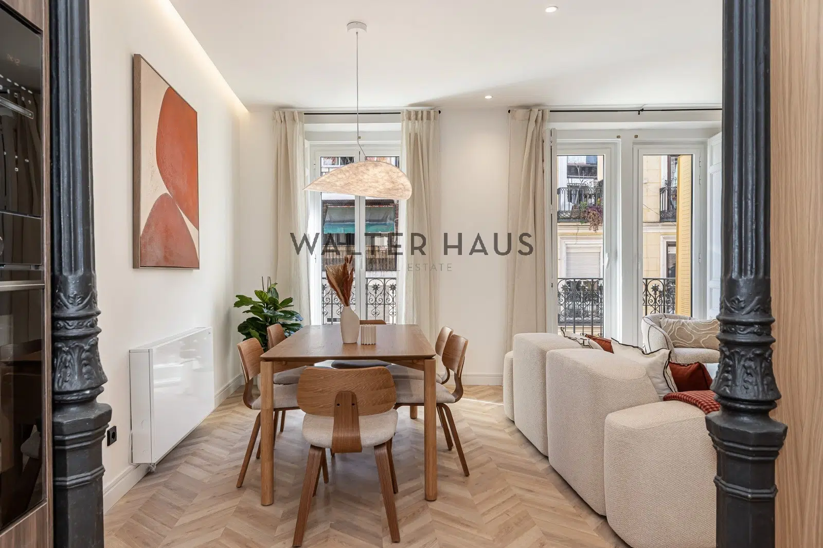 L’aménagement intérieur s’articule autour d’un vaste espace de vie semi-ouvert, combinant salon et salle à manger, qui favorise une sensation d’espace et une belle fluidité visuelle. L’espace nuit comprend trois chambres lumineuses et deux salles de bains complètes aux finitions haut de gamme et à l’esthétique contemporaine. De plus, l’appartement dispose d’une buanderie séparée et pratique, un atout précieux dans les biens situés dans le centre historique. La cuisine, élégamment intégrée à l’espace de vie, crée un cadre idéal pour le quotidien ou pour recevoir des invités dans une ambiance à la fois professionnelle et harmonieuse.