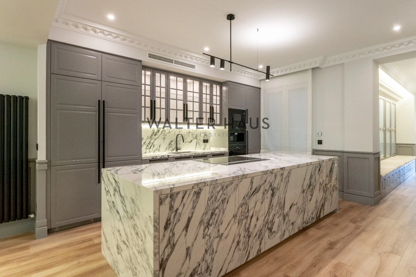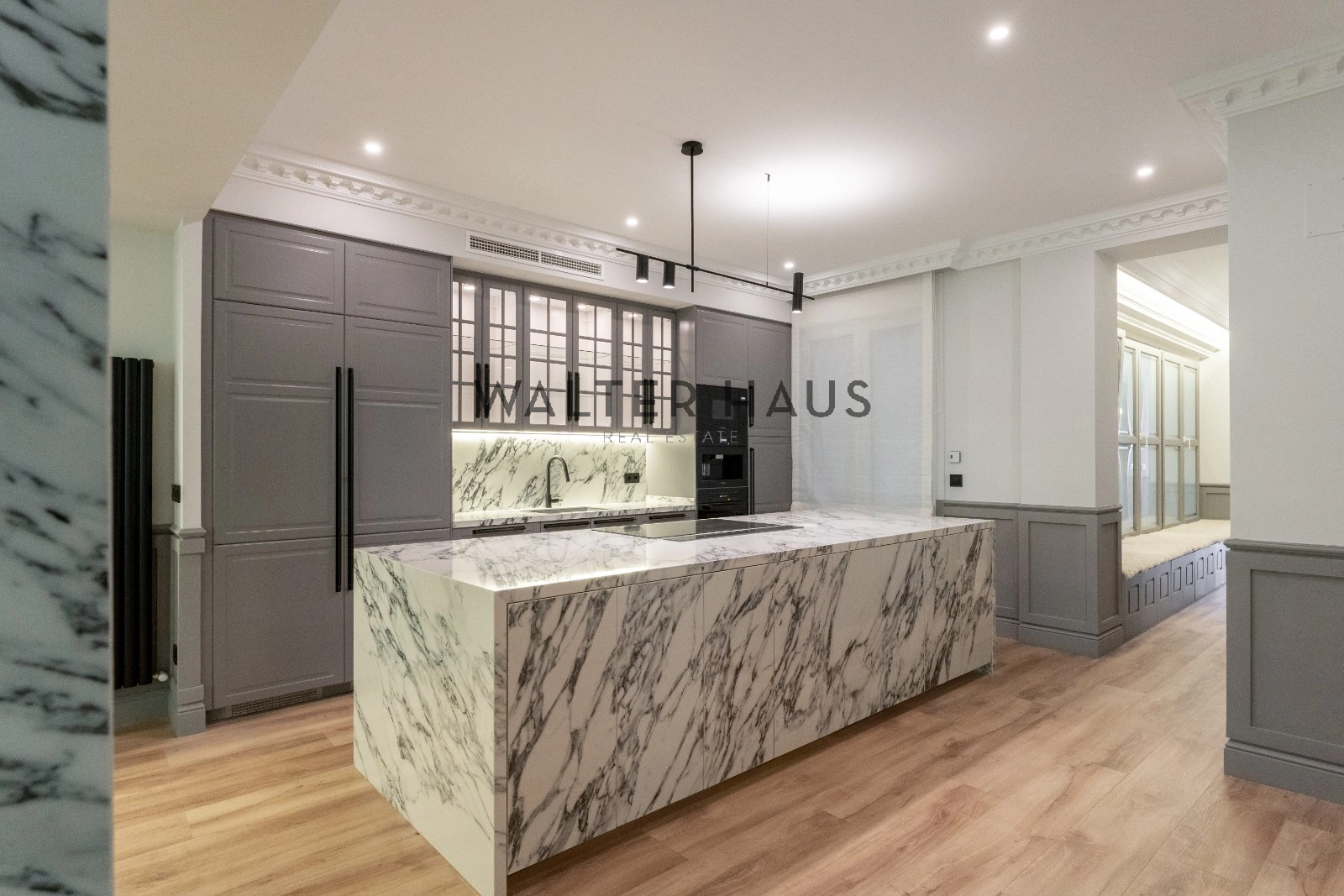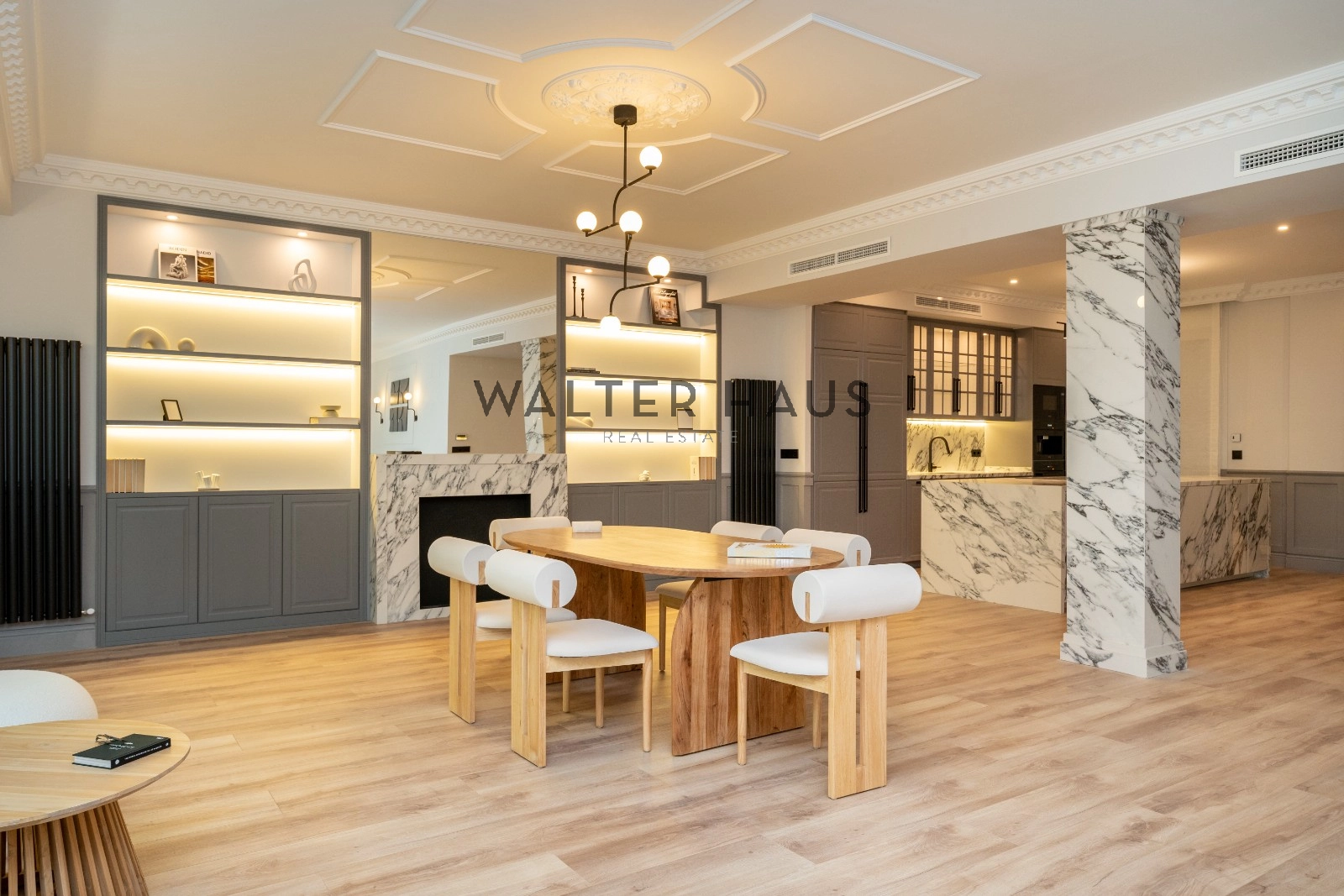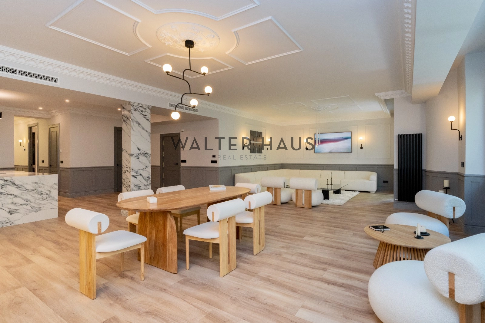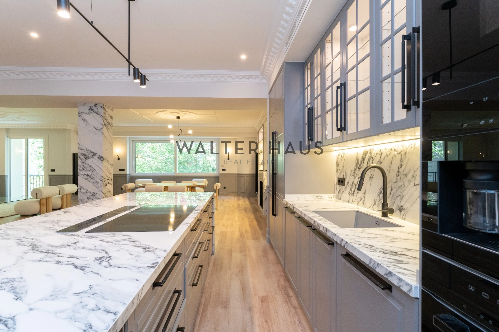 Le salon spacieux et lumineux est divisé en deux pièces, offrant un espace parfait pour se divertir et se détendre. Le salon dispose d’une agréable terrasse, idéale pour profiter d’une petite table et de deux fauteuils. La cuisine, intégrée au salon, est équipée d’électroménagers de qualité supérieure et possède un grand îlot central qui fait office de diviseur entre la salle à manger et la cuisine, offrant une grande capacité de rangement et un espace idéal pour les petits déjeuners, les dîners et comme salle à manger. domaine du travail culinaire.