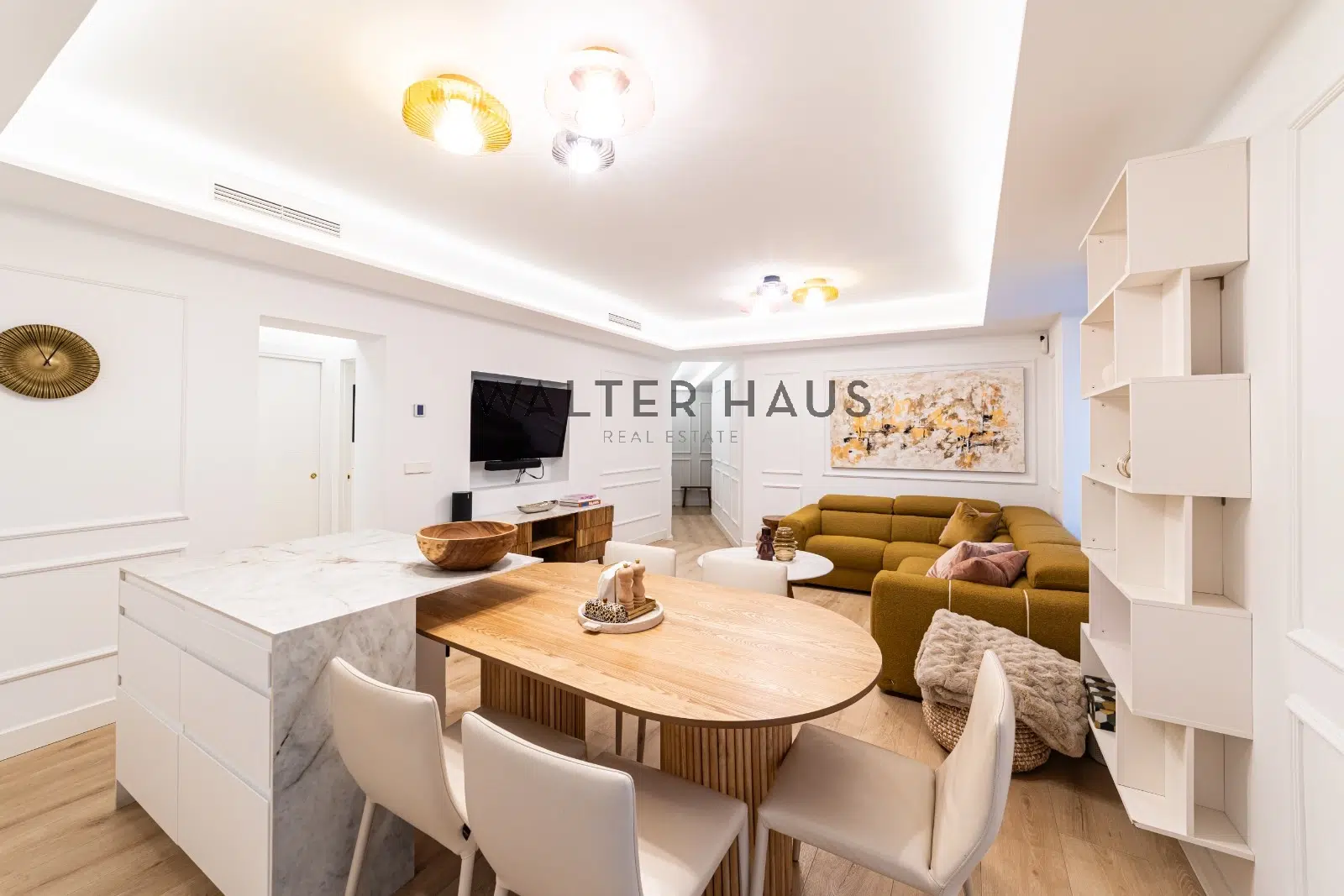 Situé dans la prestigieuse et emblématique Casa de las Bolas, cet appartement de 130 m² se distingue par une optimisation exceptionnelle de chaque mètre carré, grâce à une rénovation haut de gamme. Dès l’entrée, on est séduit par une distribution fluide et logique qui maximise la sensation d’espace dans chaque pièce. L’espace de vie s’organise autour d’un séjour/salle à manger contemporain, baigné de lumière naturelle grâce à son emplacement dans un immeuble d’une grande valeur architecturale. Les espaces ont été conçus pour offrir une esthétique épurée et équilibrée, idéale pour ceux qui recherchent un logement fonctionnel et accueillant.