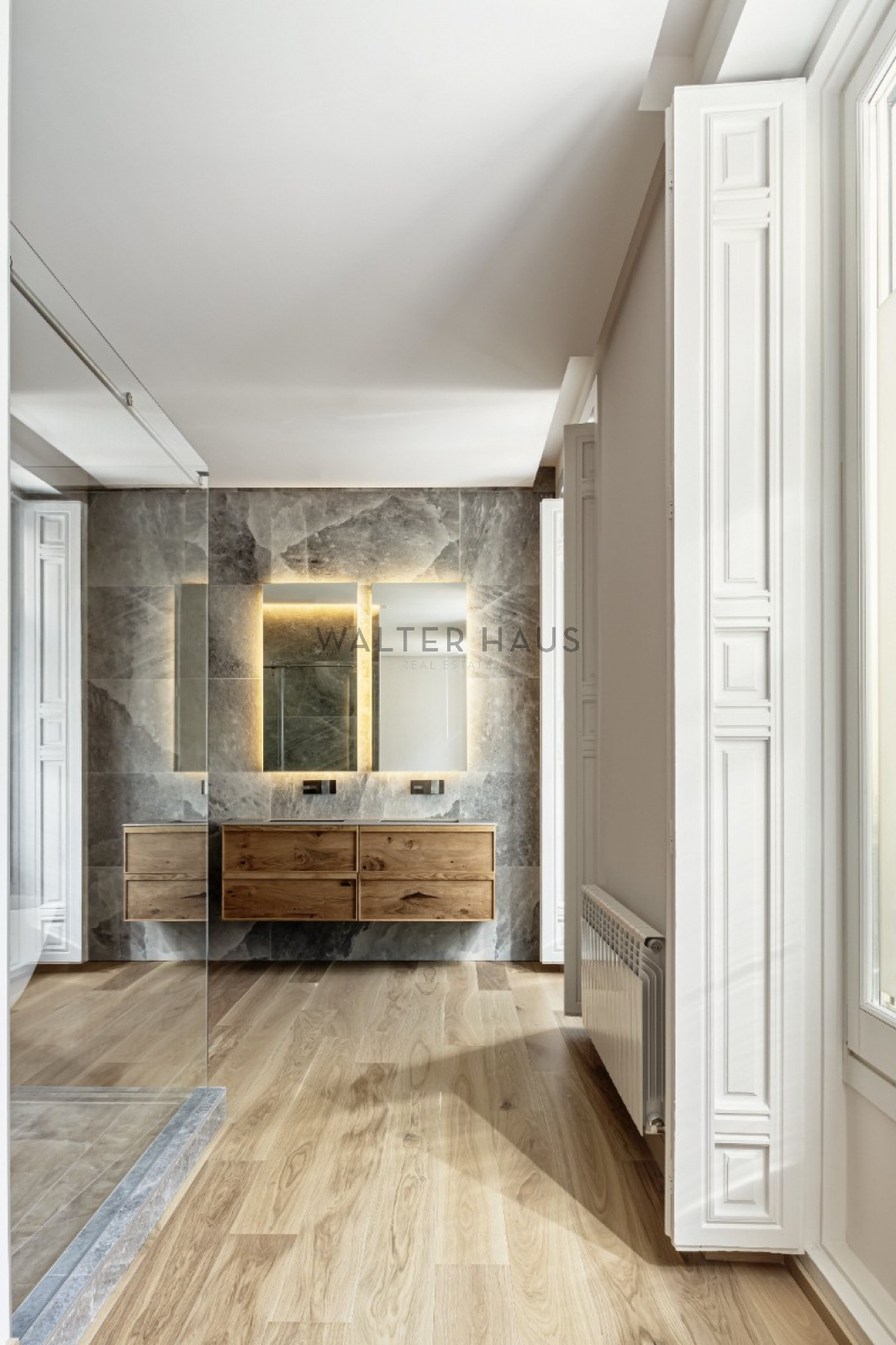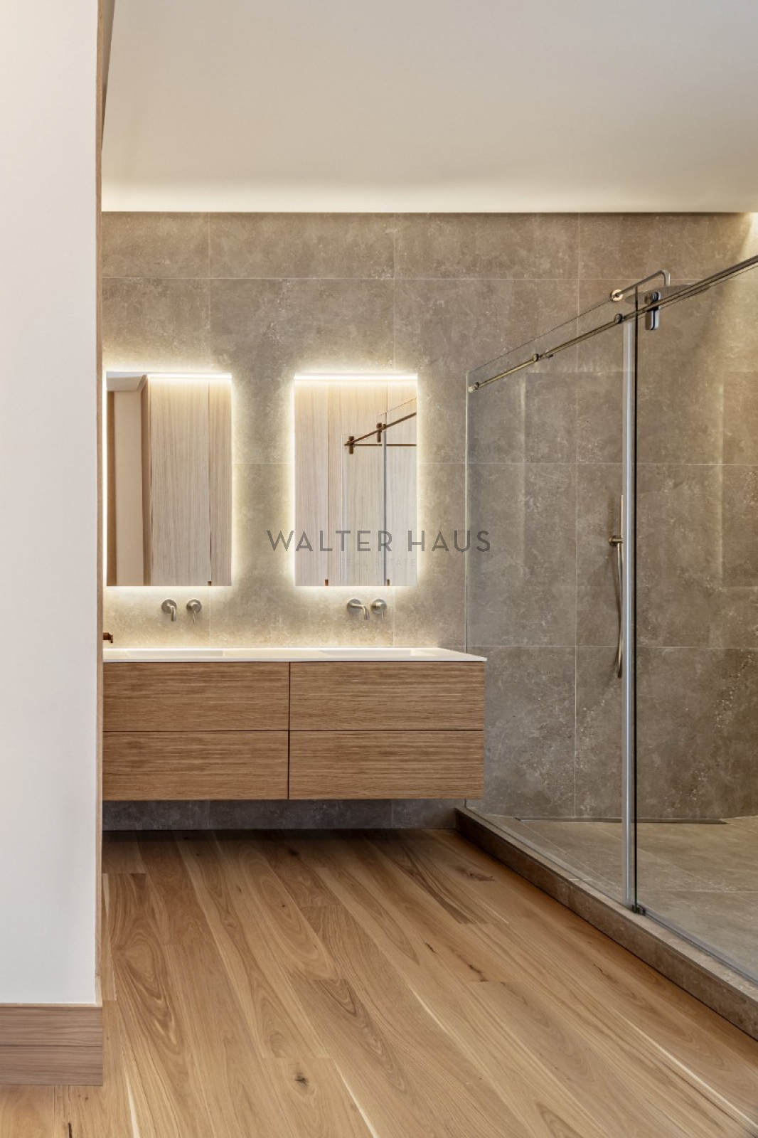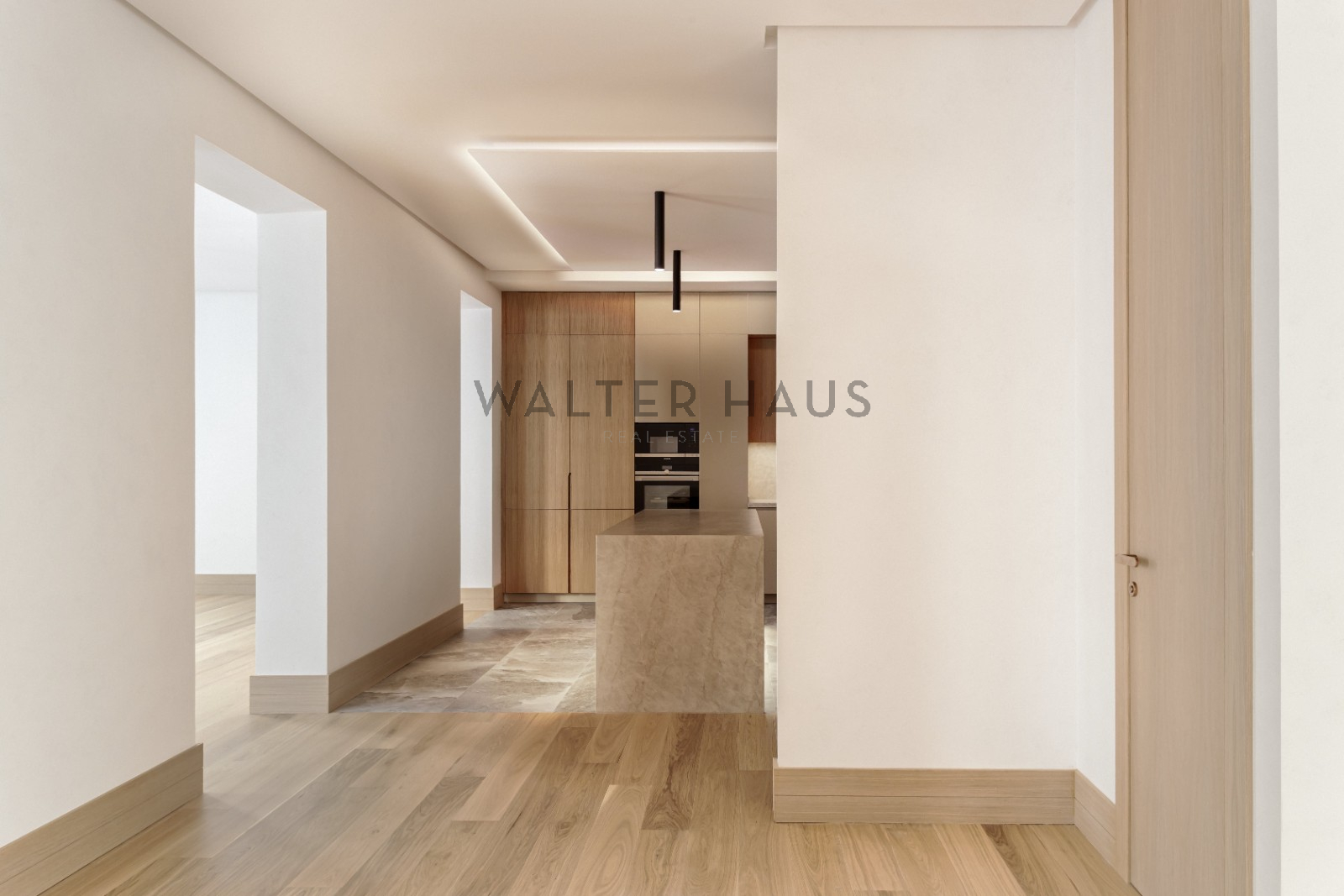 Avec ses généreux 385 mètres carrés au sol et une hauteur sous plafond de 3,5 mètres, cette résidence est entièrement extérieure et dispose de huit balcons qui offrent une grande lumière naturelle. Distribuée en deux grands halls d’entrée, un salon de 81 mètres carrés en trois pièces, une salle à manger intégrée pour les invités, trois chambres en suite avec salles de bains et dressings spacieux dans chacune d’elles, cette propriété respire l’élégance et le confort.