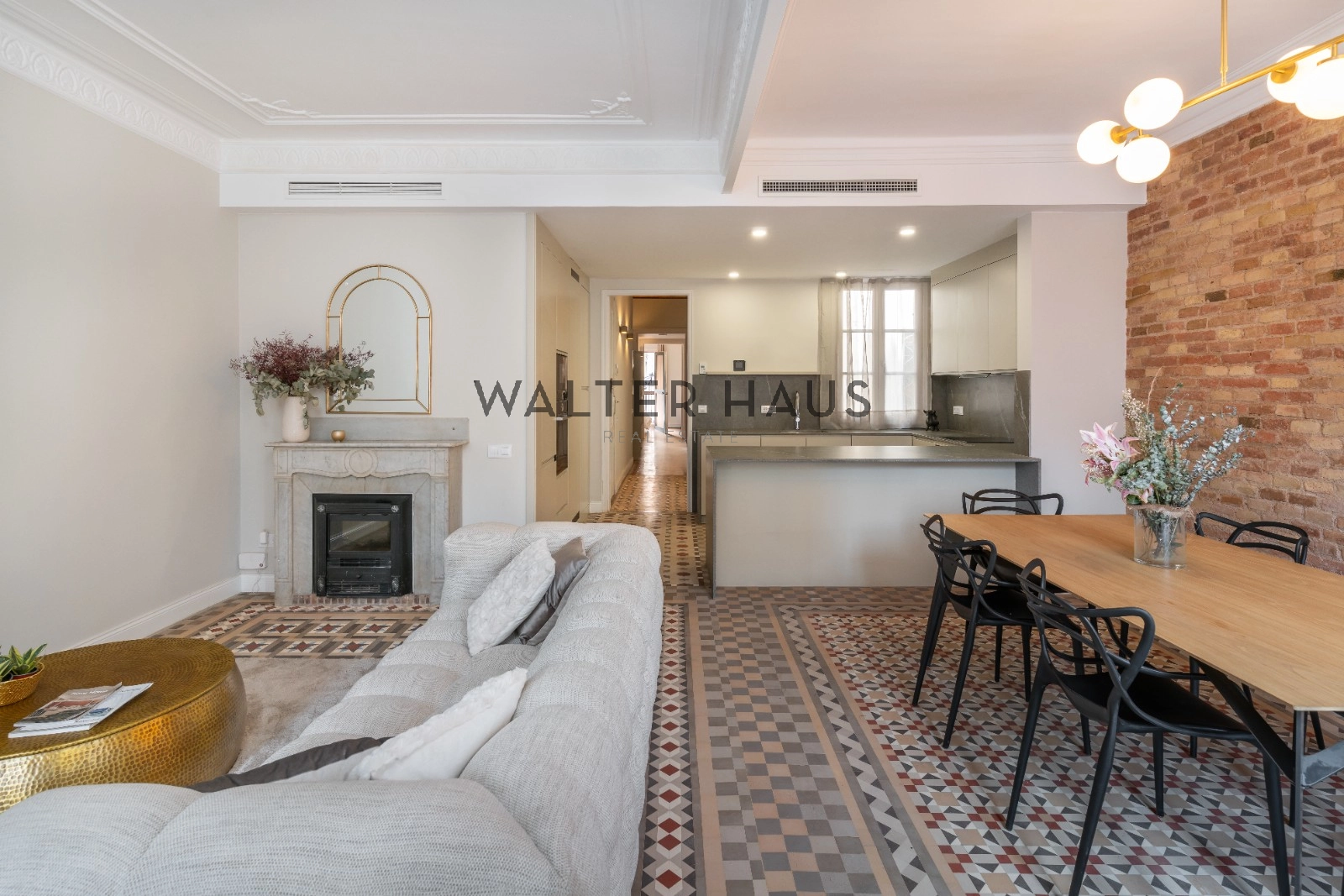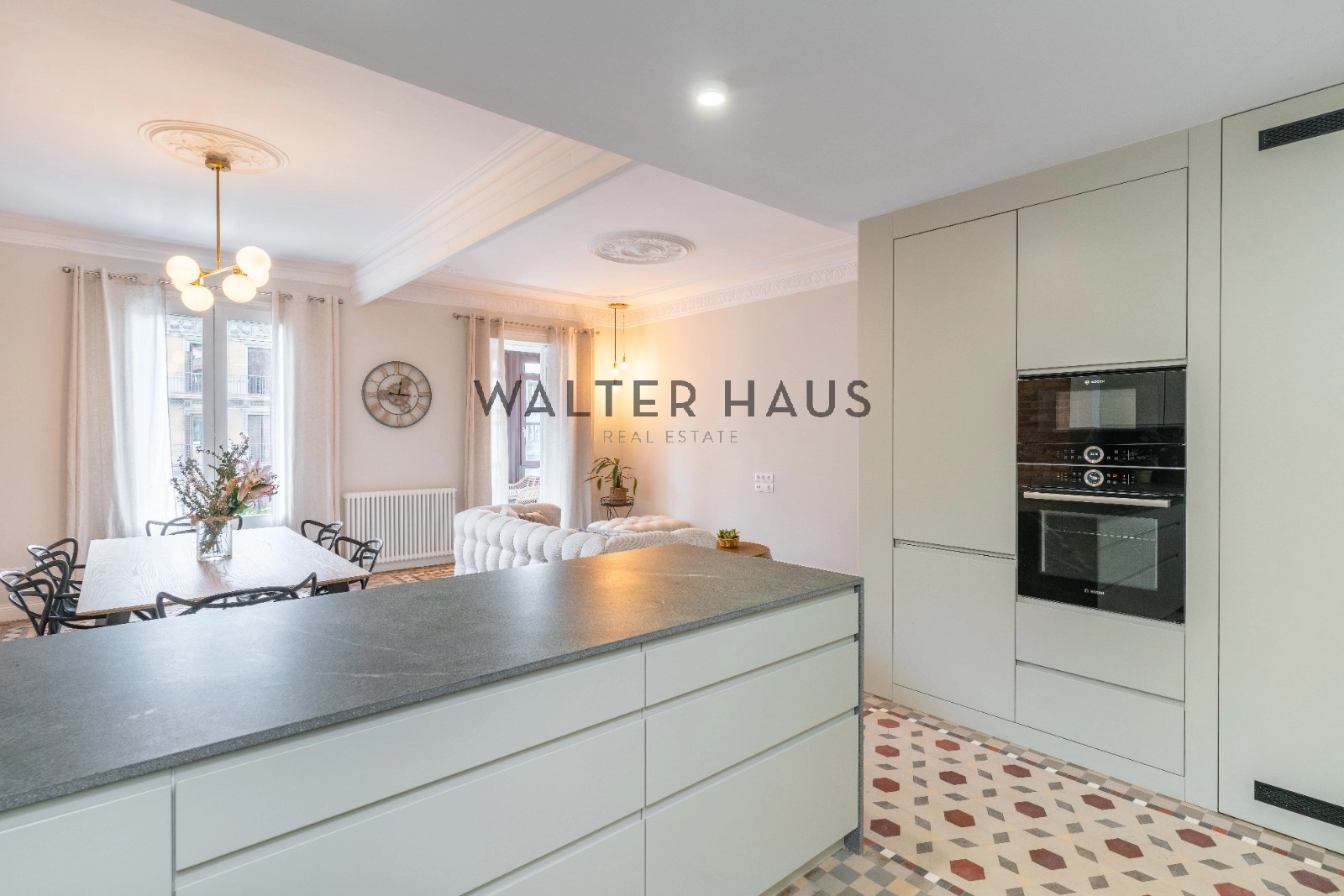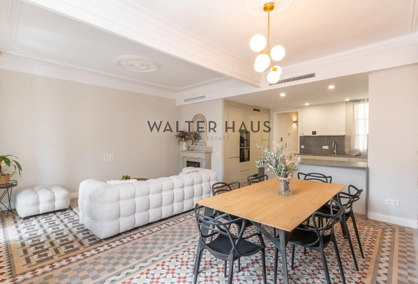 Appartement exclusif de 130 m² entièrement rénové, situé au troisième étage d’un immeuble de prestige datant de 1880 et équipé d’un ascenseur. Sa récente rénovation a respecté et restauré les éléments d’origine qui soulignent son cachet historique. Il offre un design intérieur fonctionnel et raffiné, idéal pour ceux qui recherchent un logement de caractère dans l’un des quartiers les plus prisés de Barcelone.