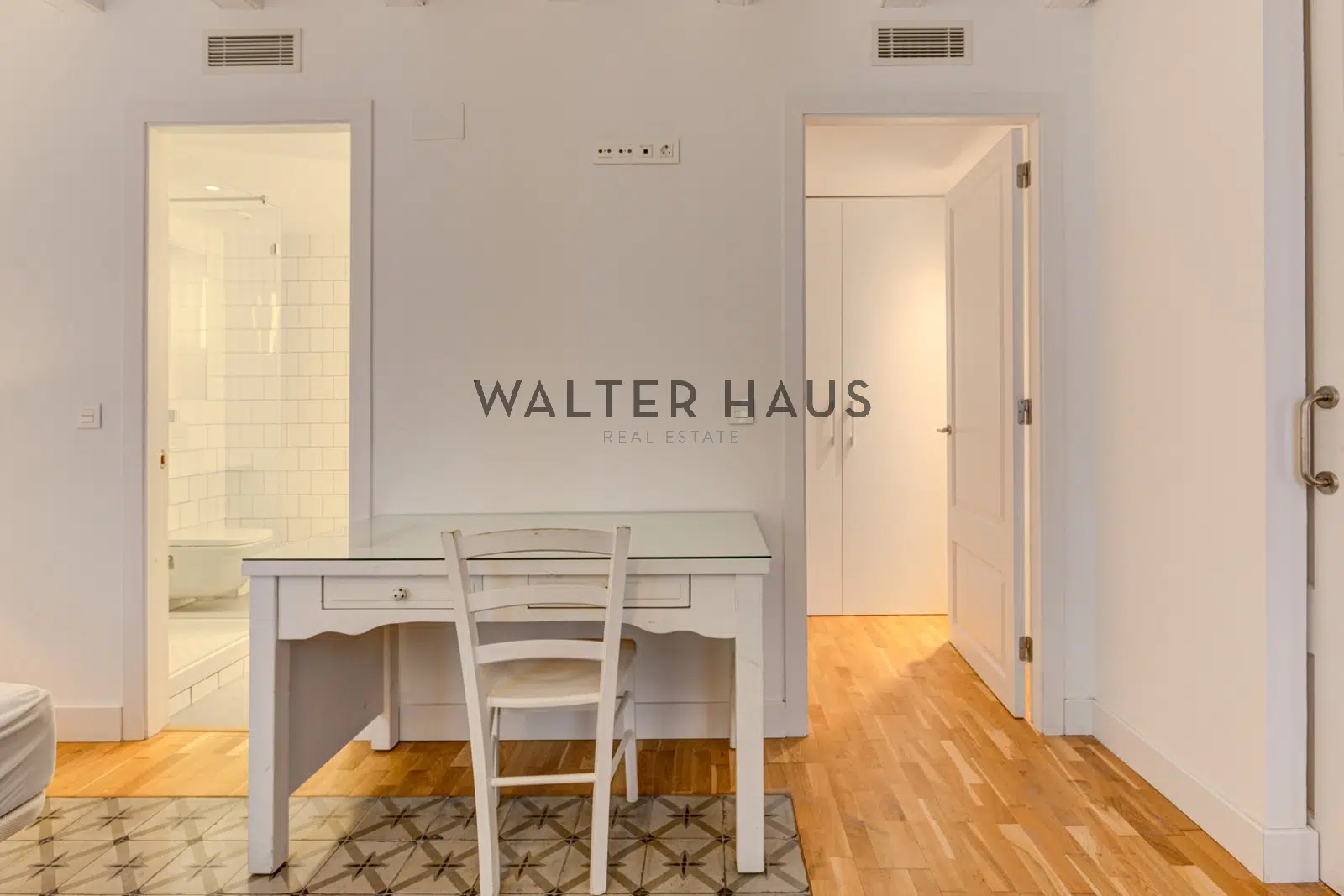 L’appartement comprend trois chambres doubles, chacune avec sa propre salle de bains et des finitions haut de gamme, conçues pour le confort et l’indépendance. Une salle d’eau complète est également disponible pour les invités. La cuisine contemporaine, entièrement équipée d’appareils Bosch, allie esthétique et fonctionnalité. Le chauffage et la climatisation aérothermiques garantissent une efficacité énergétique optimale toute l’année, tandis que l’association de carreaux hydrauliques restaurés et de parquet apporte du cachet et de la chaleur à l’appartement, créant une atmosphère accueillante et élégante.
