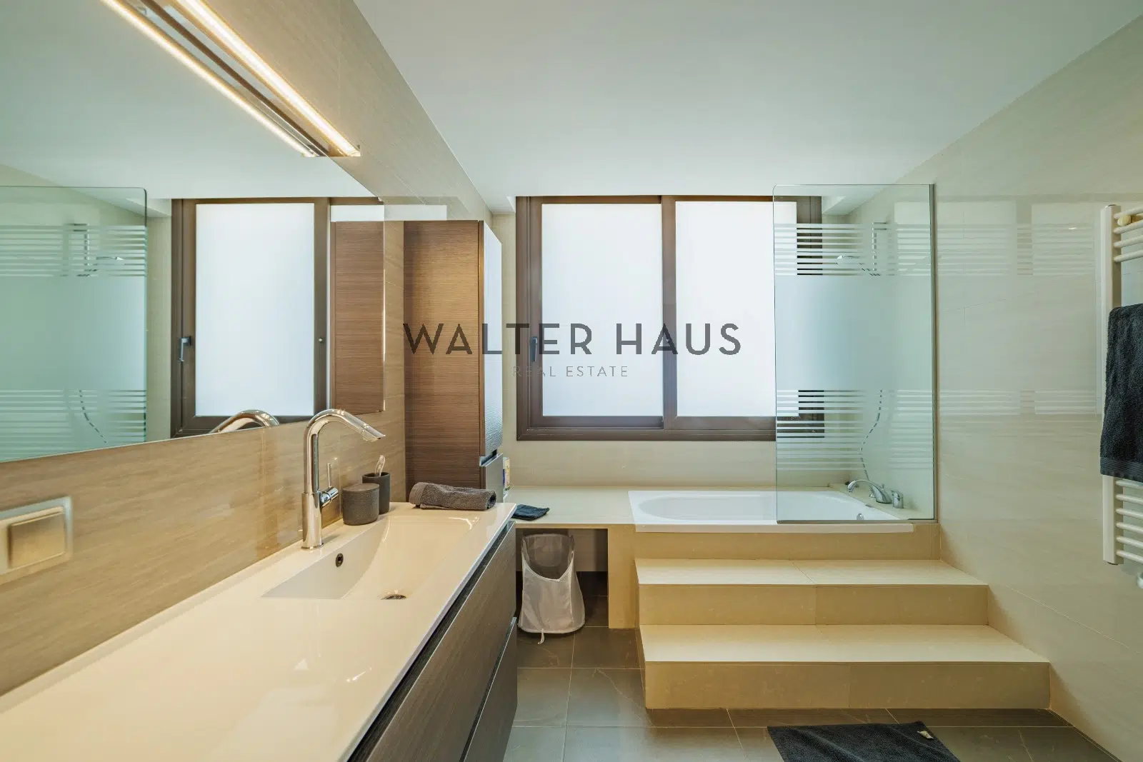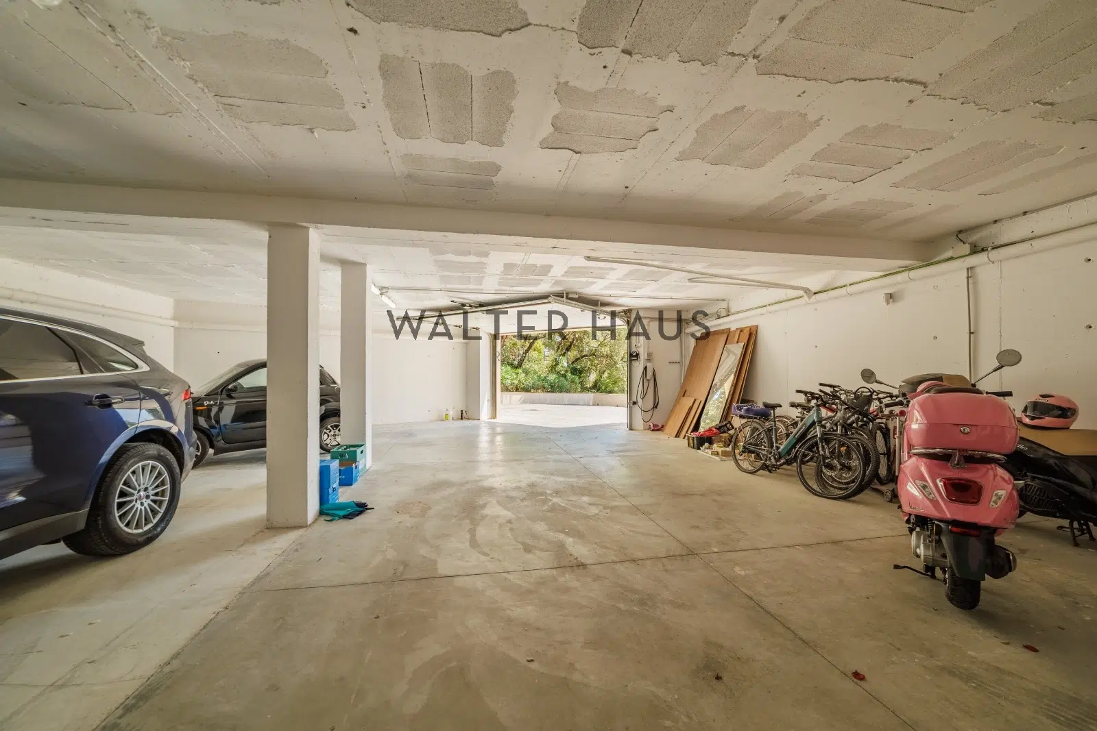 Le niveau inférieur abrite un garage fermé pour cinq véhicules, alliant sécurité et praticité. Entièrement rénovée avec des matériaux de haute qualité et équipée du chauffage et de la climatisation, cette propriété garantit une efficacité énergétique optimale et un confort optimal toute l’année.