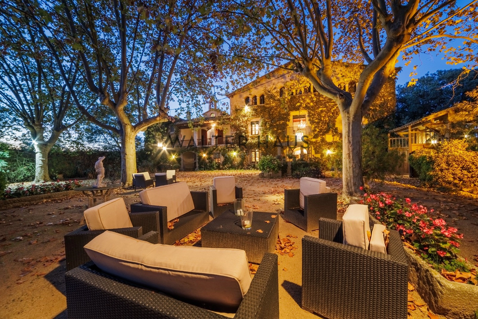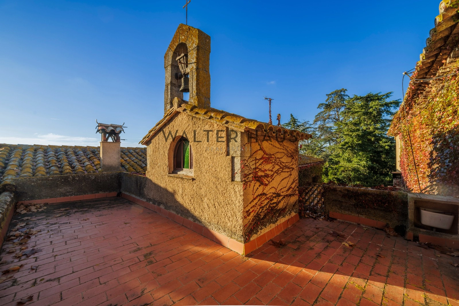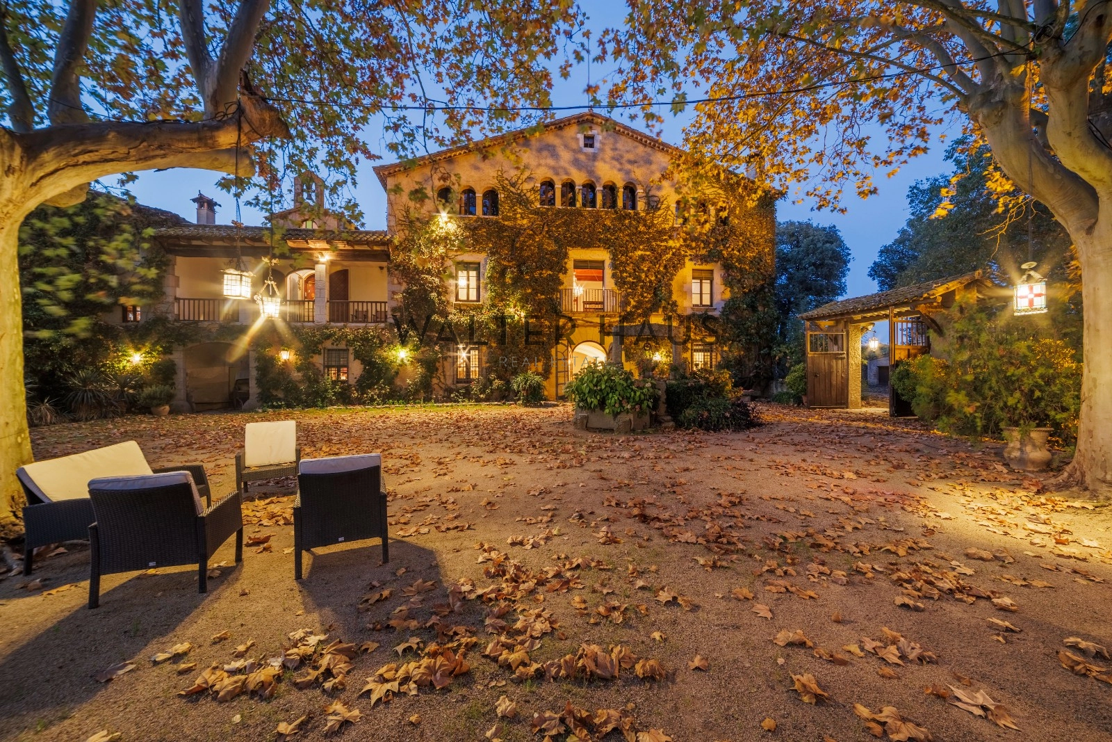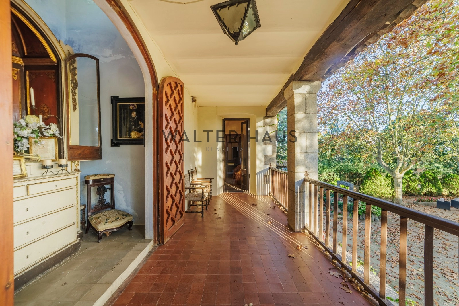 La chapelle baroque dédiée à Notre-Dame des Douleurs, la cheminée à l’étage et le portail du patio arrière, conçus et réalisés par le visionnaire Antoni Gaudí dans ses premières œuvres, confèrent à cette demeure une valeur historique exceptionnelle. La cour avant paysagée, d’une superficie de 2 266 m², offre un espace généreux pour l’installation d’un chapiteau et de sanitaires, et conserve un puits de l’ancienne ferme. Deux entrées, l’une depuis le garage moderniste de 153,95 m² et l’autre depuis le parking extérieur, facilitent l’accès.