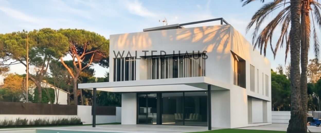 Maison design à Gavà Mar – luxe, nature et mer. Cette élégante maison de 350 m² se distingue par son architecture contemporaine et ses finitions haut de gamme. Elle dispose de cinq chambres, dont trois avec salle de bains privative, de vastes espaces baignés de lumière naturelle, d’une piscine privée, d’un sauna et est entièrement meublée avec du mobilier design.
