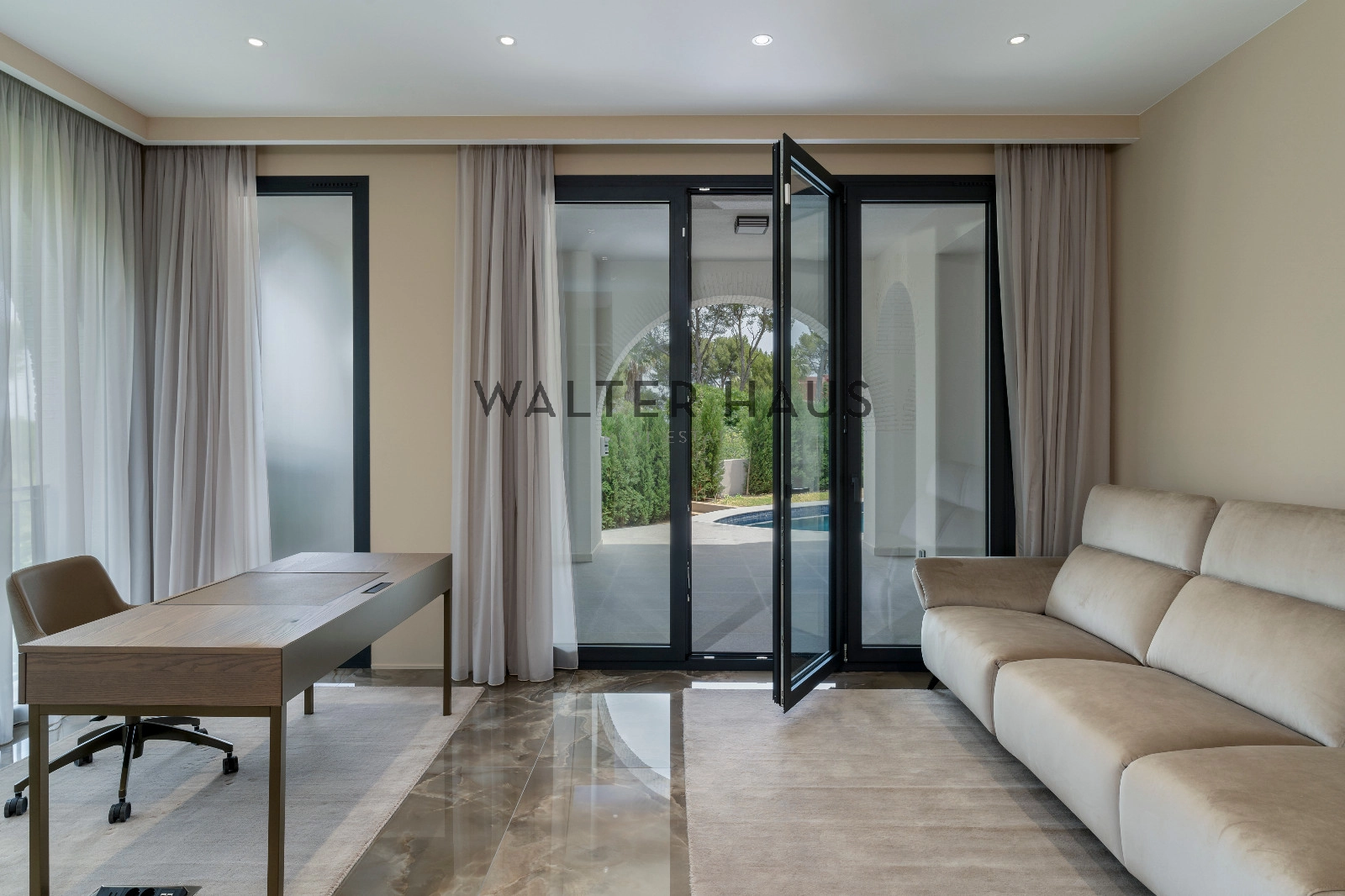 Le sous-sol offre un espace modulable pour une salle de cinéma ou une salle de sport, un sauna avec salle de bains, des vestiaires et une salle de bains invités. Le garage pour quatre voitures comprend une borne de recharge pour véhicules électriques. La propriété dispose de triple vitrage, de sols en céramique onyx, de meubles italiens sur mesure, du chauffage au sol, de la climatisation gainable, de l’énergie solaire, d’un adoucisseur d’eau et d’un jardin à arrosage automatique. Cette maison exceptionnelle allie design soigné et équipements de pointe dans un emplacement recherché.