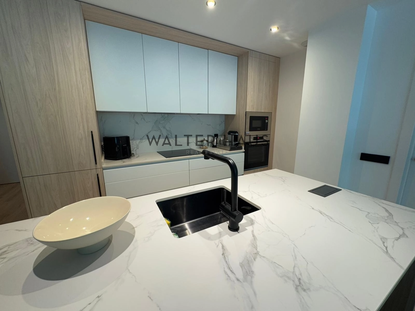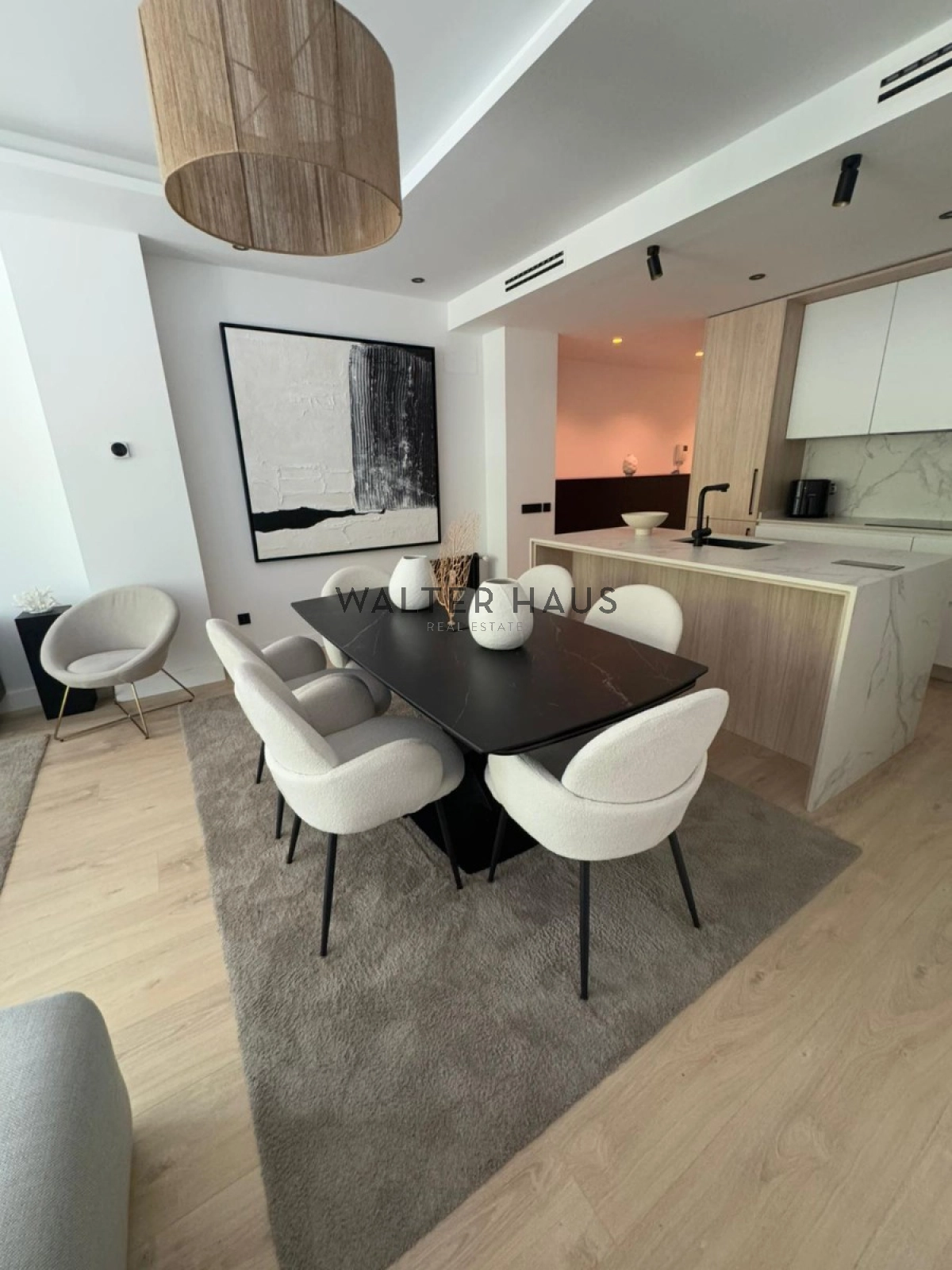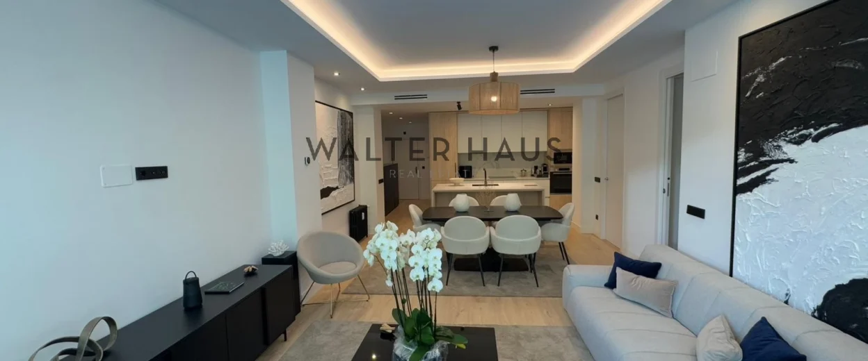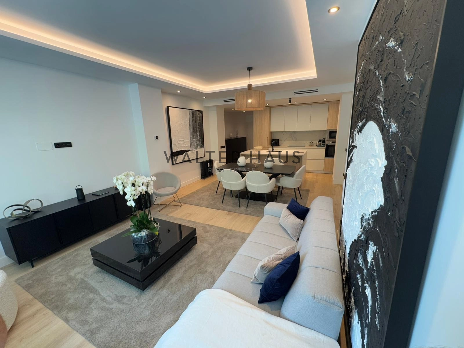 L’appartement a été entièrement rénové, avec un soin particulier apporté au choix des matériaux, aux finitions et à la fonctionnalité. Parmi ses atouts majeurs figure le système domotique complet avec écran tactile, permettant le contrôle total des stores, de l’éclairage et de la climatisation, ainsi que des systèmes de détection d’inondation, d’intrusion, d’incendie et de fumée. Le confort thermique est assuré par une climatisation gainable et un chauffage central avec compteurs individuels. L’excellente isolation thermique et acoustique est également remarquable, un atout essentiel compte tenu de son emplacement central et dynamique. La cuisine design haut de gamme est dotée d’un îlot central qui s’intègre harmonieusement au séjour et est équipée d’électroménagers de qualité supérieure. Sa hauteur sous plafond et son agencement permettent au séjour et à la cuisine de former un espace de vie ouvert et modulable. Un service de conciergerie est disponible 24h/24 et 7j/7, et un ascenseur assure un accès pratique à la sécurité et au confort.
