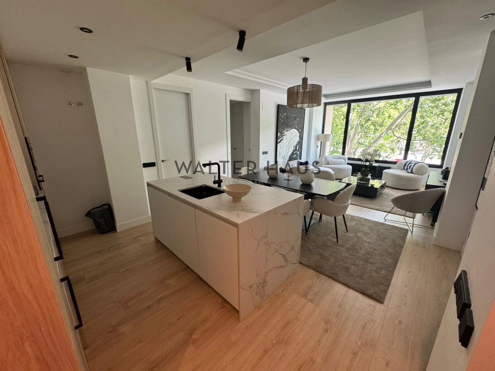 Nous vous présentons un appartement d’une élégance raffinée, situé dans le prestigieux quartier du Paseo de la Castellana, face au stade Santiago Bernabéu. Ce logement allie une luminosité exceptionnelle à un design contemporain et à un système domotique haut de gamme, idéal pour un style de vie urbain incomparable. Il offre une surface habitable généreuse de 127 m², intelligemment agencée pour un confort et une fonctionnalité optimaux. À l’intérieur, vous découvrirez un vaste séjour baigné de lumière grâce à sa grande baie vitrée, trois chambres confortables et fonctionnelles, deux salles de bains complètes aux finitions de haute qualité et une cuisine américaine intégrée. De nombreux placards intégrés optimisent l’espace de rangement.