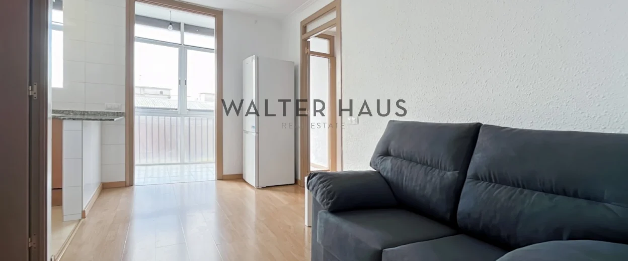 LOCATION SAISONNIÈRE. Lumineux penthouse de 55 m² avec une grande terrasse commune de plain-pied, situé au quatrième étage d’un immeuble sans ascenseur sur l’artère principale du quartier de Sants, à 30 secondes à pied du métro L1 (ligne rouge).