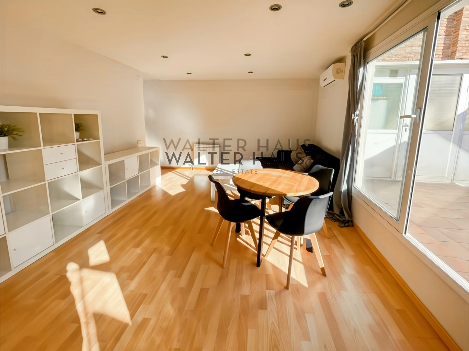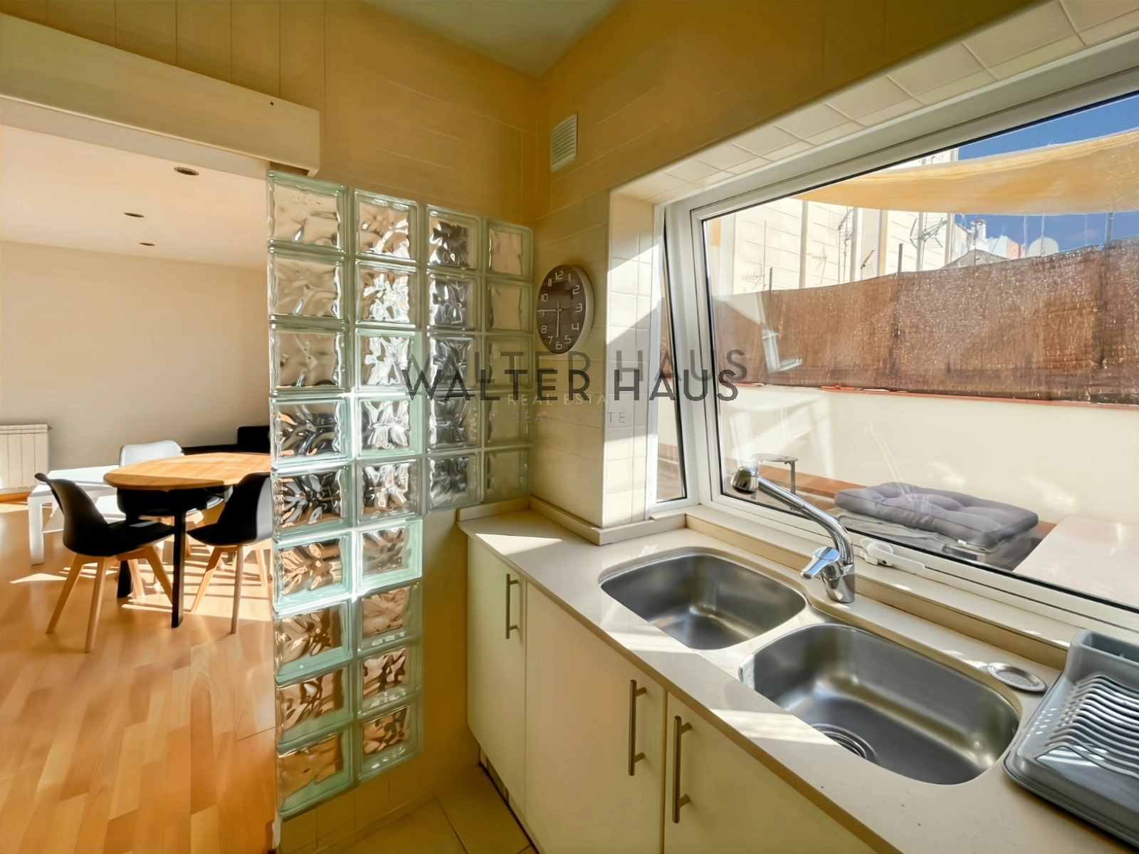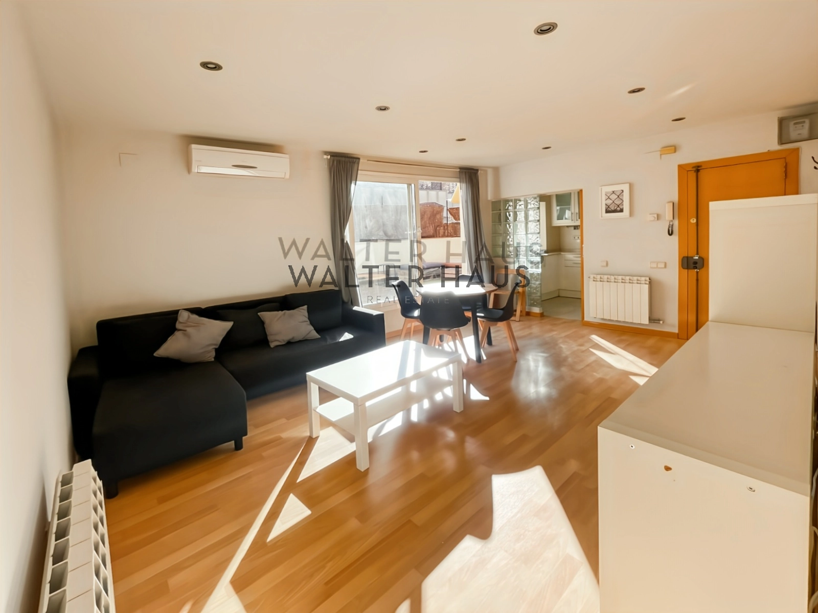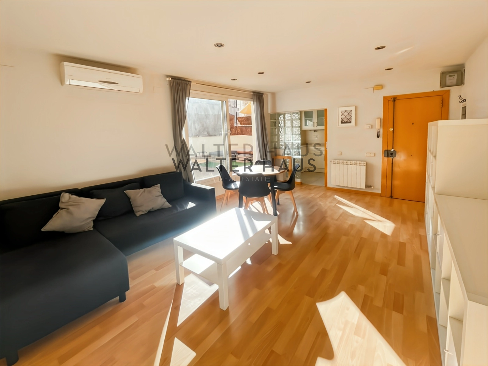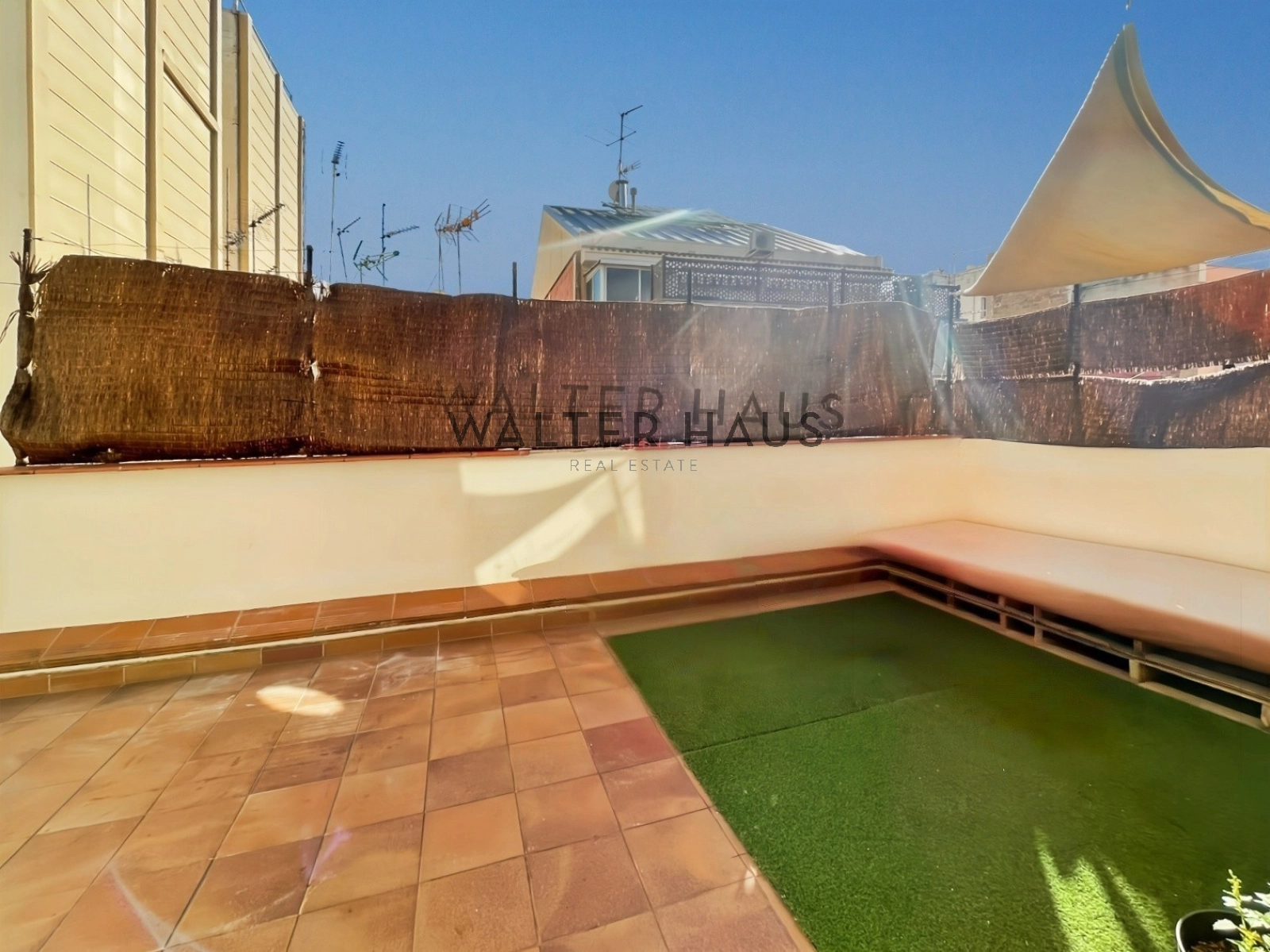 Lumineux appartement-terrasse entièrement rénové de 50 m² habitables et 20 m² de terrasse, dans un immeuble rénové SANS ASCENSEUR, à deux pas de la Plaça Joanic, dans le quartier historique de Vila de Gràcia à Barcelone.