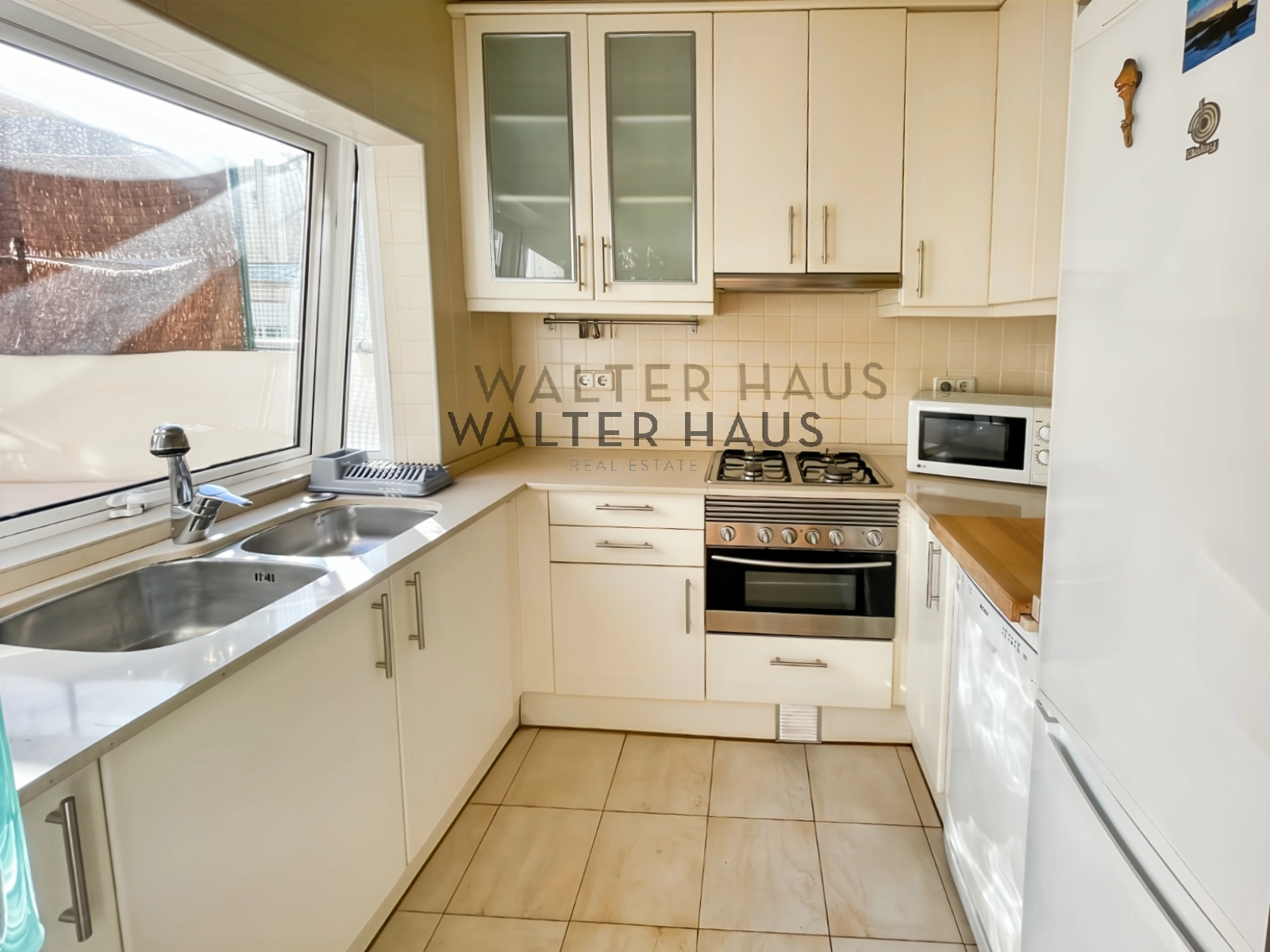 L’appartement comprend un séjour/salle à manger avec accès à une terrasse privative ; deux chambres (une avec un lit double et une avec un lit simple) ; une salle de bain avec douche ; une cuisine séparée équipée ; et une grande buanderie/débarras extérieur sur la terrasse.