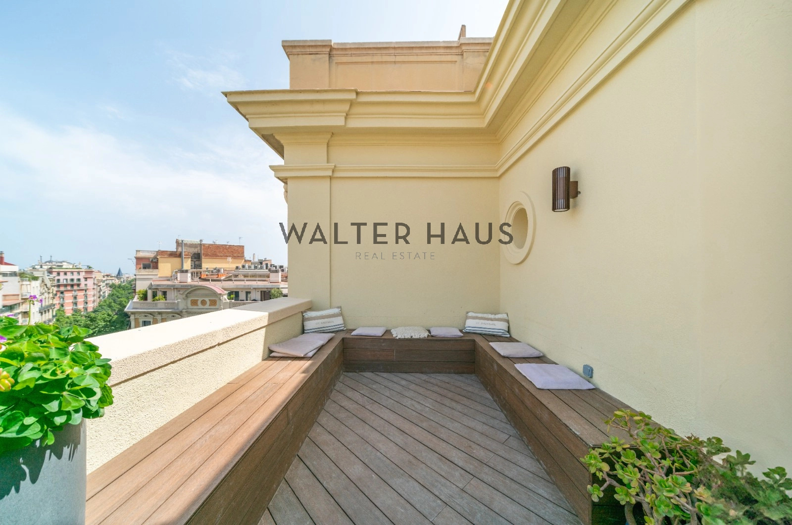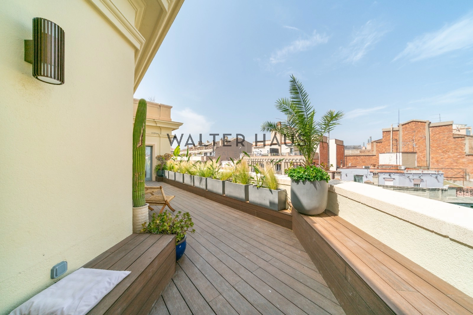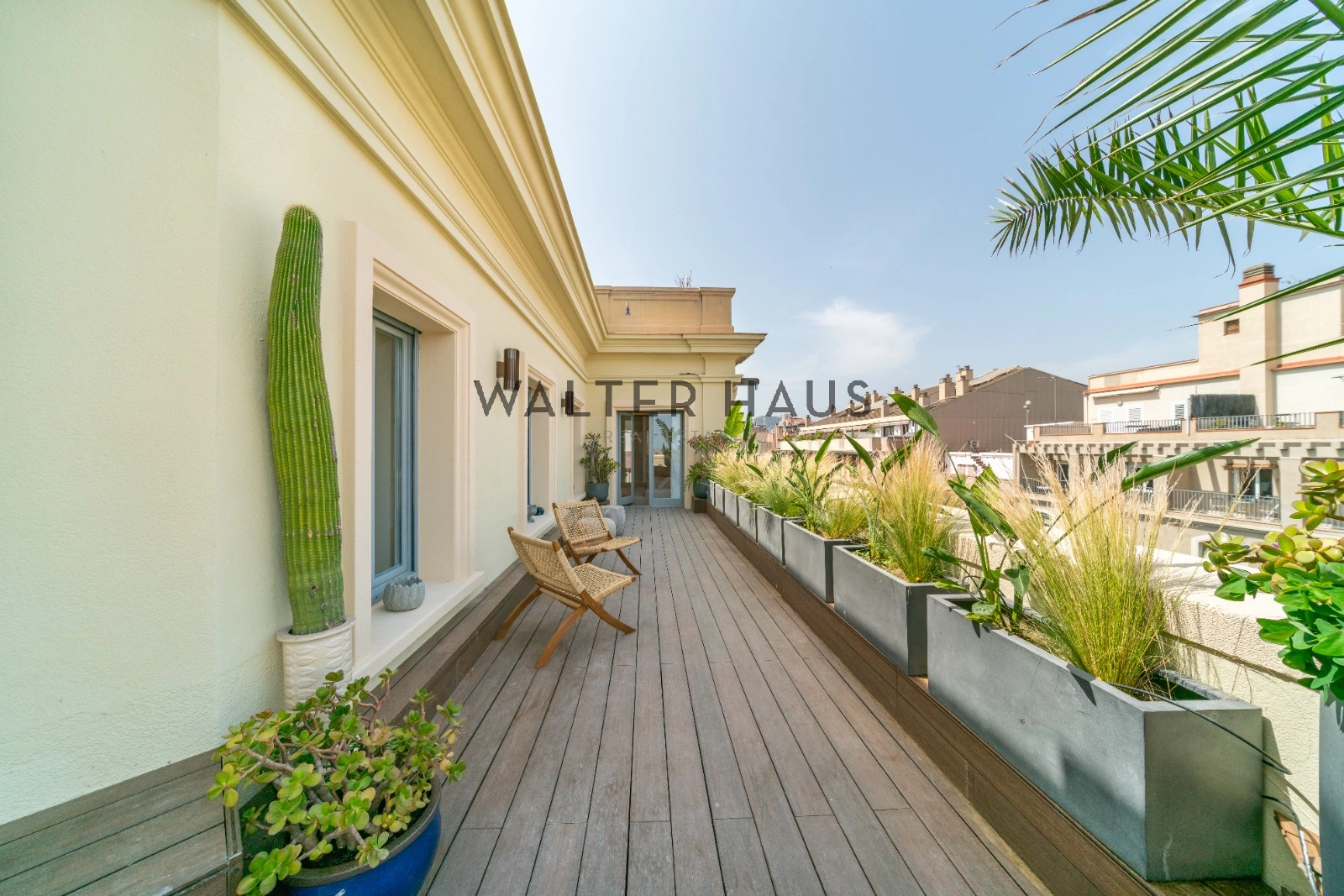 Penthouse de luxe rénové avec terrasse dans un immeuble classique de 1900 du quartier de l’Eixample à Barcelone